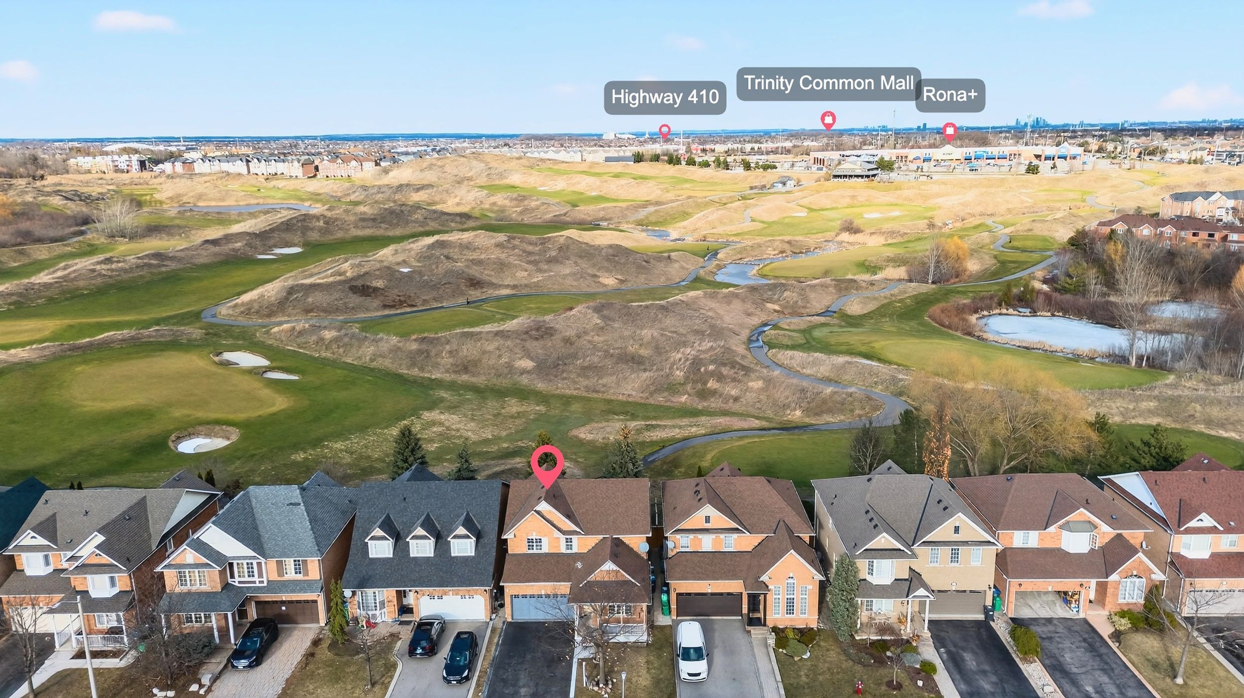 Beautiful 4-bedroom family home backing onto turnberry golf & country club and just steps from schools and heart lake conservation area, offering the perfect blend of nature, comfort, and convenience. The main floor features hardwood flooring throughout with a bright living room overlooking the front yard and a separate dining room ideal for hosting family gatherings. The spacious family room showcases a cozy gas fireplace and stunning golf course views, creating a warm and inviting atmosphere. The modern kitchen is equipped with stainless steel appliances, a stylish backsplash, ample cabinetry, and a breakfast area overlooking the golf course. Upstairs offers a functional layout with a generous primary bedroom featuring a walk-in closet, private 4-piece ensuite, and peaceful golf course views. Three additional well-sized bedrooms provide ample closet space, and the home is completely carpet-free throughout. The finished basement adds exceptional living space with a large recreation room, 2 bedrooms, and a 3-piece bathroom. Conveniently located near trinity common mall with easy access to highway 410, as well as parks, schools, and everyday amenities. This beautiful home offers space, and an unbeatable setting for family living.