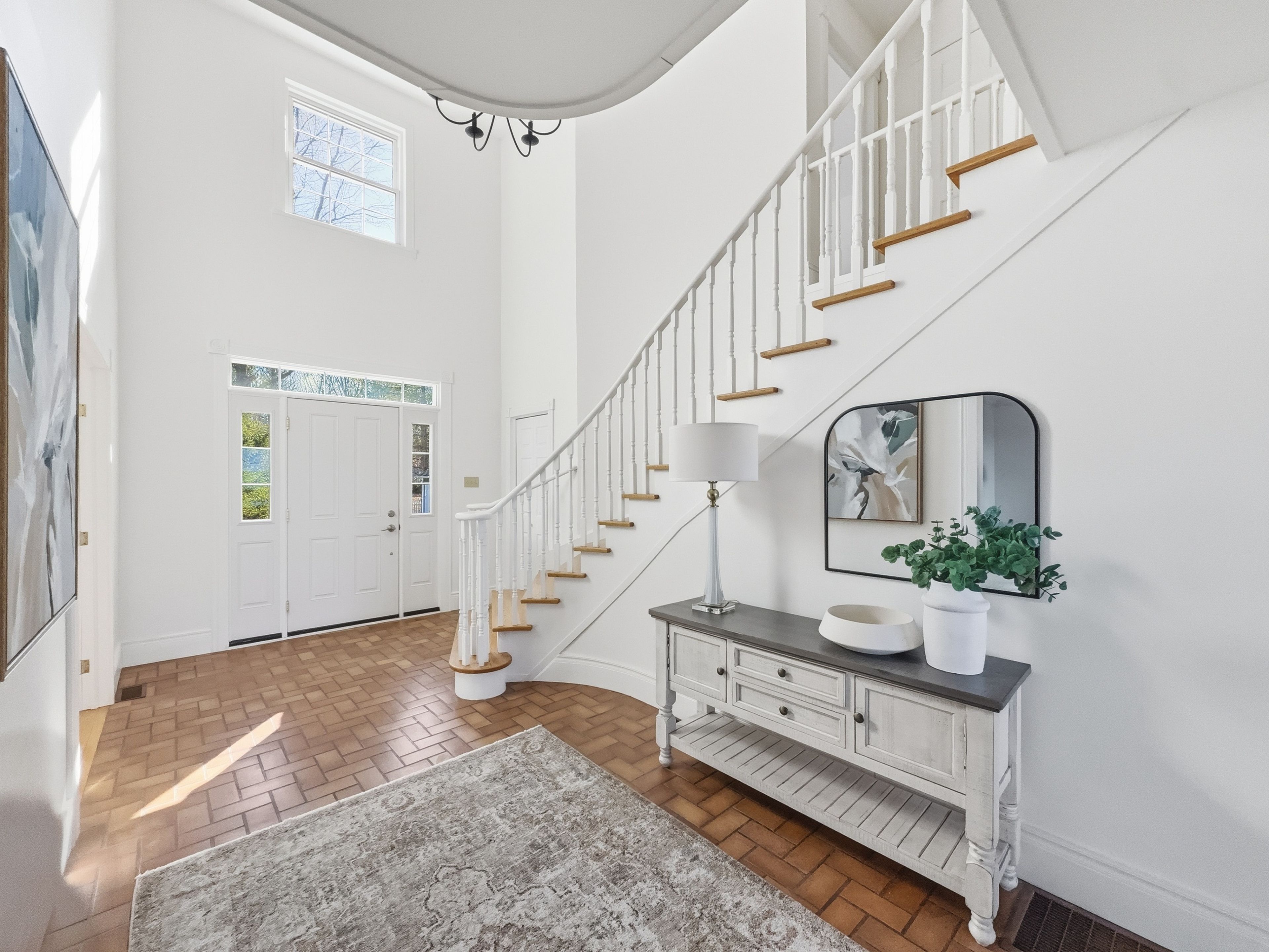 • Elegant foyer with a sweeping staircase welcomes you home.