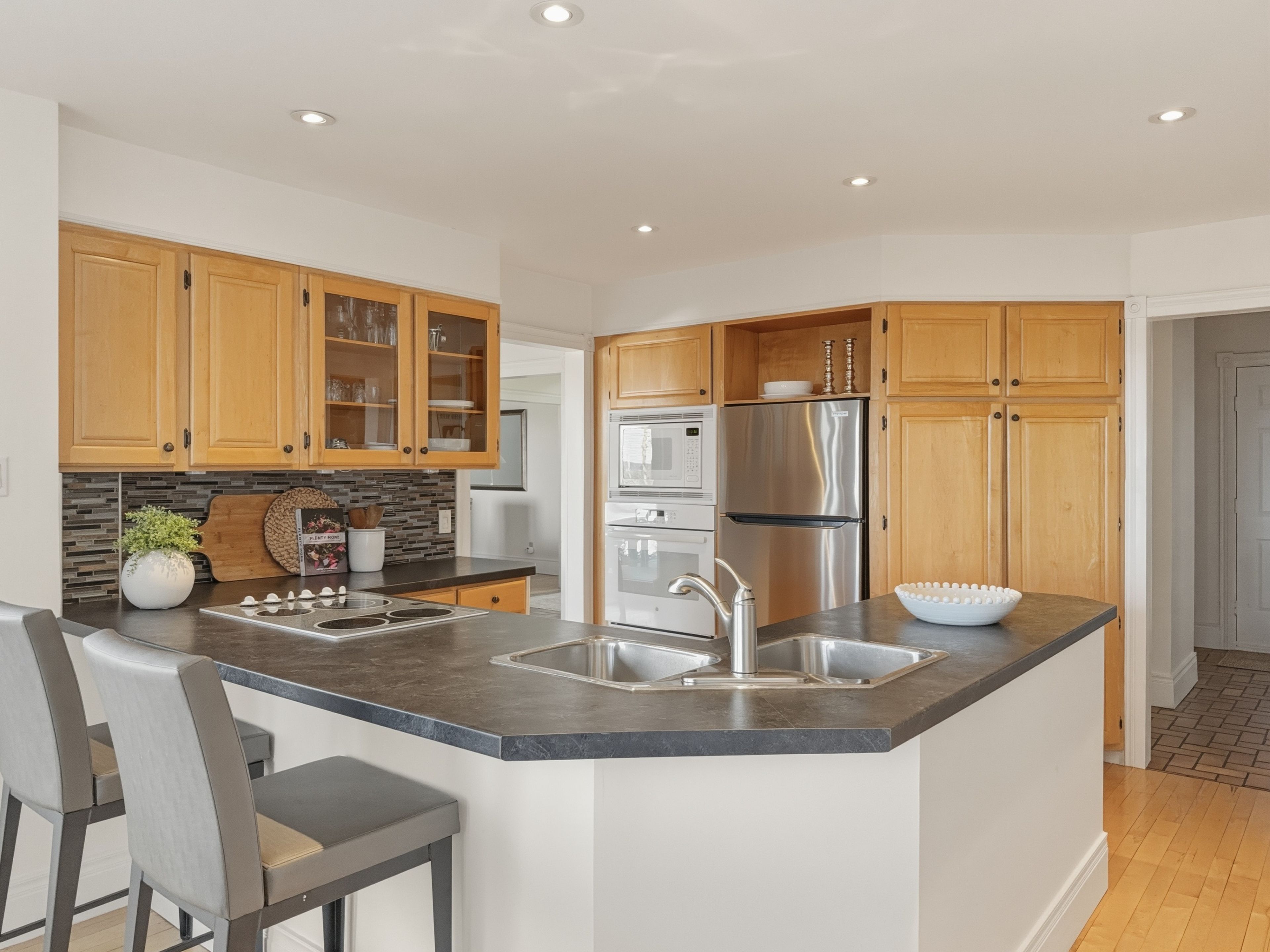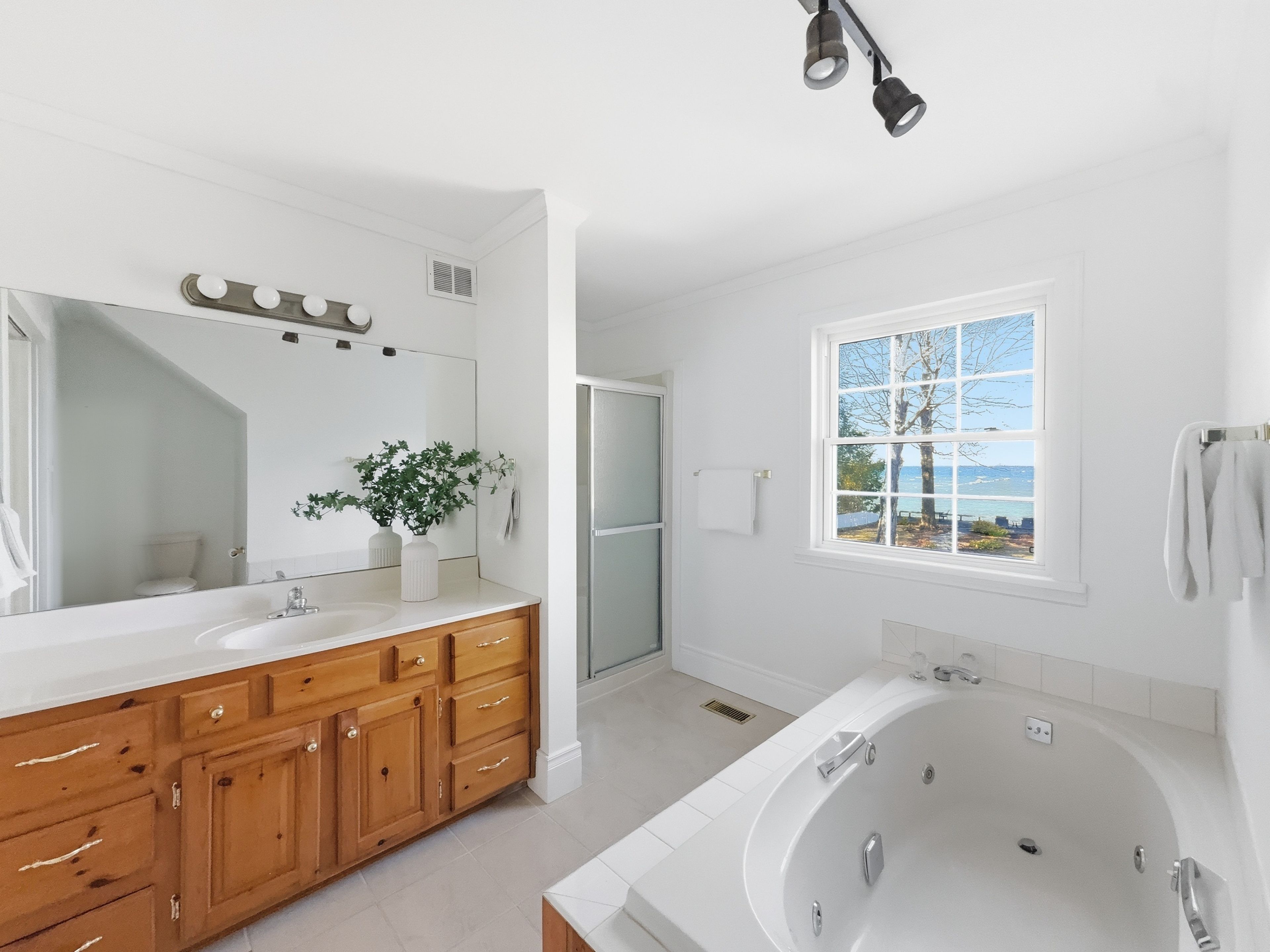 • Three spacious bedrooms plus a primary suite with a jacuzzi tub.