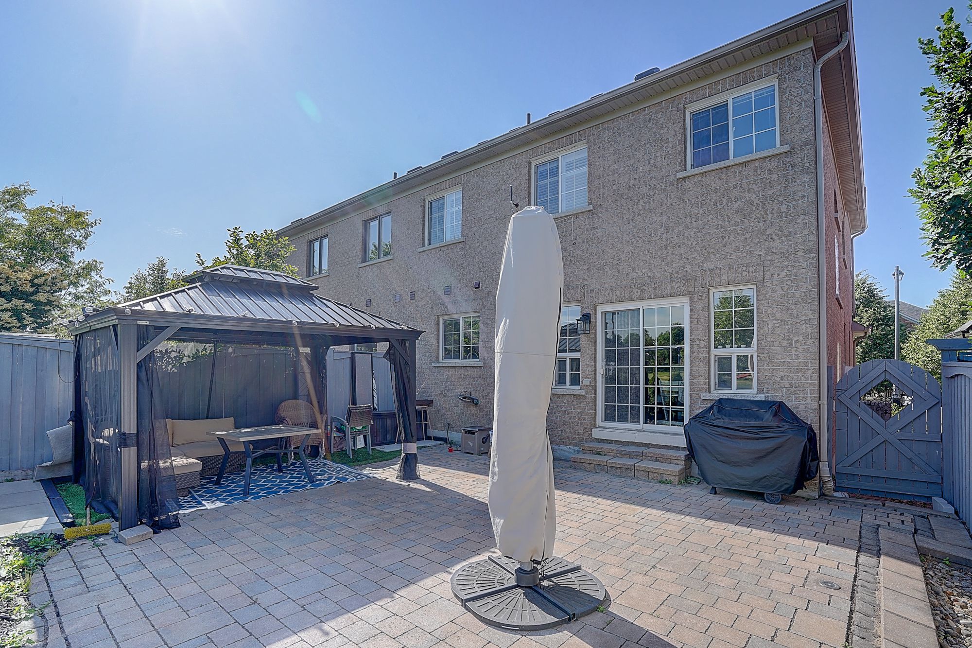 Welcome to this beautifully updated 4-bedroom, 3-bathroom semi-detached gem in the highly sought-after bayview northeast community of aurora. Offering 1,881 sq. Ft. Above grade plus a fully finished basement, this home backs directly onto ada johnson park providing peaceful, unobstructed views with no rear neighbours. The sun-filled, open-concept main floor showcases custom crown moulding, hardwood floors, and a spacious living area perfect for entertaining. The chef-inspired kitchen features stainless steel appliances, granite countertops, custom cabinetry, and a glass tile backsplash, flowing seamlessly into the dining area with walkout to a private deck overlooking the park. Upstairs, you'll find four generously sized bedrooms and two upgraded bathrooms with granite vanities. The primary suite offers a large walk-in closet and a beautifully appointed ensuite bath. Additional highlights include convenient main-floor laundry and direct access to the garage. The fully finished basement adds versatile living space, including two additional rooms, a massive walk-in closet, and endless possibilities for a home office, gym, or media room. Enjoy professionally landscaped front and backyards with interlocking stone, night lighting, and a charming metal gazebo with insect nettingideal for outdoor entertaining. Located close to top-ranked schools, hwy 404, shopping, trails, and the stronach aurora recreation complex, this move-in ready home blends comfort, style, and a true sense of community living.