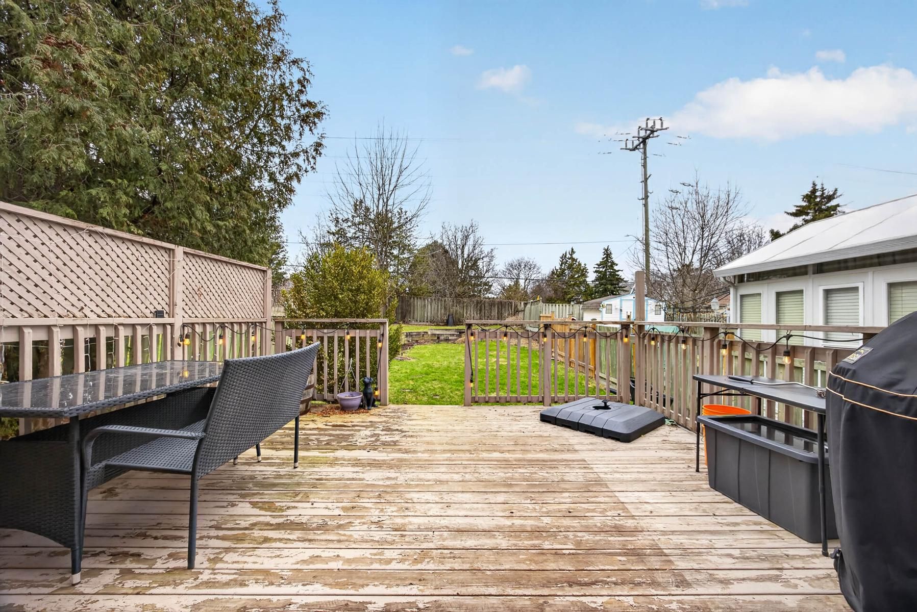 • Sunny backyard with a deck, great for relaxing or entertaining.