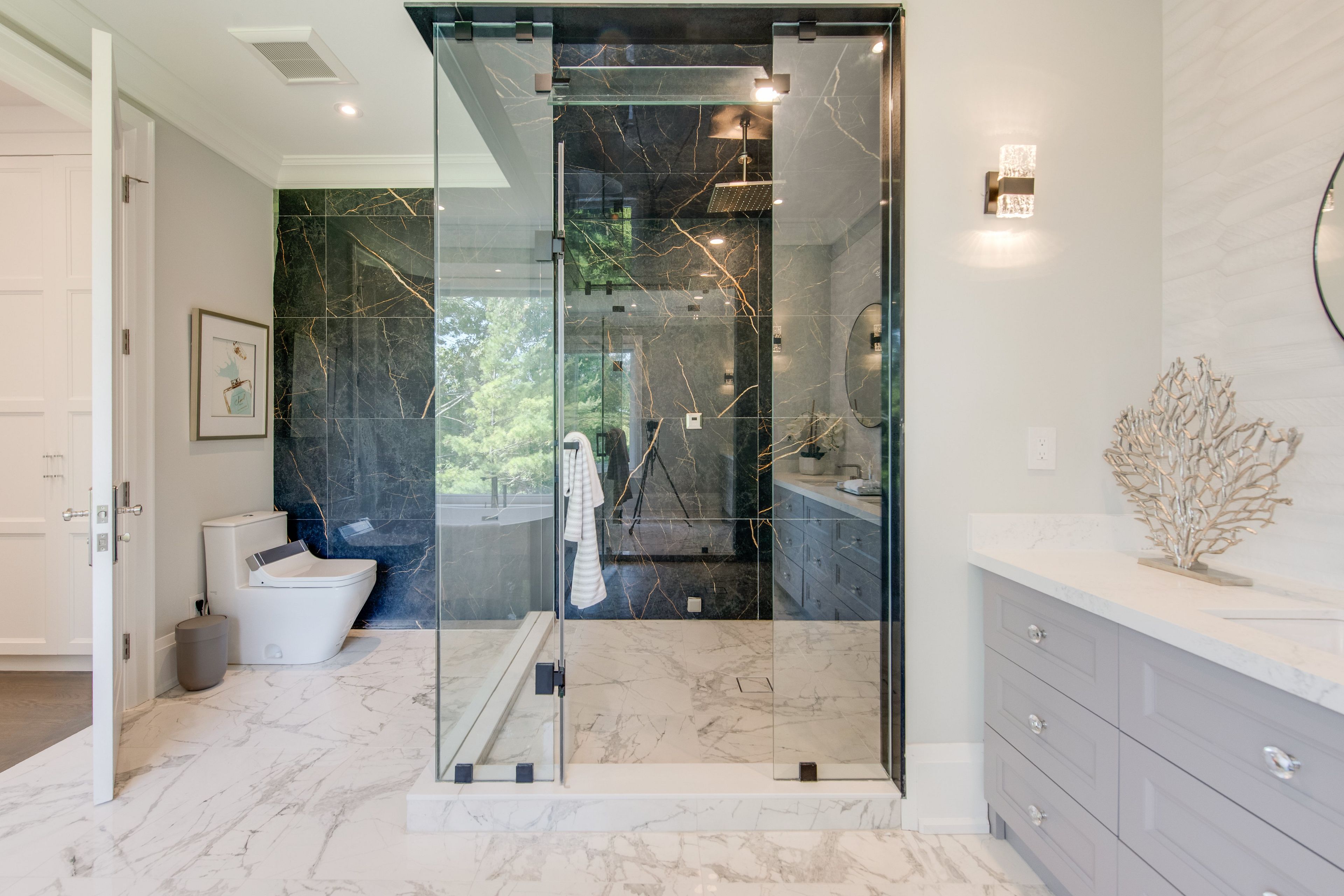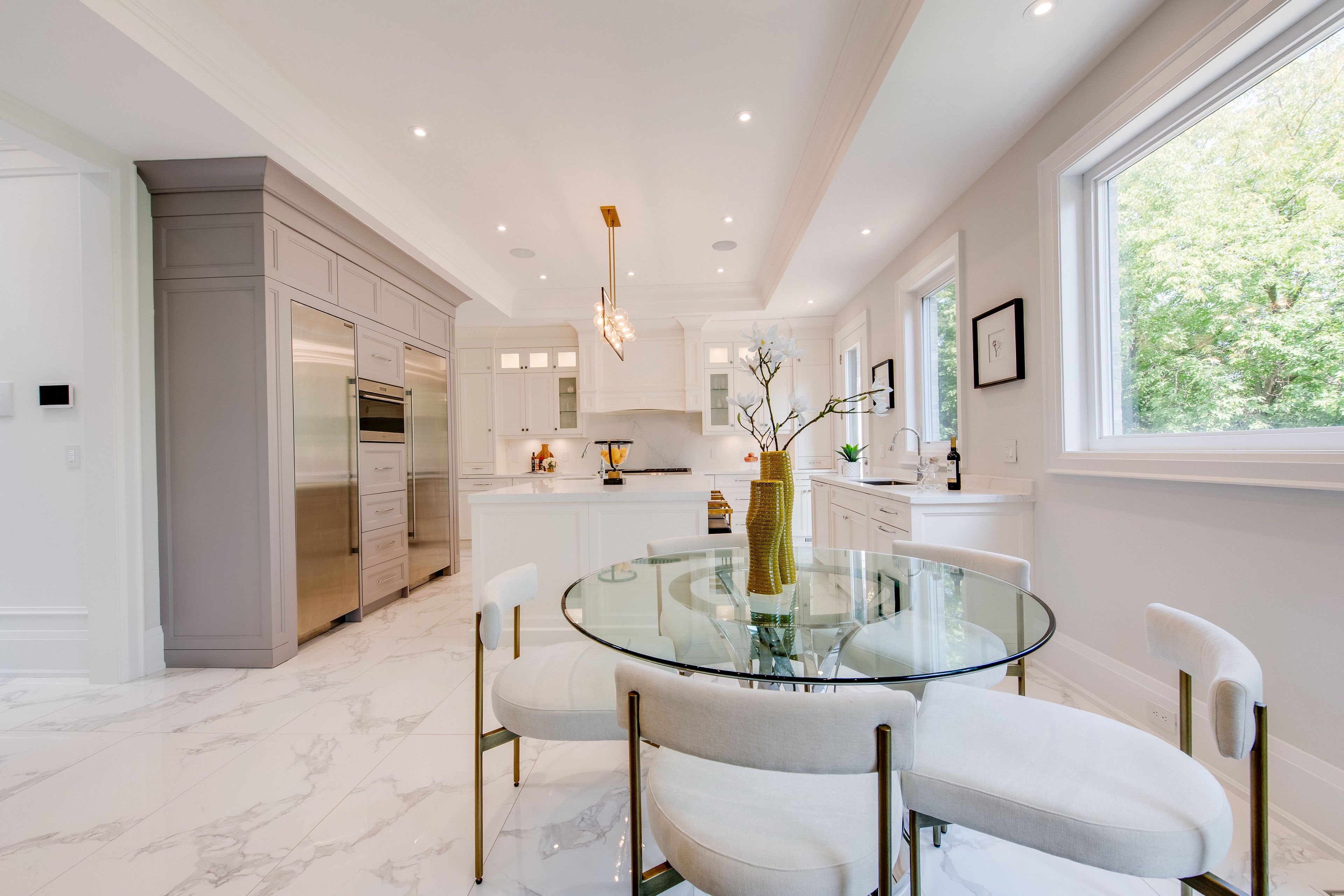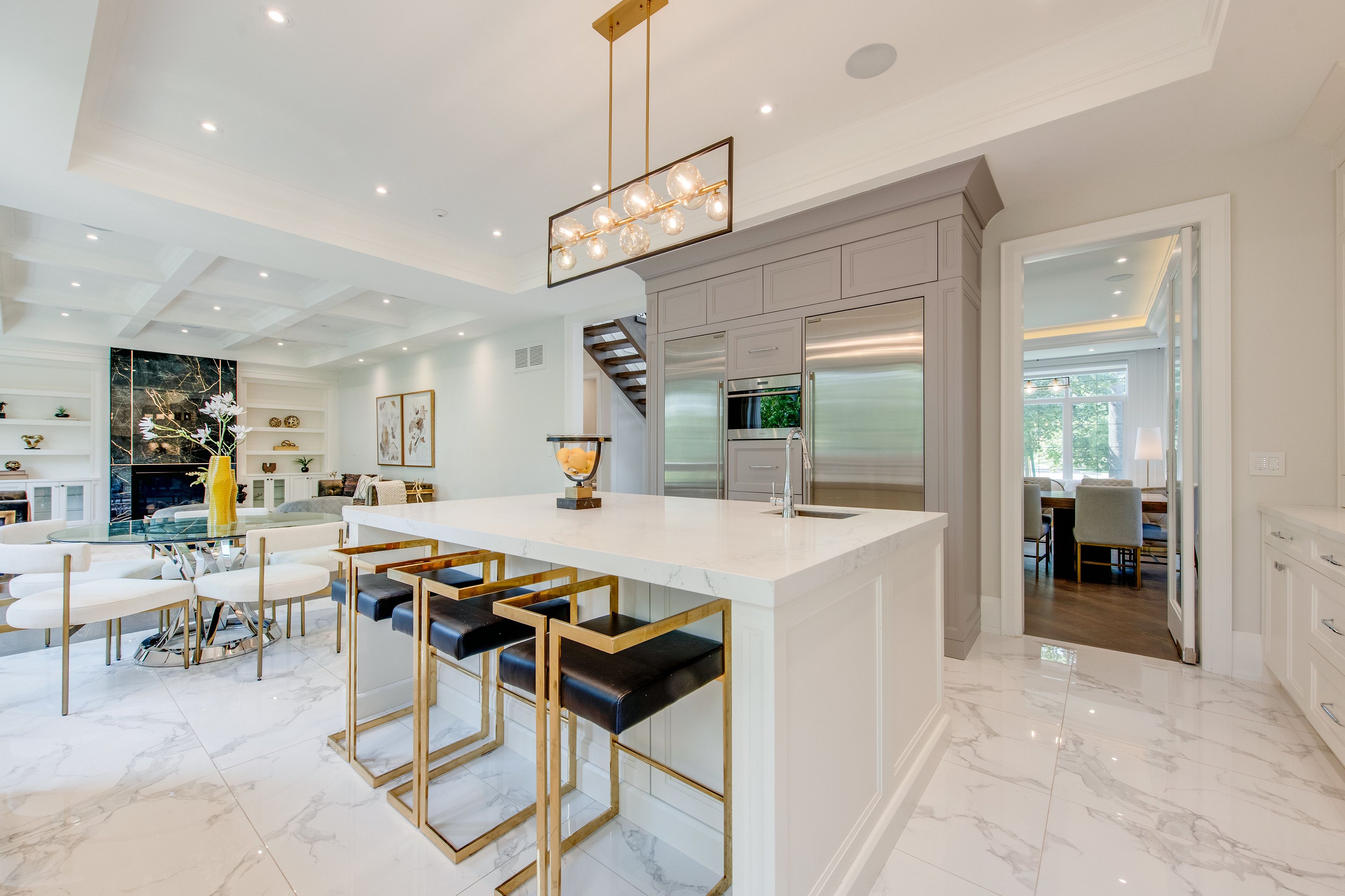 Welcome to 47 wycliffe crescent, an exceptional 4+2 bedroom, 7-bath custom residence in prestigious bayview village. Behind its timeless victorian-style facade with elegant gables lies a neoclassic interior defined by craftsmanship, scale, and sophistication. The soaring 22-ft foyer introduces meticulous trim work, full home paneling, and bespoke millwork. A gourmet sub-zero/wolf kitchen offers a chef-inspired experience blending function and elegance, while a dedicated main floor office provides the ideal space for work or study. Designed for ultimate comfort, the home includes control 4 smart automation, dual furnaces and ac systems, heated floors throughout the lower floor and all washrooms, plus a heated driveway and main and side entrance to the private in-law suite. The driveway accommodates five cars, complemented by a double garage and full exterior security camera coverage. The fully walk-out lower-level apartment is bright and spacious, with full-sized windows, a private side entrance, perfect for multi-generational living, grown children, guests, or valuable rental income. The pie-shaped lot expands into a landscaped, fully fenced backyard retreat with lush gardens, multiple seating zones, an outdoor fireplace and a dedicated bbq area. Additional highlights include exceptional paneling and trim work throughout, smart-home security with exterior cameras, and a quiet crescent location within the sought-after bayview middle & earl haig school districts. Steps from bayview village shopping centre, the subway, and major highways, this residence combines timeless elegance with modern convenience. 47 wycliffe crescent is more than a home, it is a statement of refined luxury for families who expect the very best.