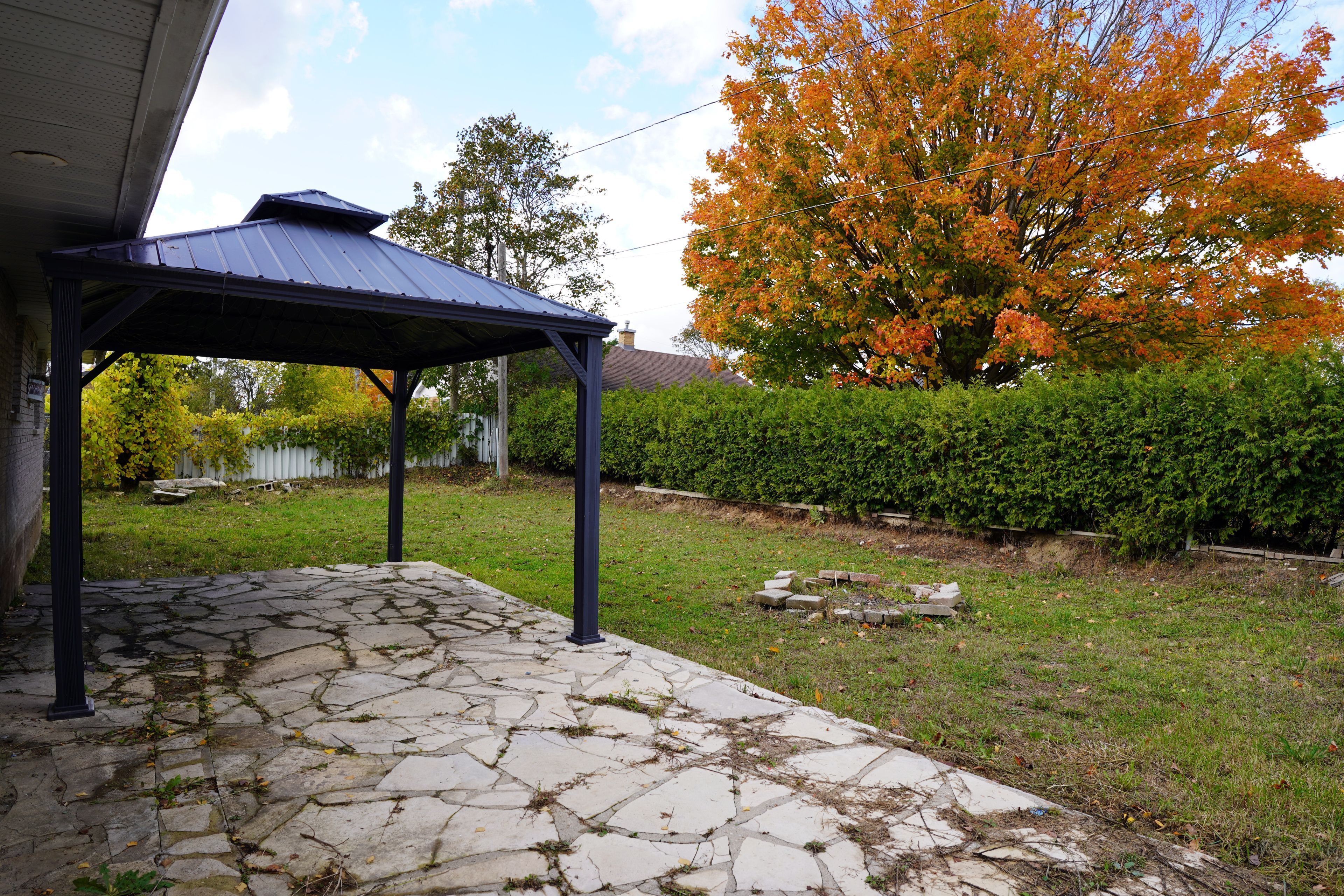 • Covered gazebo perfect for morning coffee and summer BBQs.