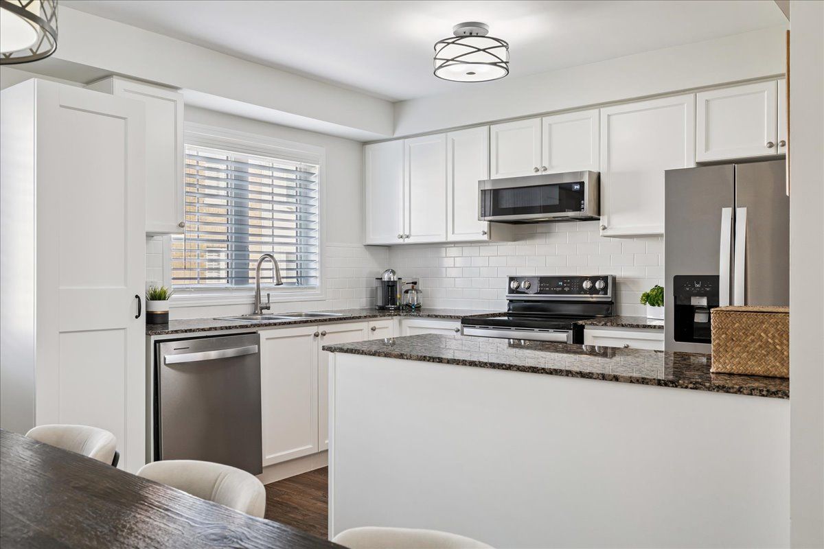 Welcome to beachside living in hamilton! Wow! This one has it all. Calling all savvy buyers seeking the perfect blend of space, style, and convenience! This bright and spacious 3-storey end-unit townhome in the trendy hamilton beach community is an ideal entry into the market-perfect for first-time home buyers or investors looking to make the right move! Just steps from the waterfront, enjoy peaceful strolls along the beach while still having quick access to highways or side roads-burlington is only about 10 minutes away. Step inside a sun-filled entry level featuring an updated contrasting staircase, modern mirrored sliders, and convenient inside access to the garage. This versatile main floor family room doubles perfectly as a 4th bedroom, home office, or lounge, with sliding doors opening to your private patio. The low maintenance fee covers grass cutting, snow removal, and includes ample visitor parking right at your doorstep. Upstairs, the heart of the home unfolds in a bright, open-concept layout. The kitchen is pleasant and functional, featuring granite counters, subway tile backsplash, serving counter, and stainless steel appliances (2022). The dining area is ideal for hosting, while the living room offers expansive sightlines-perfect for keeping an eye on small children while preparing meals or entertaining. A sunny powder room completes this level. On the third floor, the primary bedroom offers a walk-in closet and ensuite bath, along with two additional bright bedrooms and a full washroom. Laminate floors on the main and second levels provide style and easy maintenance, while plush carpet upstairs adds comfort. Enjoy an active beachside lifestyle-bike, run, or walk your dog along the waterfront just steps from your door. Whether entertaining, working from home, or enjoying the outdoors, this home blends comfort, and location. Opportunity is knocking for first-time home buyers or investors... Will you answer?