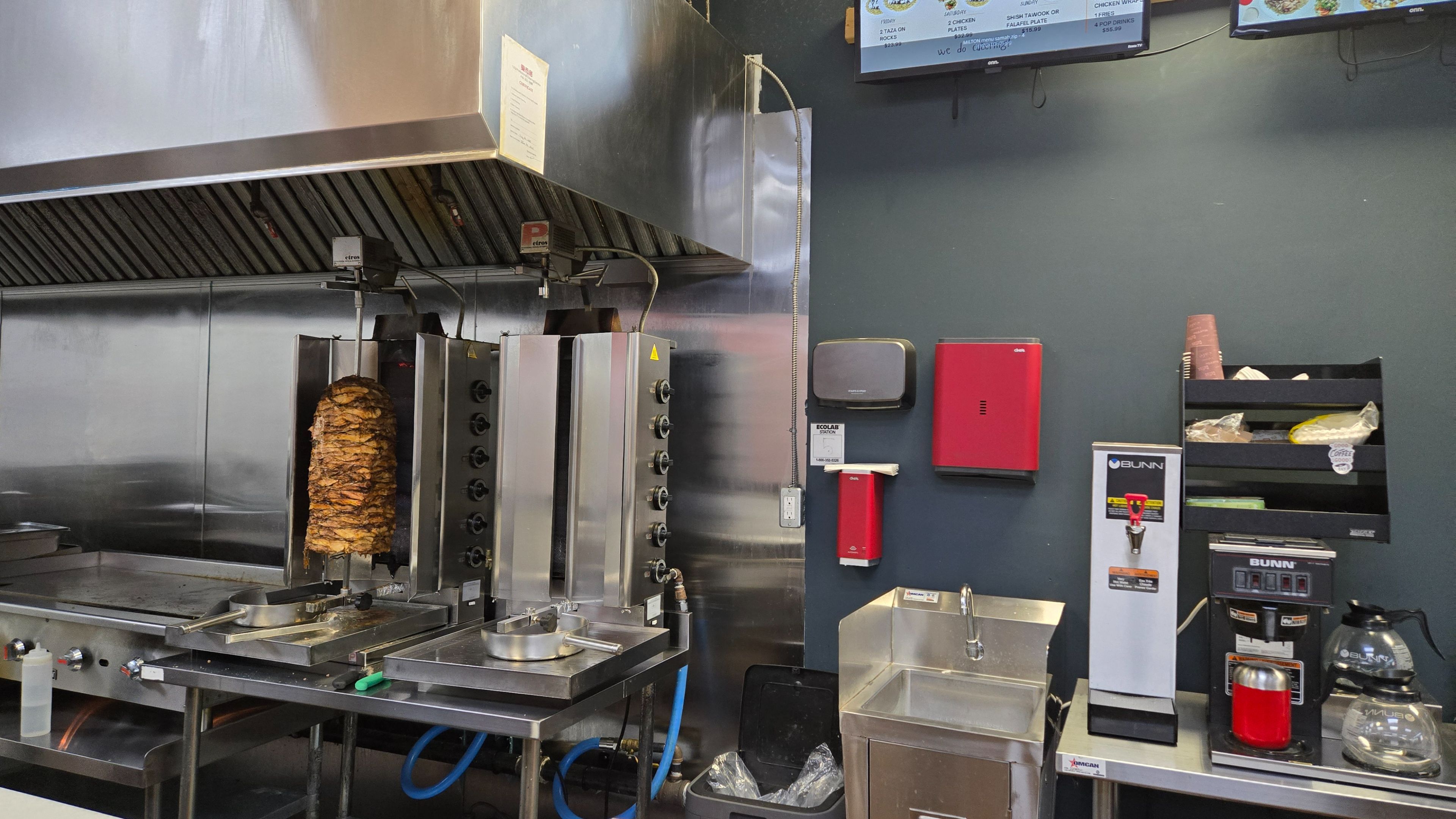This fully operational, highly profitable shawarma restaurant offers unparalleled income stability and flexibility for hospitality entrepreneurs. Its established reputation for mediterranean cuisine and support from the franchise system. The owner spent upward to 200k in installing essential equipment and renovating the place, including a a/cs, walkin fridges, hot displays, metal work tables, doners, stylish chairs and tables for dine-in customers. With everything in place, running your dream restaurant couldn't be easier. This restaurant is situated in a high-traffic area near residential areas, schools and surrounded by complementary businesses, ensuring a consistent customer base. Not to mention, convenient parking directly in front for easy accessibility, enhancing the customer experience. Some key highlights include a versatile, fully equipped space ready to welcome customers, high-visibility location with a steady flow of foot and vehicle traffic, and a great opportunity.