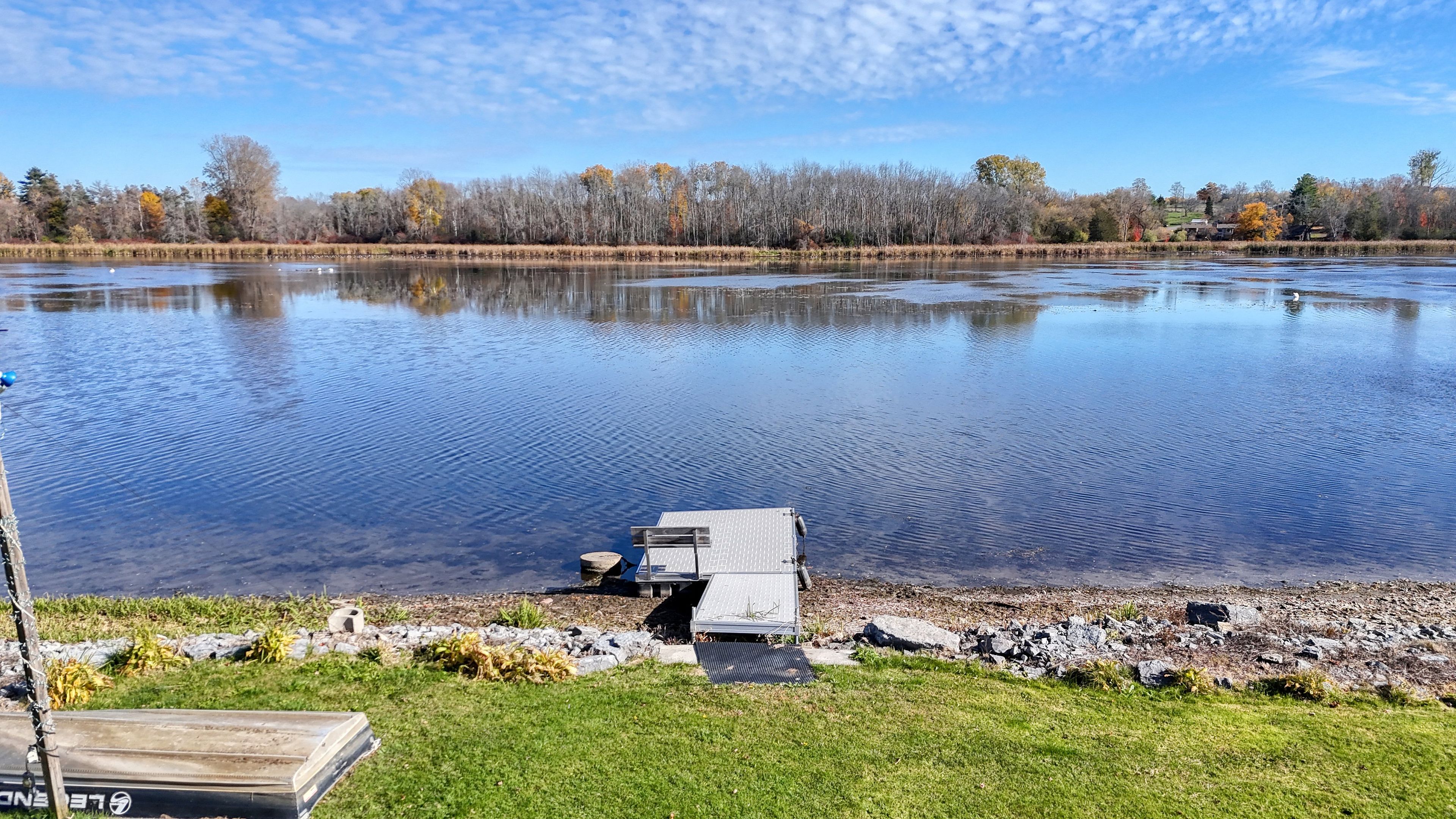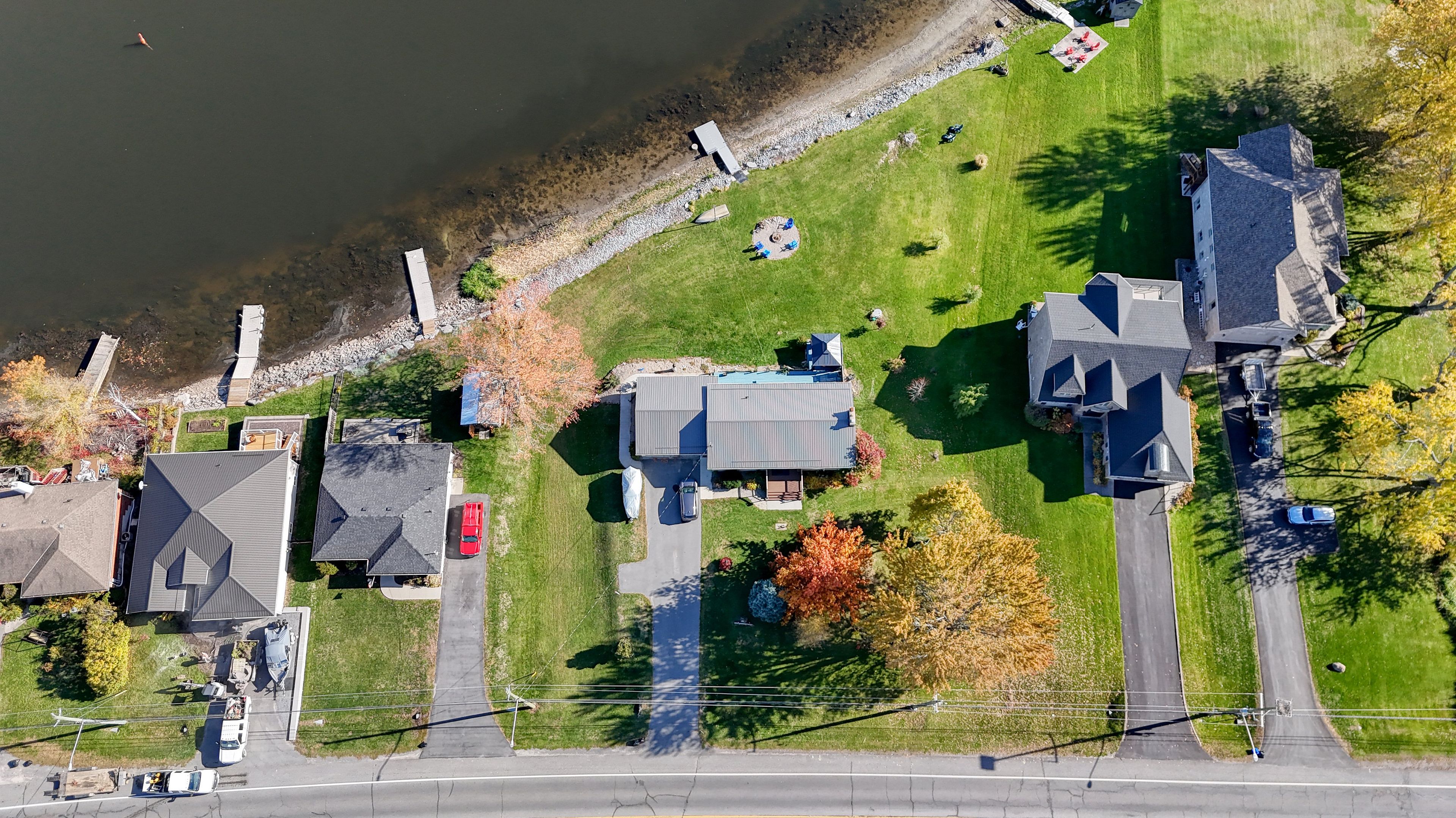 • Flat, gently sloping property leading right to the shoreline.