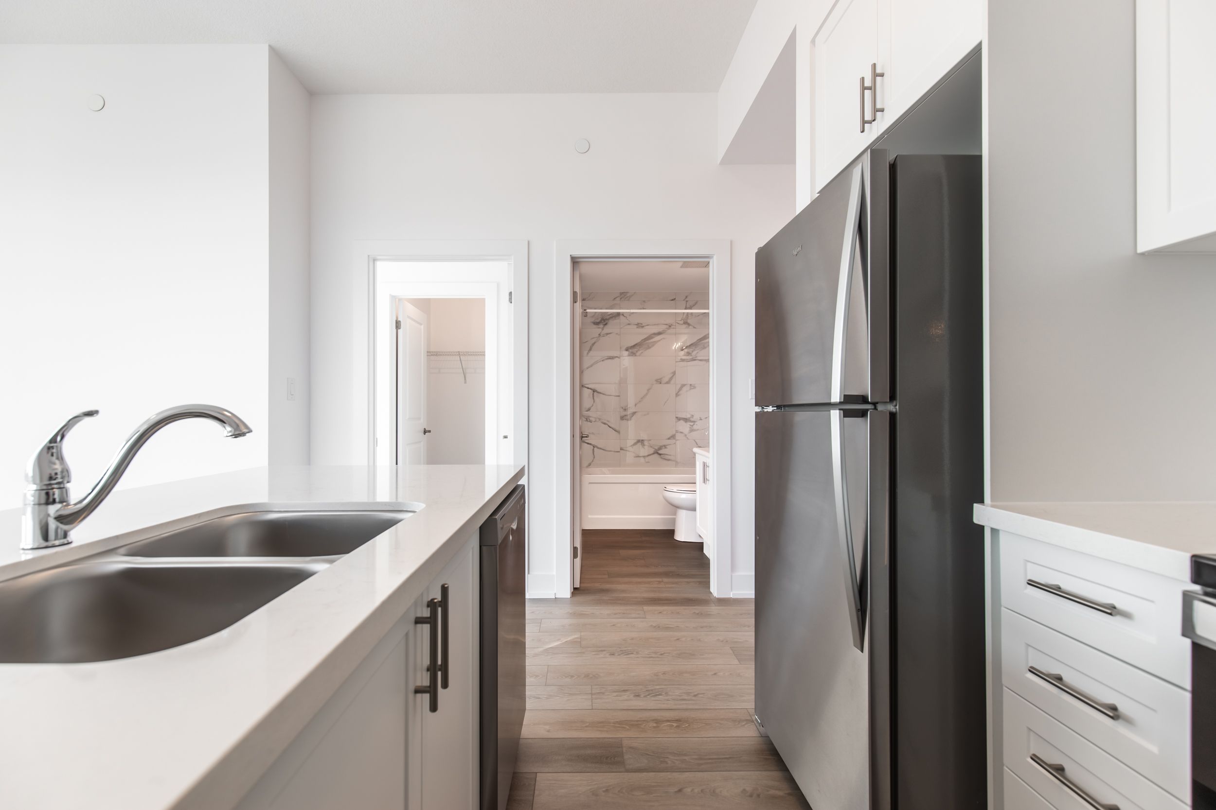 • Open floor plan kitchen and great room with modern finishes.