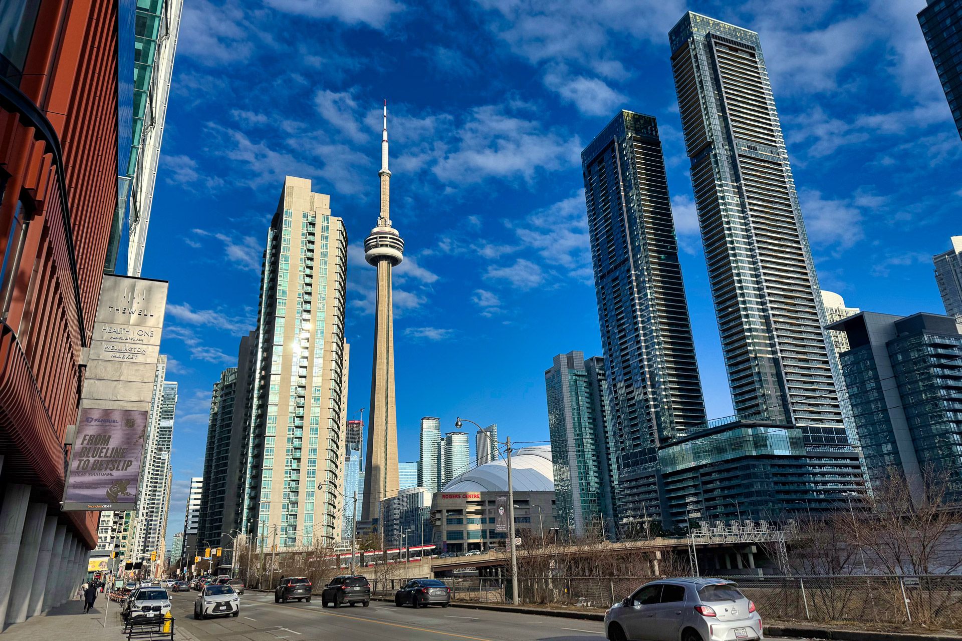 Welcome to the well condos, ideally located in the heart of toronto's downtown core. This bright southeast corner suite offers spectacular city views, including a stunning cn tower view. The unit features a spacious open-concept living and dining area, complemented by high-end built-in appliances and modern finishes throughout. The thoughtfully designed split two-bedroom layout provides both comfort and privacy. The primary bedroom includes a large window, generous closet space, and a private ensuite with a walk-in shower. The second bedroom also features a large window and closet, offering plenty of natural light. Residents will enjoy unmatched convenience with direct access to the well's vibrant retail promenade, featuring a food hall, boutique shops, and renowned restaurants. Transit is effortless with the spadina streetcar stop just a one-minute walk away. This unit also includes one parking space, making downtown living even more convenient.