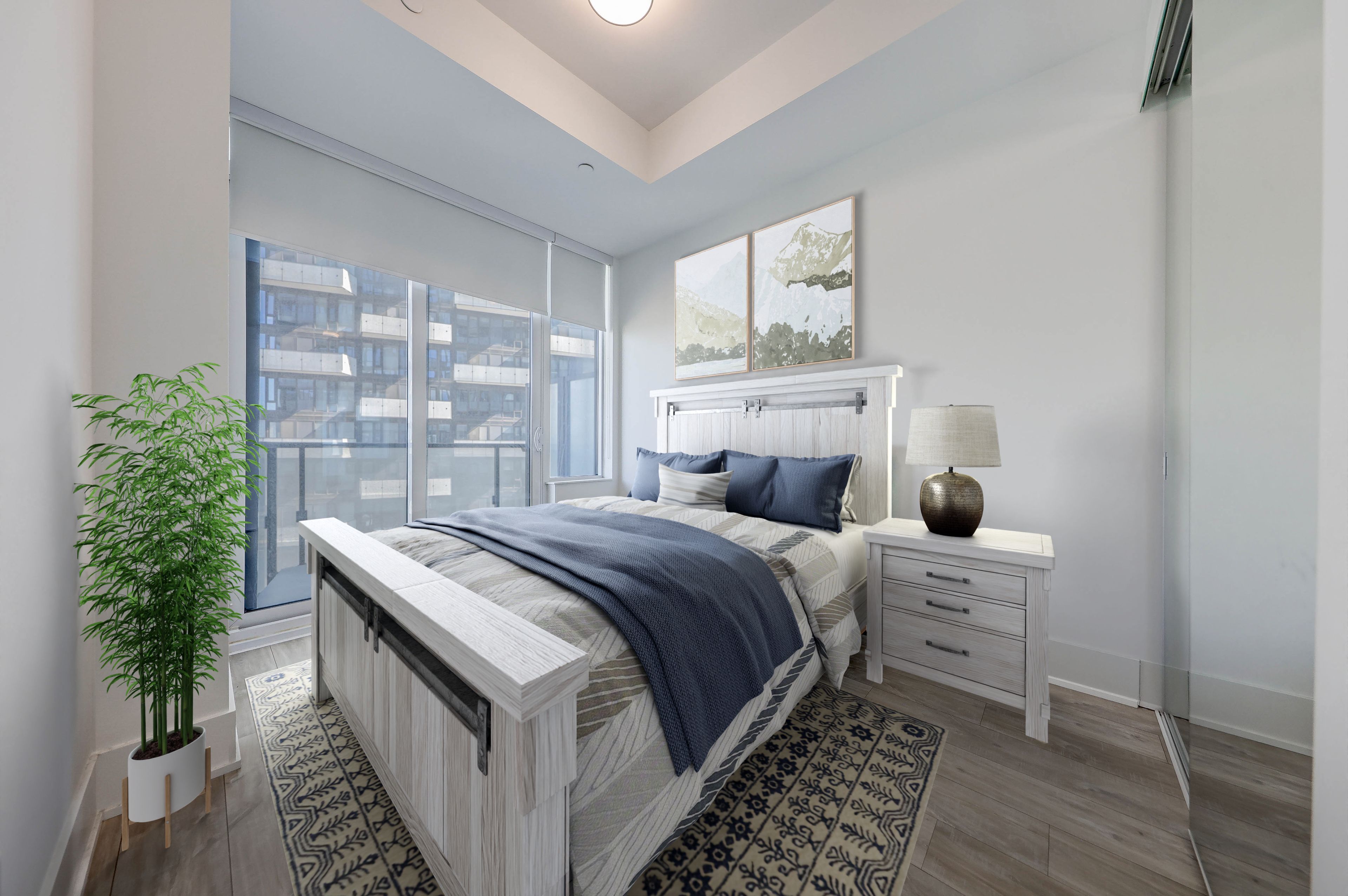 • Spacious living/dining area that connects to a private balcony.