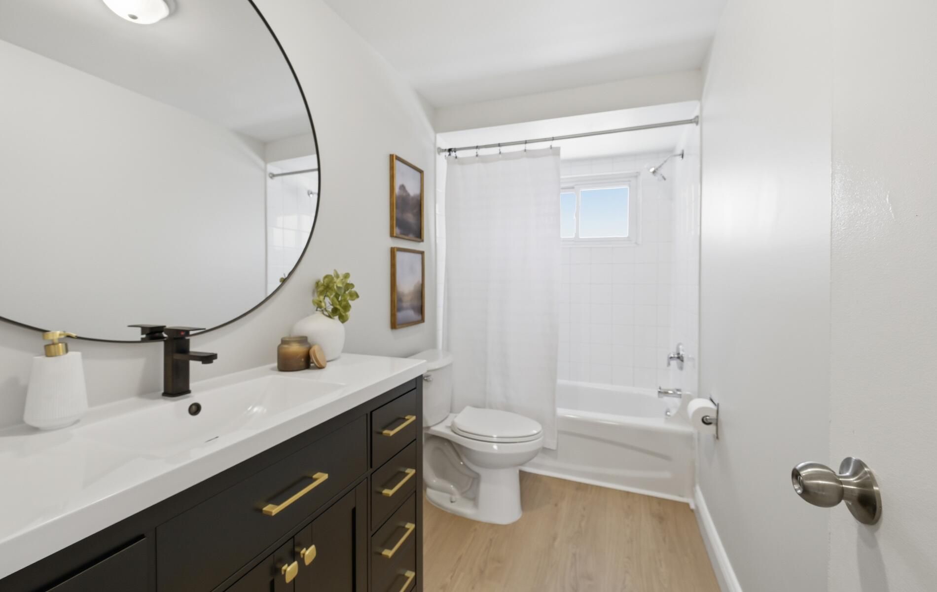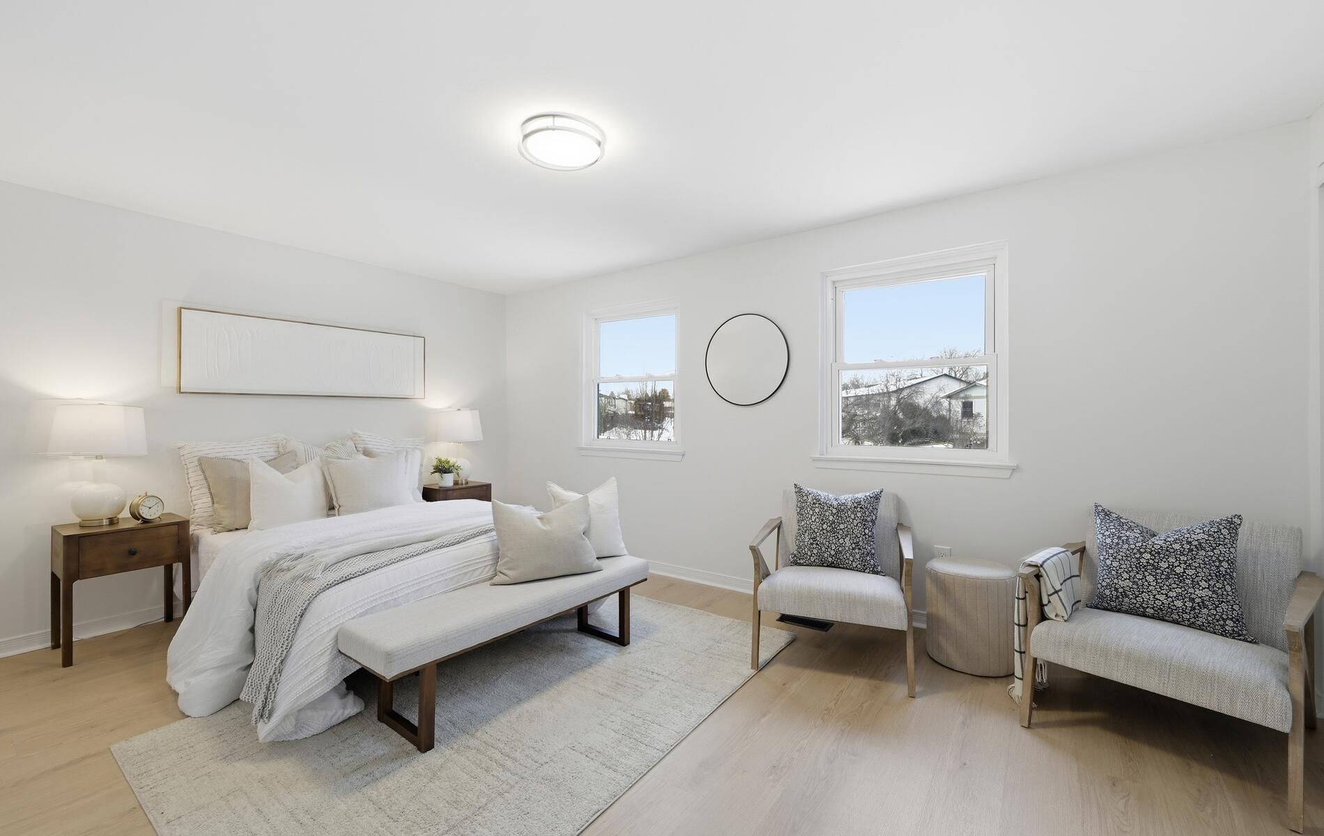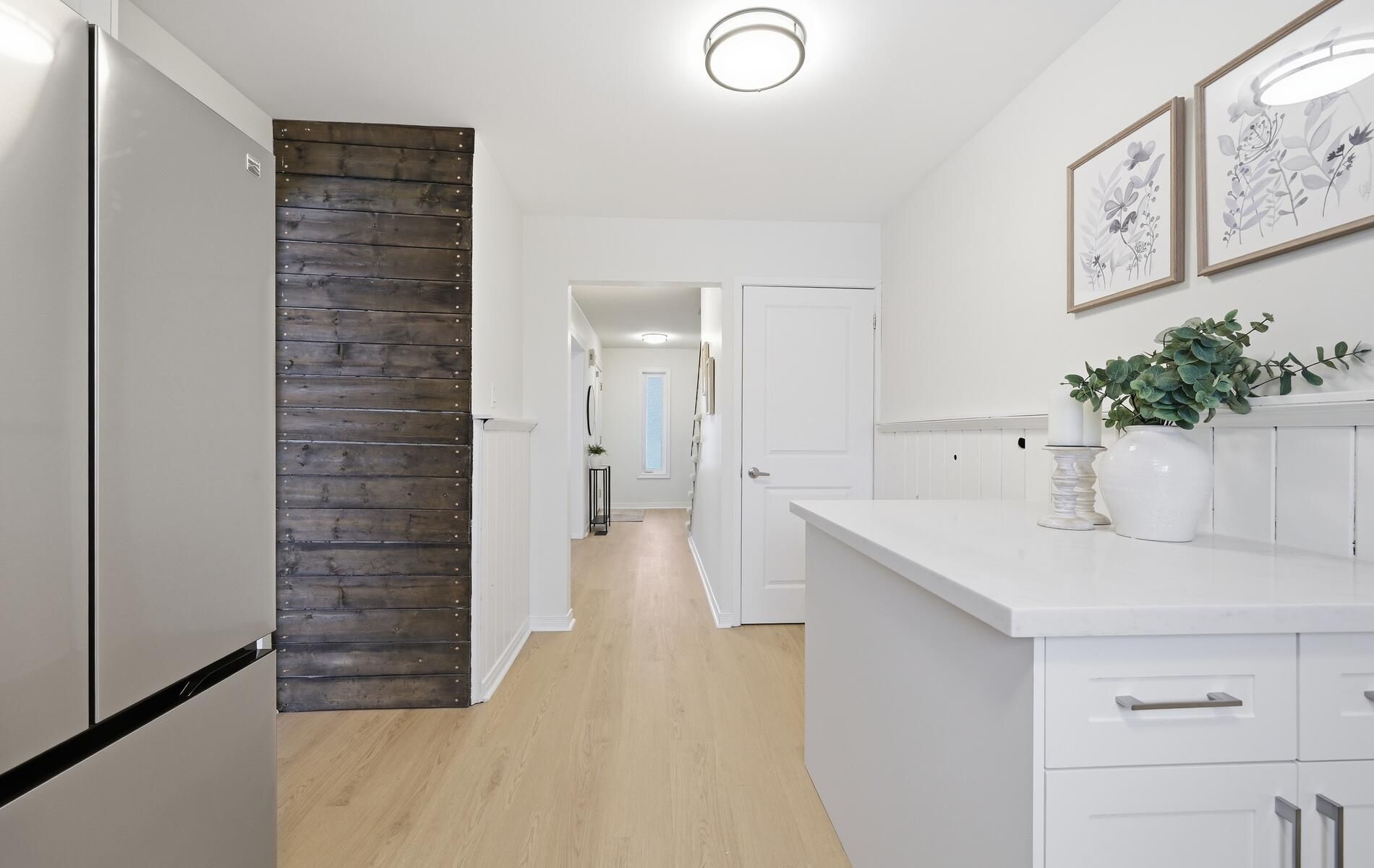 • New white oak vinyl flooring for a seamless look across levels.