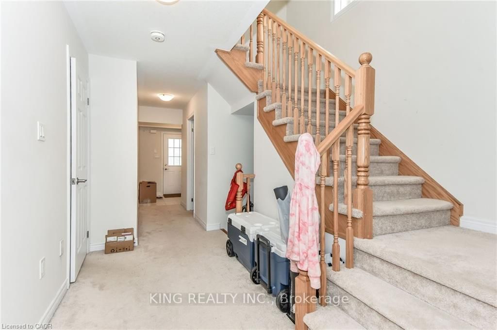 Beautiful and well-maintained 3-bedroom, 3-bathroom townhome in a highly sought-after family-friendly neighborhood of cambridge. Features a bright open-concept main floor with modern kitchen, stainless steel appliances, and walk-out to private balcony. Spacious primary bedroom with walk-in closet and 3-pc ensuite. Convenient upper-level laundry and attached garage with inside entry. Excellent location close to hwy 401, schools, parks, shopping, and all amenities. Perfect for first-time buyers, investors, or families looking for a move-in ready home!