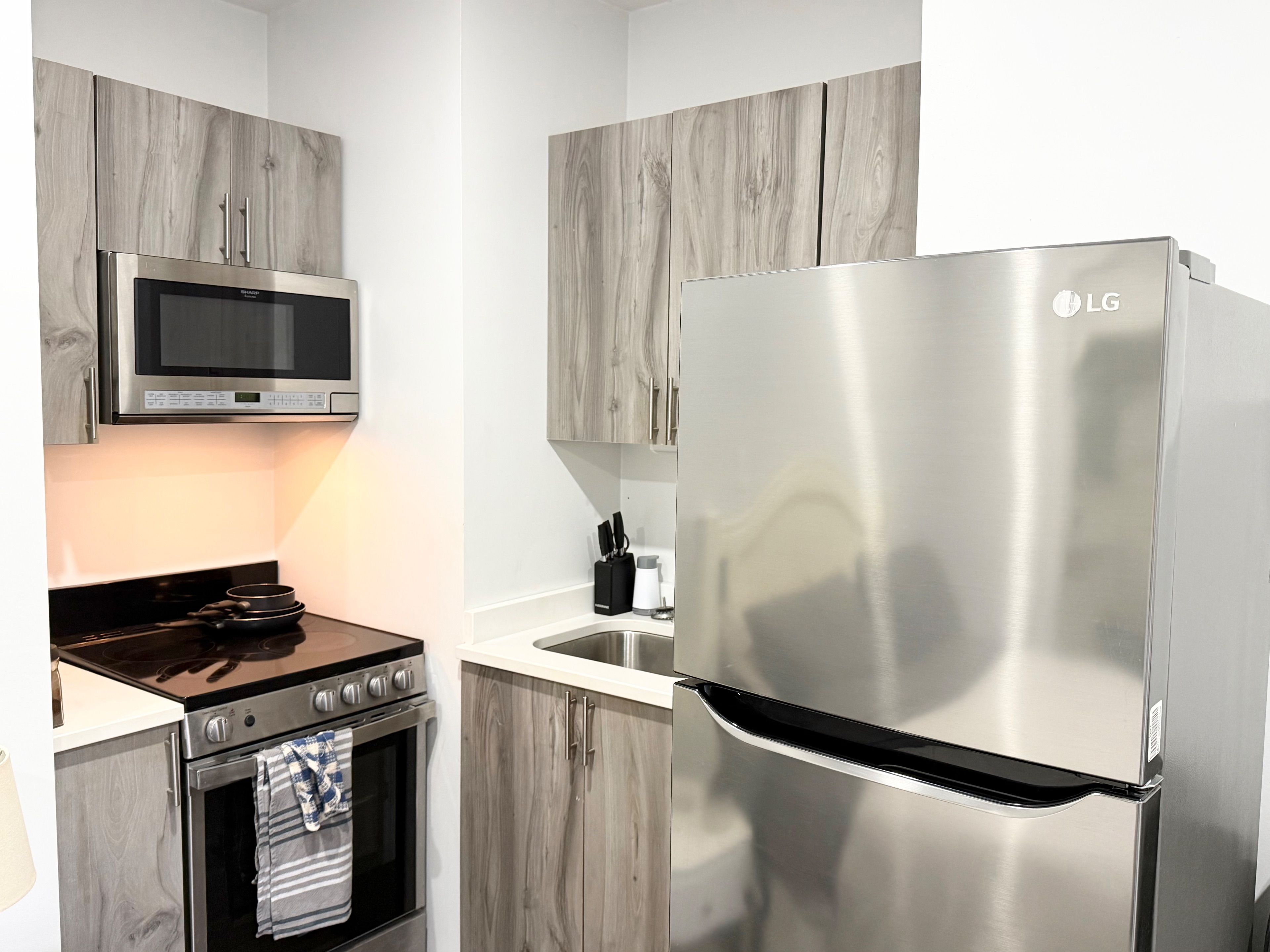 • Fully furnished suite with kitchen essentials for easy living.