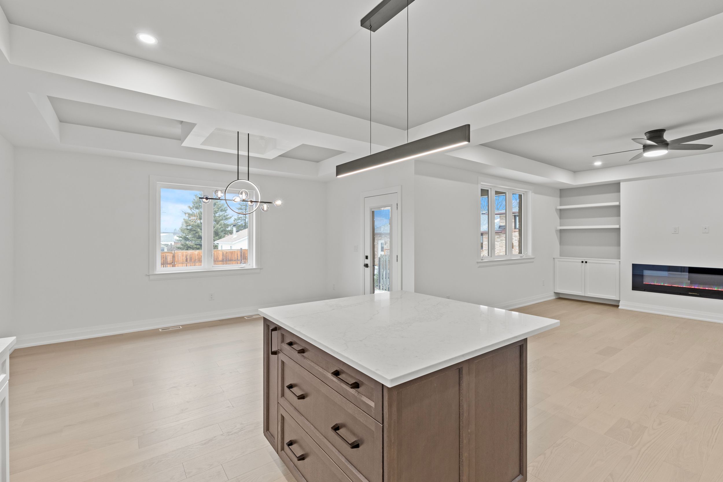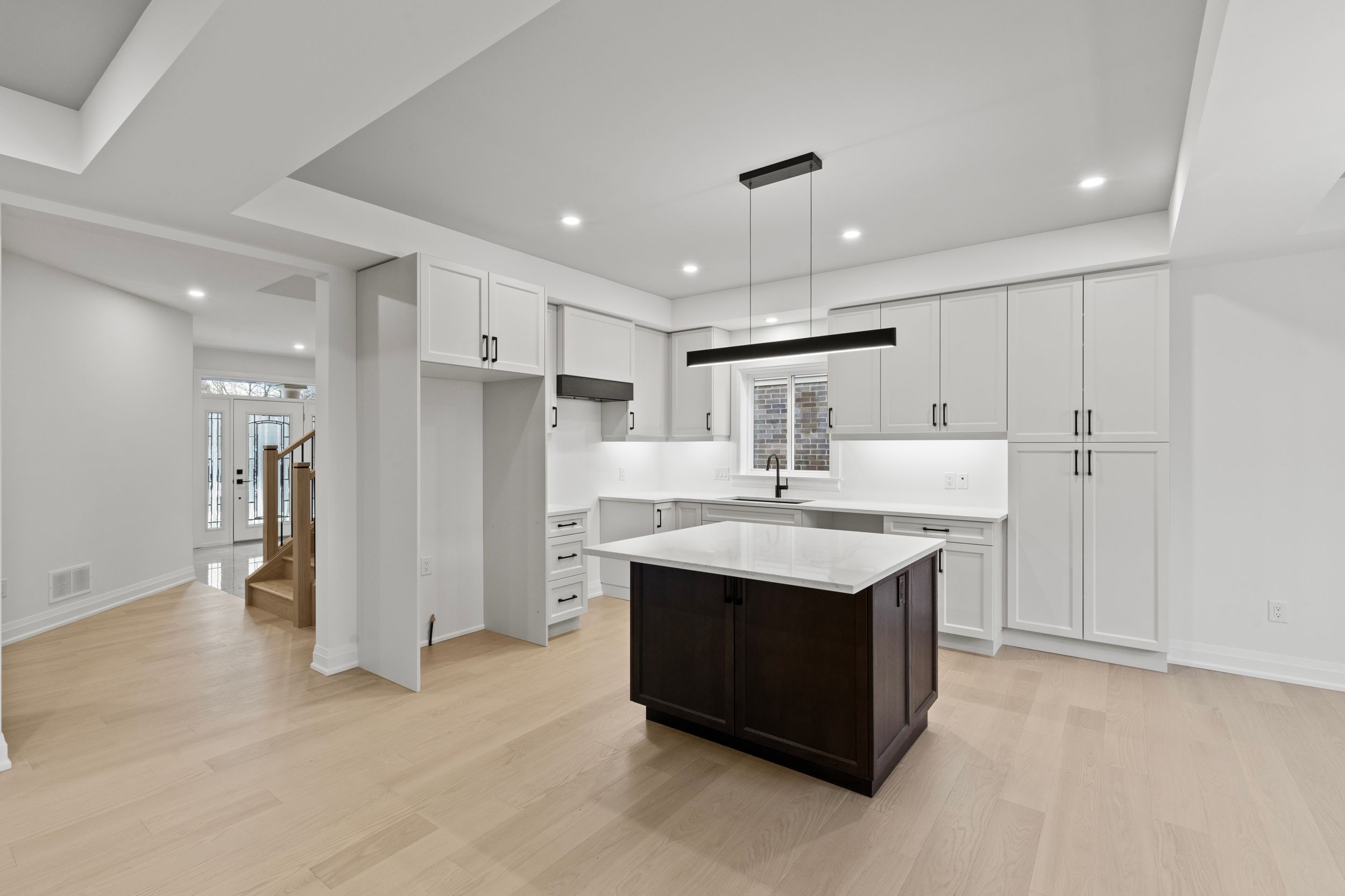 • Modern kitchen with quartz counters, island, and ample cabinetry for cooking enthusiasts.
