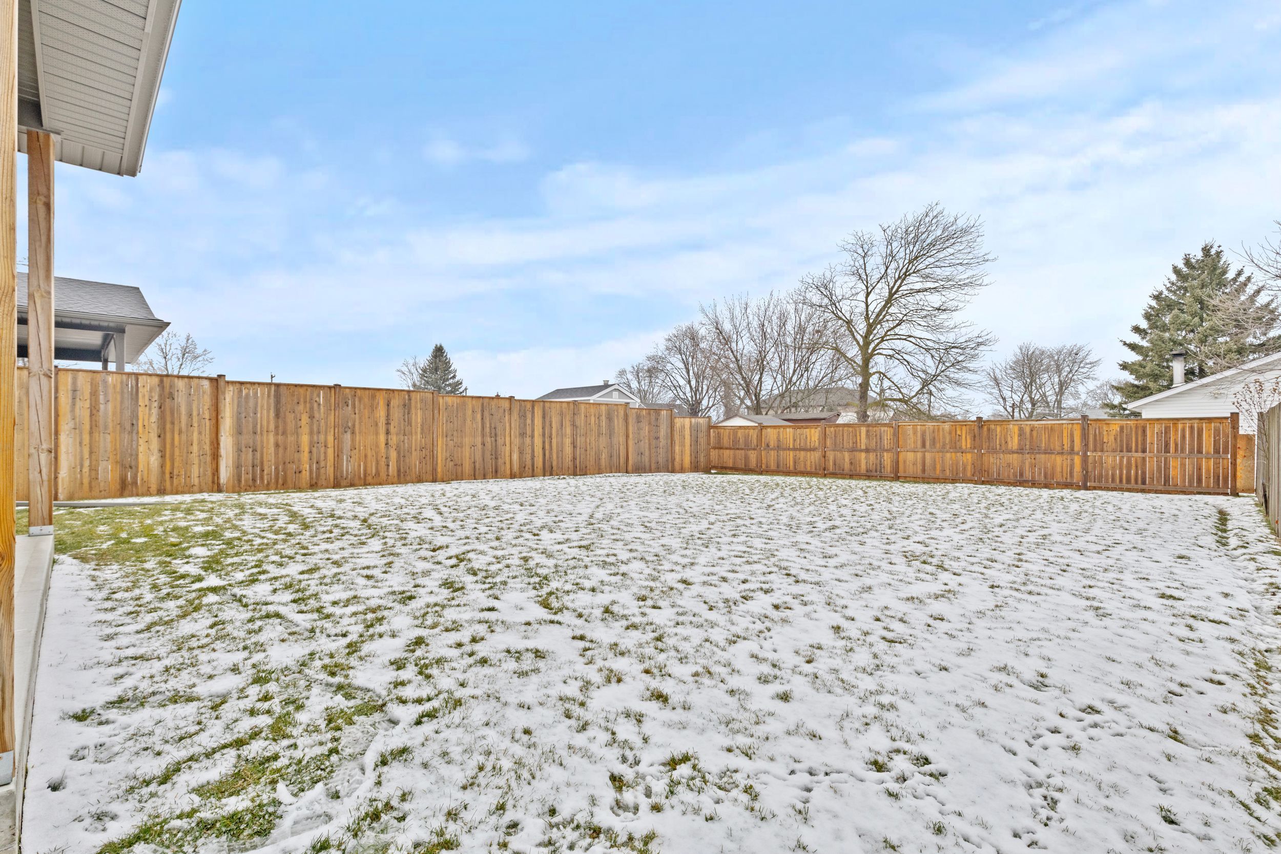• Generous backyard and covered patio perfect for family gatherings and outdoor fun.