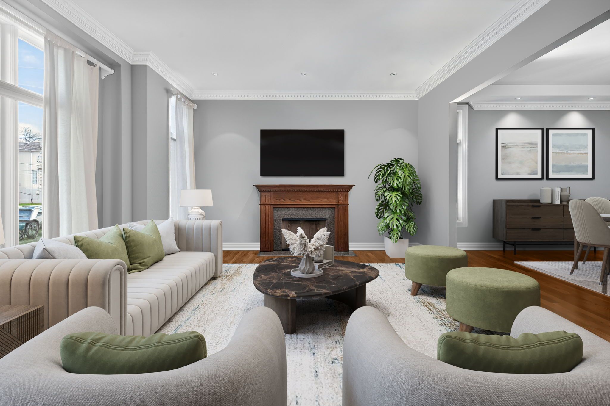 Timelessly elegant family home nestled in the heart of bedford park features 4+1 bedrooms plus 5 bathrooms and luxurious hardwood and marble throughout. Main floor boasts grand foyer and main hall open to the 2nd floor above, rich with natural light from a sweeping side staircase featuring double-height wall of windows. Generously sized principle rooms and renovated gourmet kitchen with breakfast area plus walkout to the rear garden wood deck are an entertainer's delight. Upper level features sprawling primary retreat with double-door entrance and spacious walk-in closet plus lavish 7-piece ensuite, while 3 additional bedrooms complete this level of the home. The lower level features a 5th bedroom with semi-ensuite, play room, oversized rec room complete with fireplace, and ample customized storage throughout - perfect for an active household. An intentionally balanced combination of traditional and functional design, this beautifully maintained residence is also conveniently located near many parks, walking trails, public and private schools, plus easy access to hwy 401 for commuting and upscale shops and restaurants of avenue road. The pinnacle of luxurious toronto family living!
