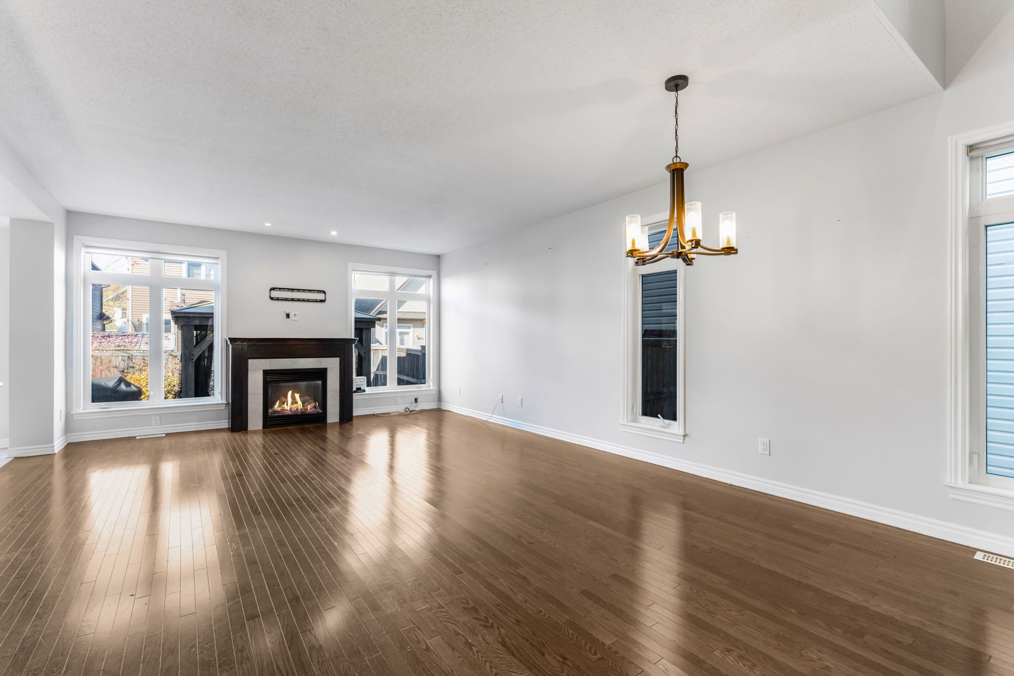 • Cozy gas fireplace and hardwood flooring throughout main level.