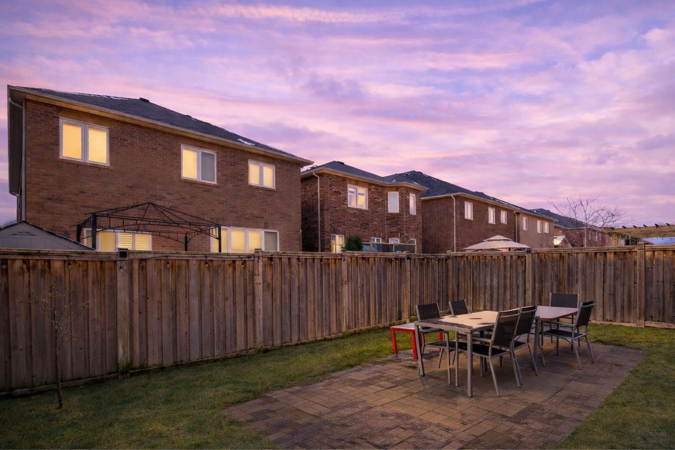Offering over 3,700 sq ft of finished living space, this upgraded 4 bedroom plus den home delivers exceptional room across all three levels. The main floor features 9 ft ceilings, hardwood flooring, upgraded lighting, & a neutral colour palette. The eat in kitchen includes white cabinetry, stone countertops, stainless steel appliances, a breakfast bar island, and a walkout to the fully fenced backyard. The layout provides a formal living room, a separate dining room and an open family room with a gas fireplace. Upstairs, a spacious hardwood floored loft /den adds even more flexibility. All bedrooms are generously sized, including a primary suite with a massive walk in closet and a huge spa inspired 5 piece ensuite. Bedrooms 1 and 2 share a jack and jill bath, while bedroom 3 has its own private ensuite. The builder finished basement extends your living space with a large rec room, a 3 piece bathroom, and comfortable carpeting. Additional features include main floor laundry, interior garage access, a double car garage, and parking for six vehicles. Located in the harrison neighbourhood with no front neighbours, the home is within walking distance to parks, schools, and everyday amenities, and falls within the catchment for two of milton's top high schools.