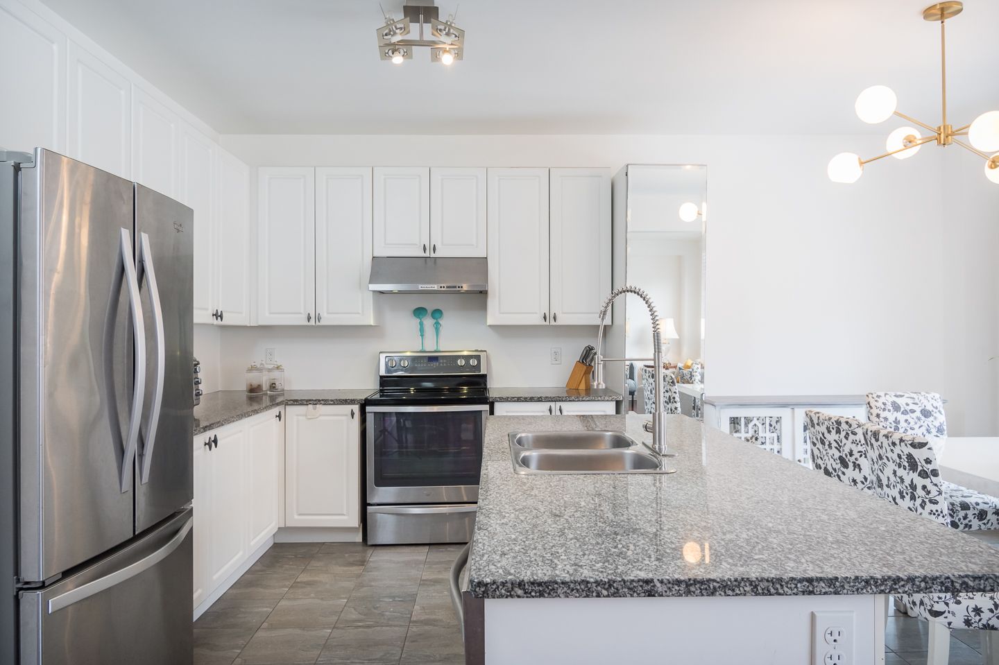 • Upgraded kitchen with stone countertops and stainless steel appliances.