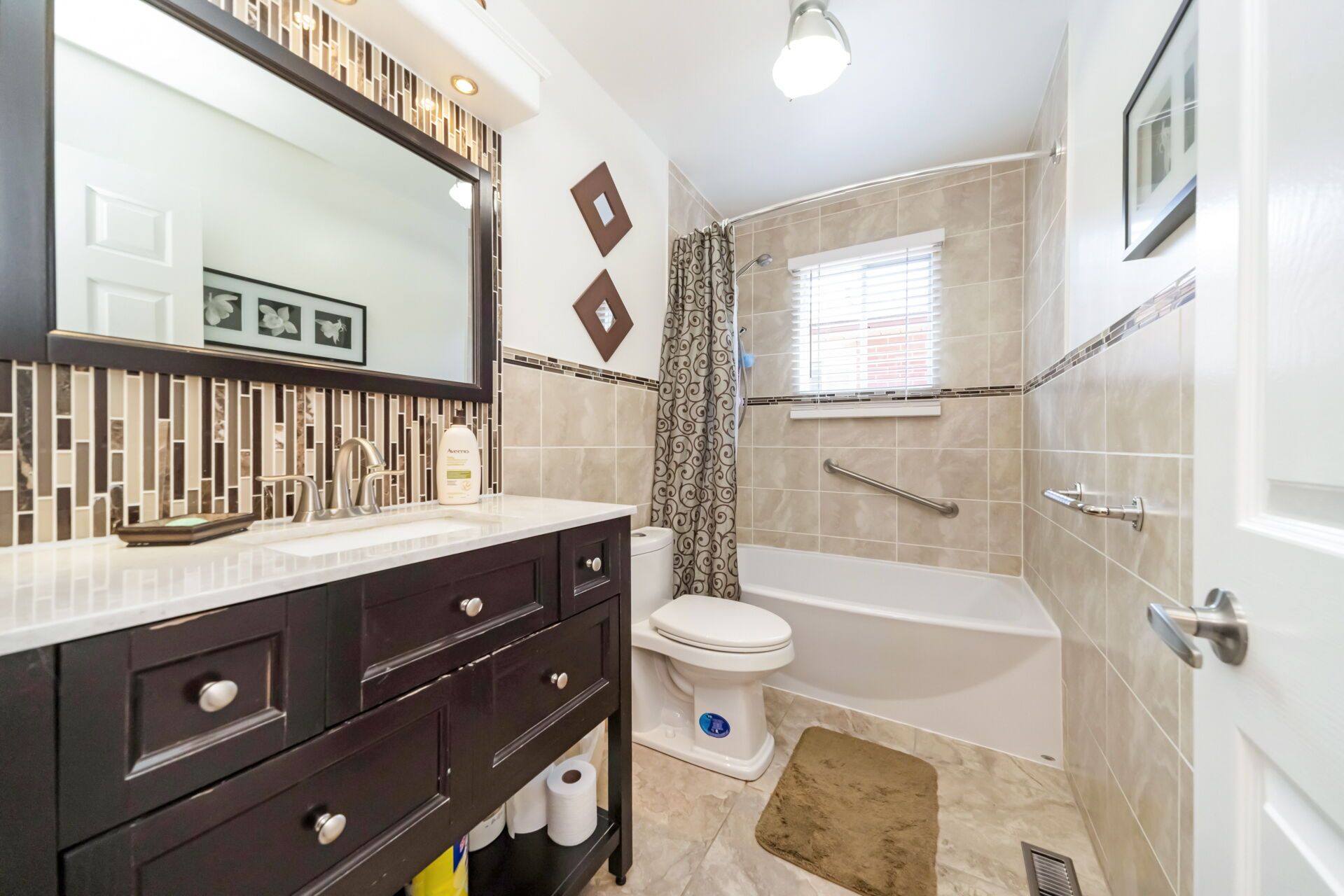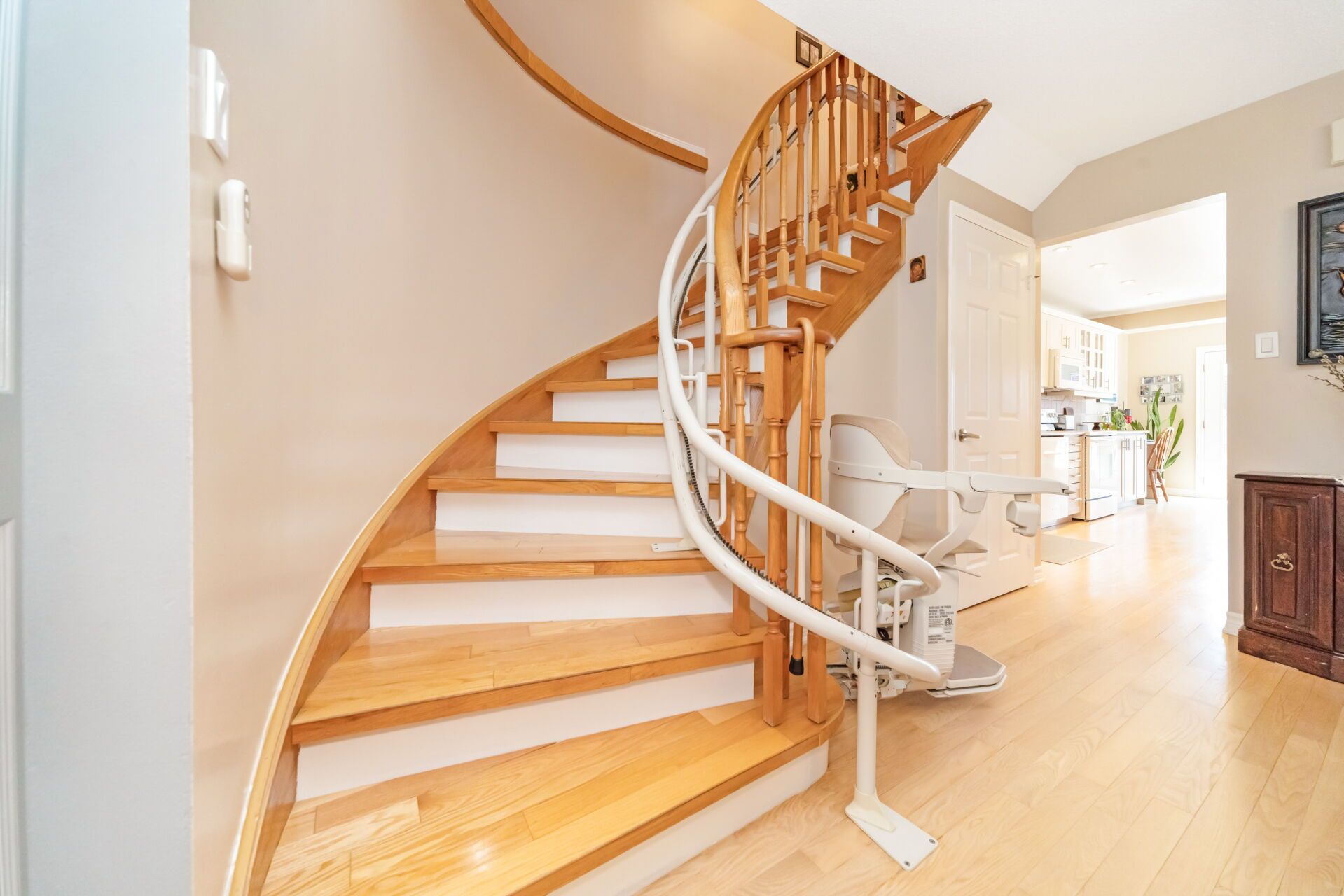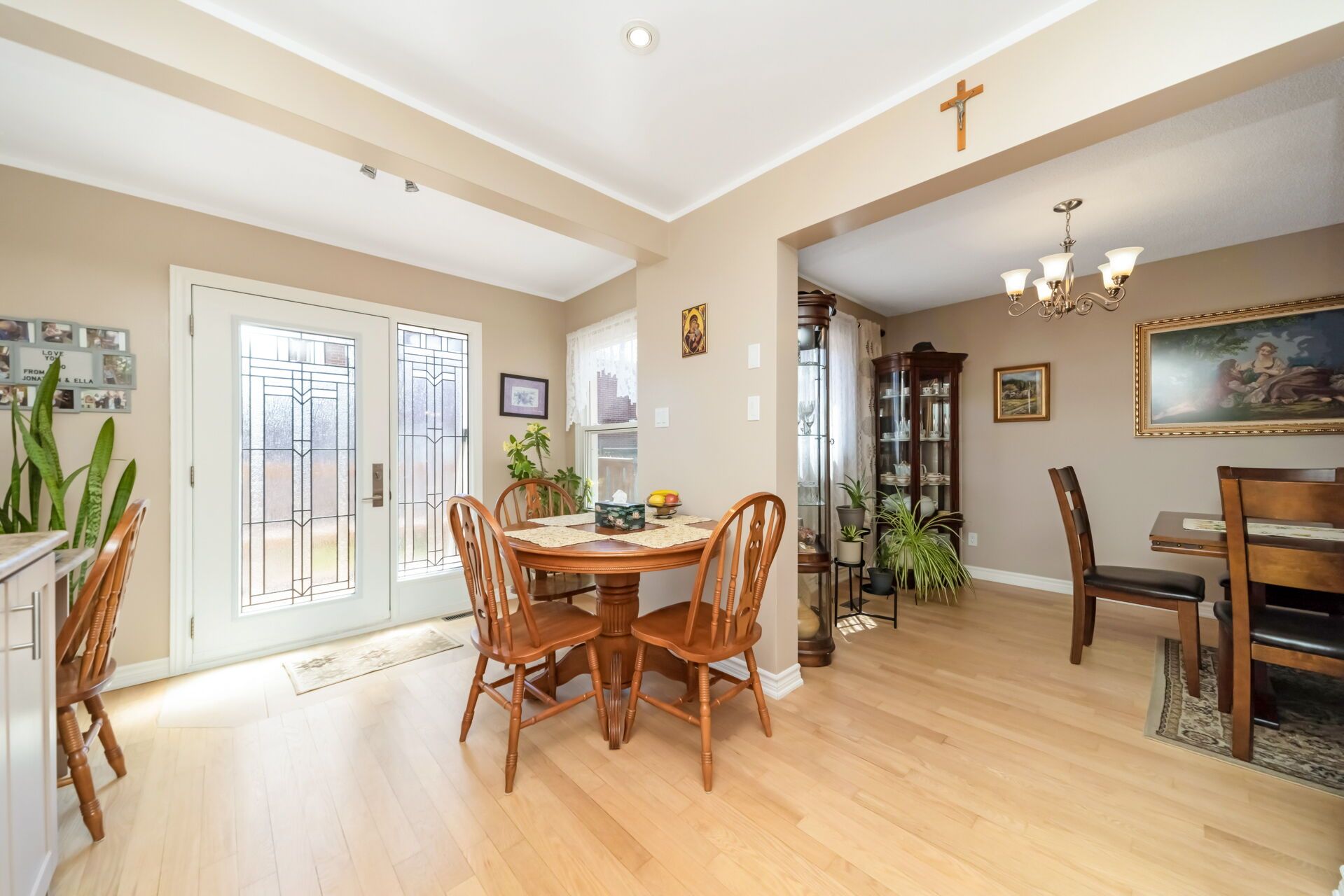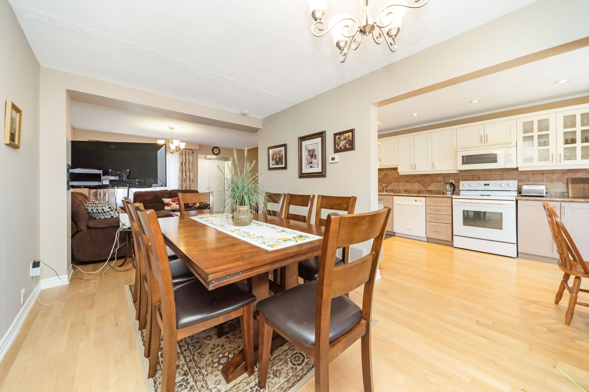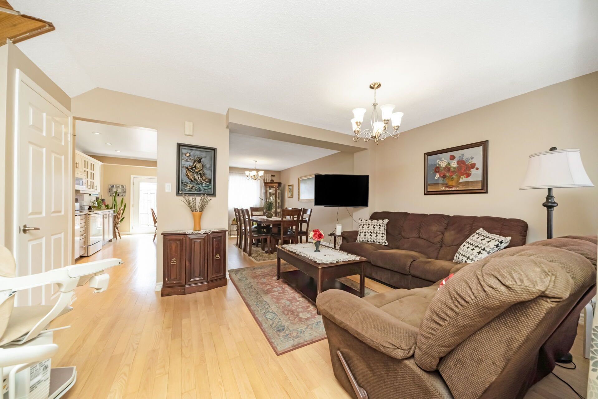Charming 2-storey link detached home with functional living space. The main floor offers an open living/dining area, hardwood floor throughout, a bright kitchen with laminate flooring and walk-out to the backyard deck, and a convenient powder room. Upstairs features a spacious primary bedroom with walk-in closet, two additional bedrooms, and a full 4-piece bath. The finished basement adds a den, recreation room, and laundry. Roof replaced approximately 3-4 years ago. Enjoy a private backyard complete with a wonderful deck.