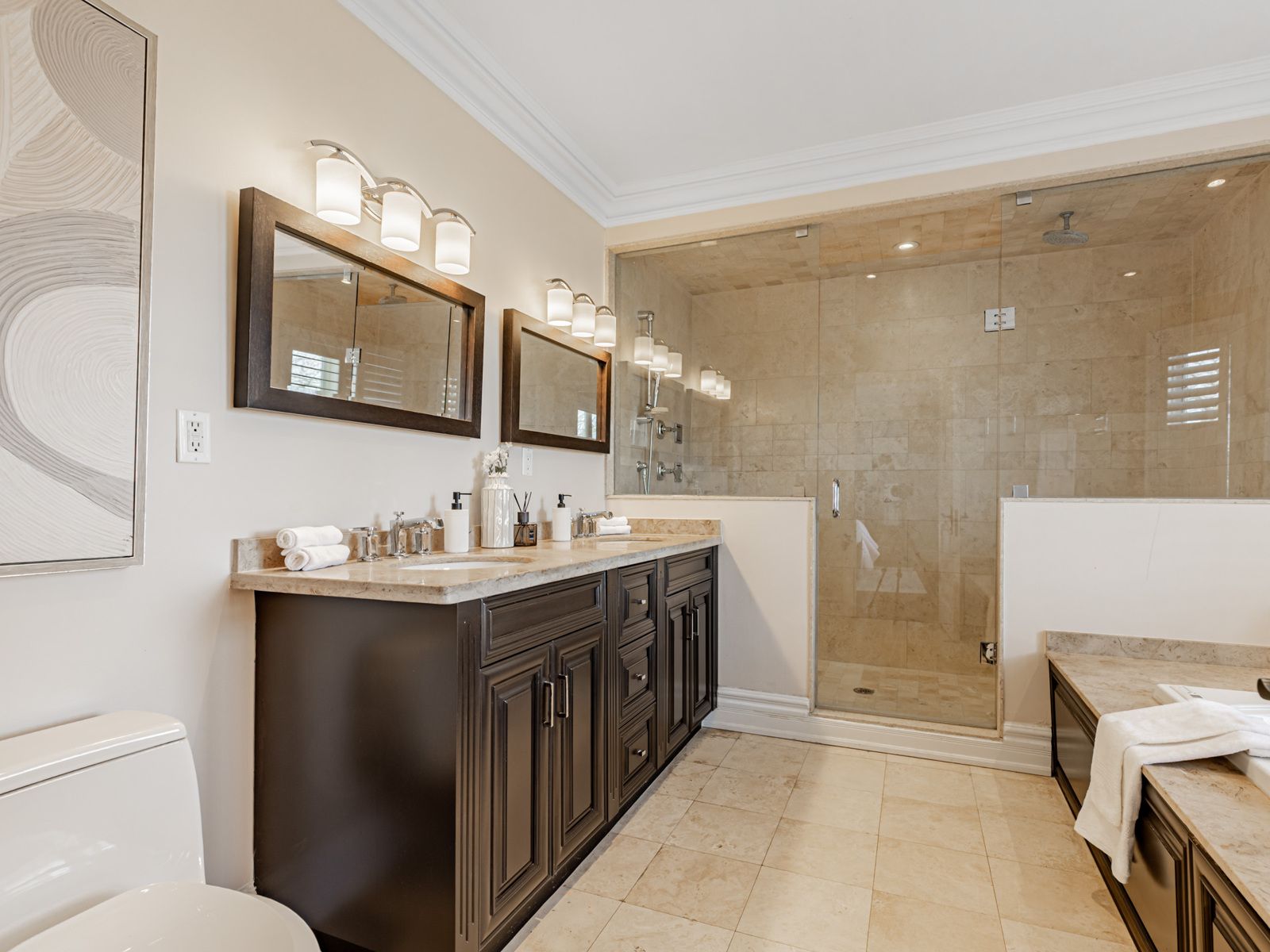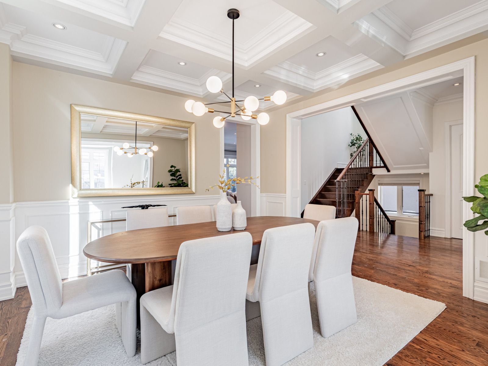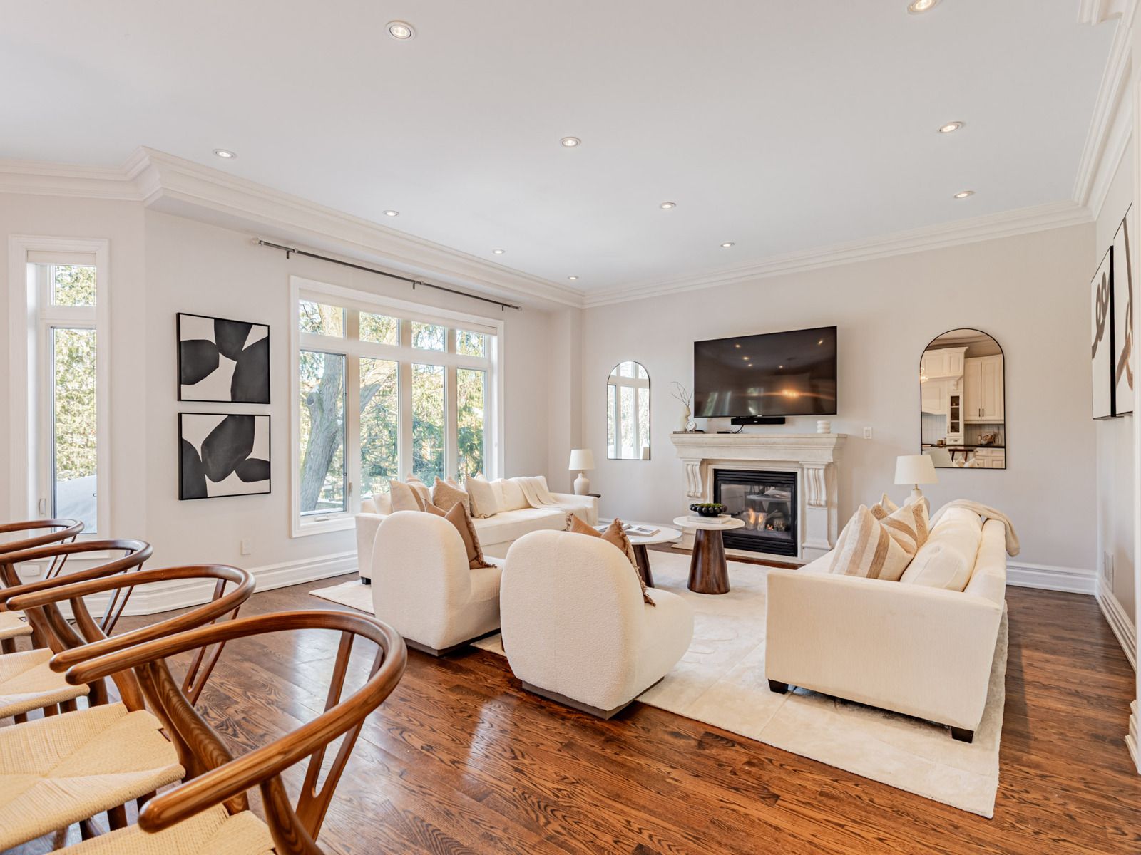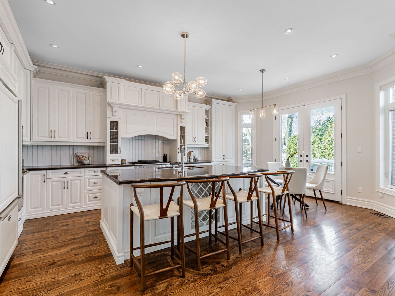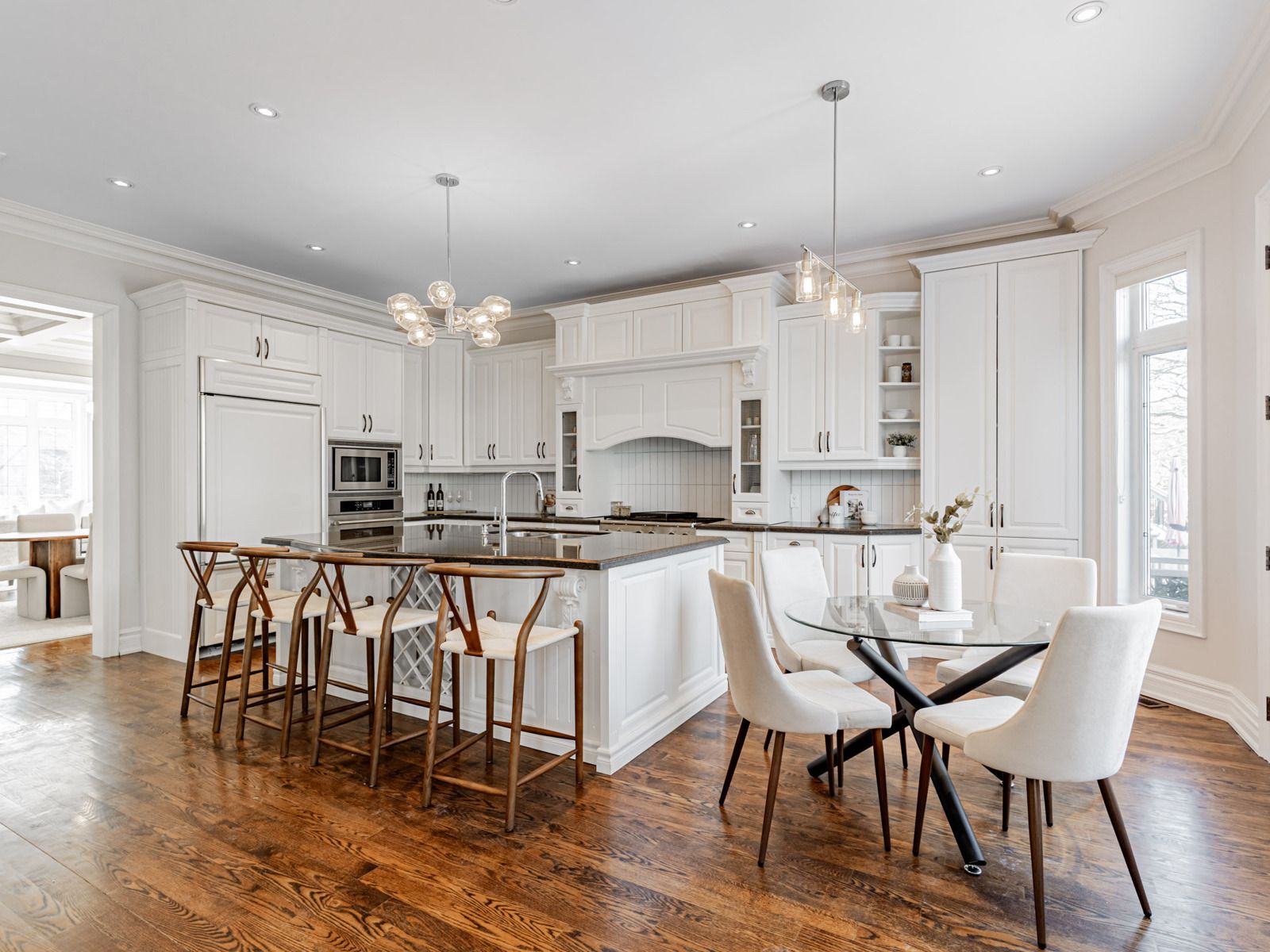 Gracefully positioned on one of the neighbourhood's most prestigious streets, 472 deloraine avenue is a home of quiet confidence and timeless sophistication. From the moment you arrive, the residence signals quality - refined architecture, balanced proportions, and an enduring sense of permanence. Inside, over 4,000 sq. Ft. Of interior space unfolds with intention. Sunlight flows through expansive principal rooms, highlighting elegant millwork, tailored finishes, and thoughtfully considered sightlines. The layout is both grand and intimate, offering generous entertaining spaces alongside private retreats. Two gas fireplaces on the main level provide warmth and ambiance, enhancing the inviting atmosphere. The heart of the home is a chef's kitchen with premium travertine marble countertops and a statement island, ideal for family gatherings. Adjacent, the formal dining room features wainscoting, coffered ceiling, and elegant moulding, making every meal memorable. A dedicated home office provides a quiet workspace, while the finished lower level includes a recreation and games room with walk-out access to a private backyard oasis and sparkling pool. Private quarters offer a calm escape, with five spacious bedrooms, five spa-inspired bathrooms - including a primary ensuite with heated floors - all designed for comfort and livability. Set within a coveted enclave near top schools, parks, shops, and transit, the home also includes a two-car garage plus parking for six vehicles. 472 deloraine avenue is not just a home - it is a statement of refined family living, where timeless design and modern comforts converge effortlessly.