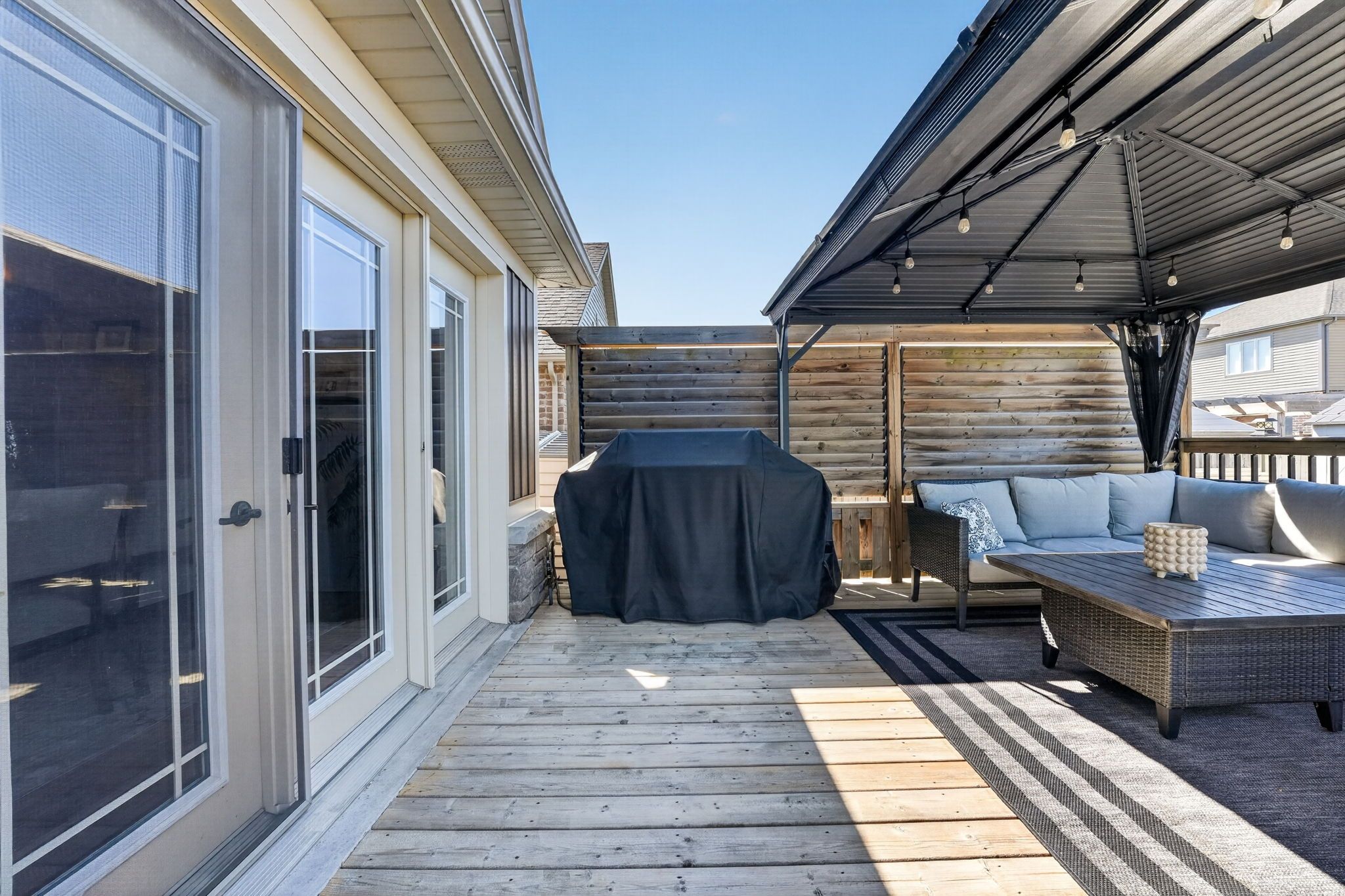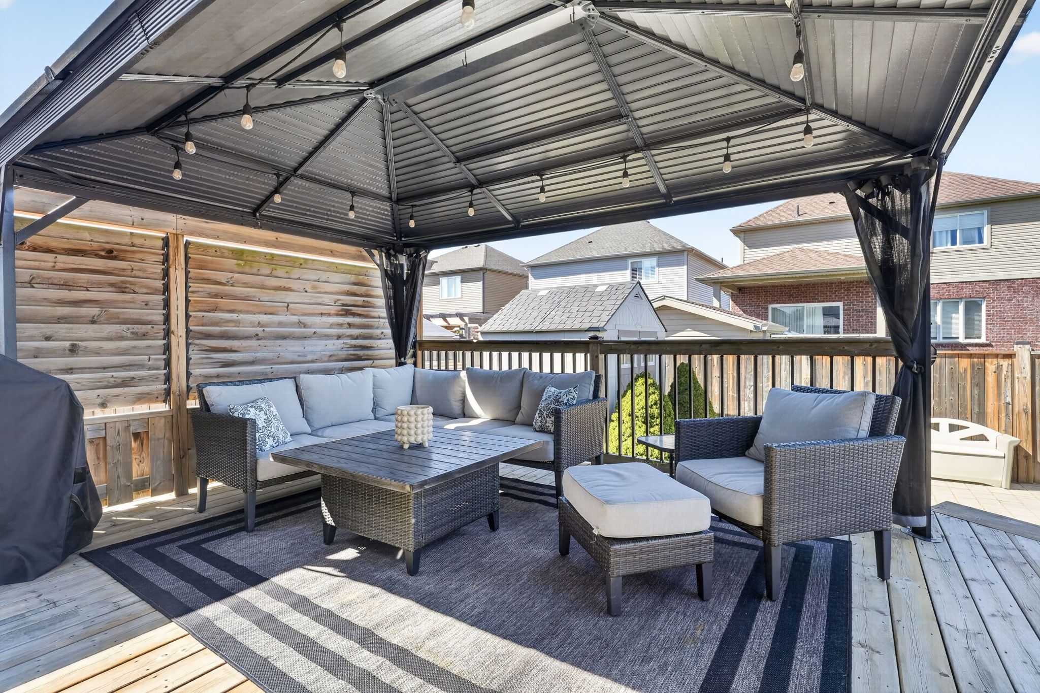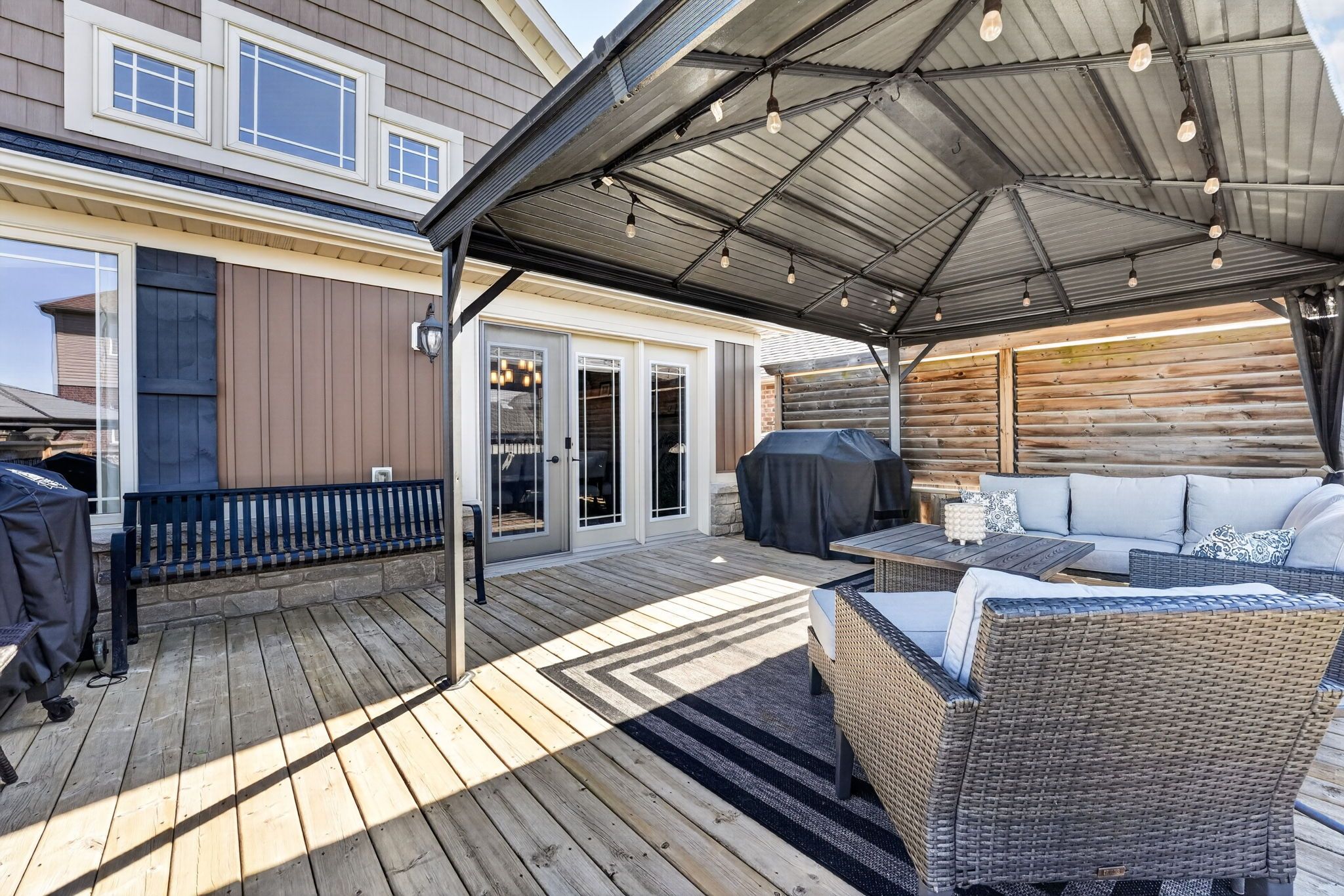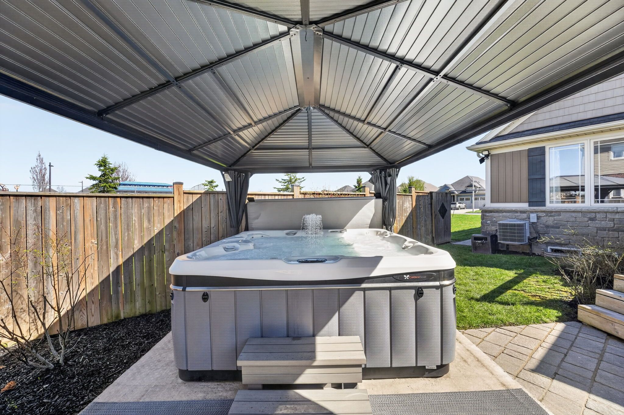 • Large deck with gazebo and hot tub for outdoor relaxation.