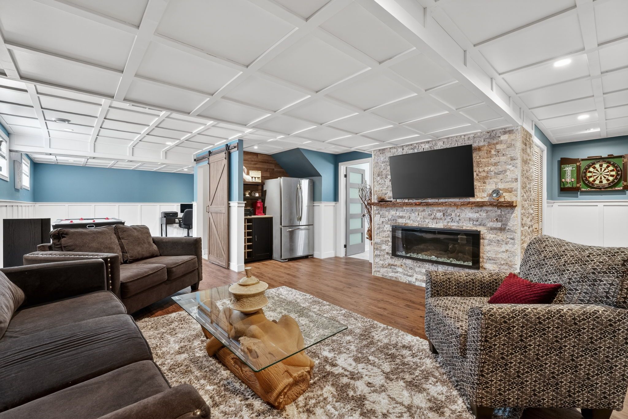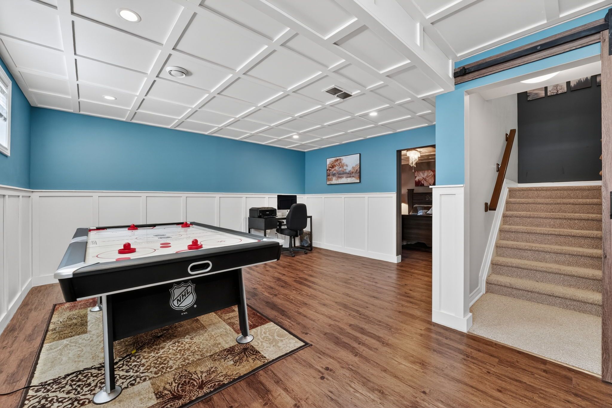• Finished lower level with rec room, extra bedroom, and full bathroom.