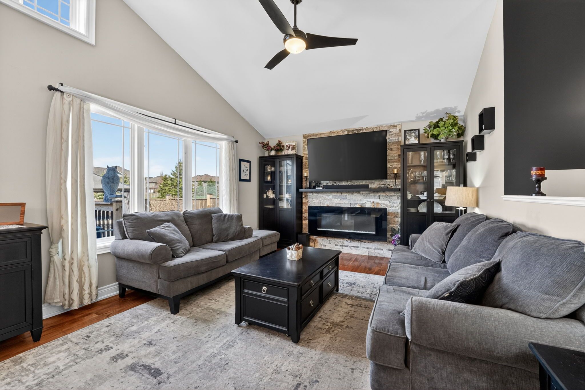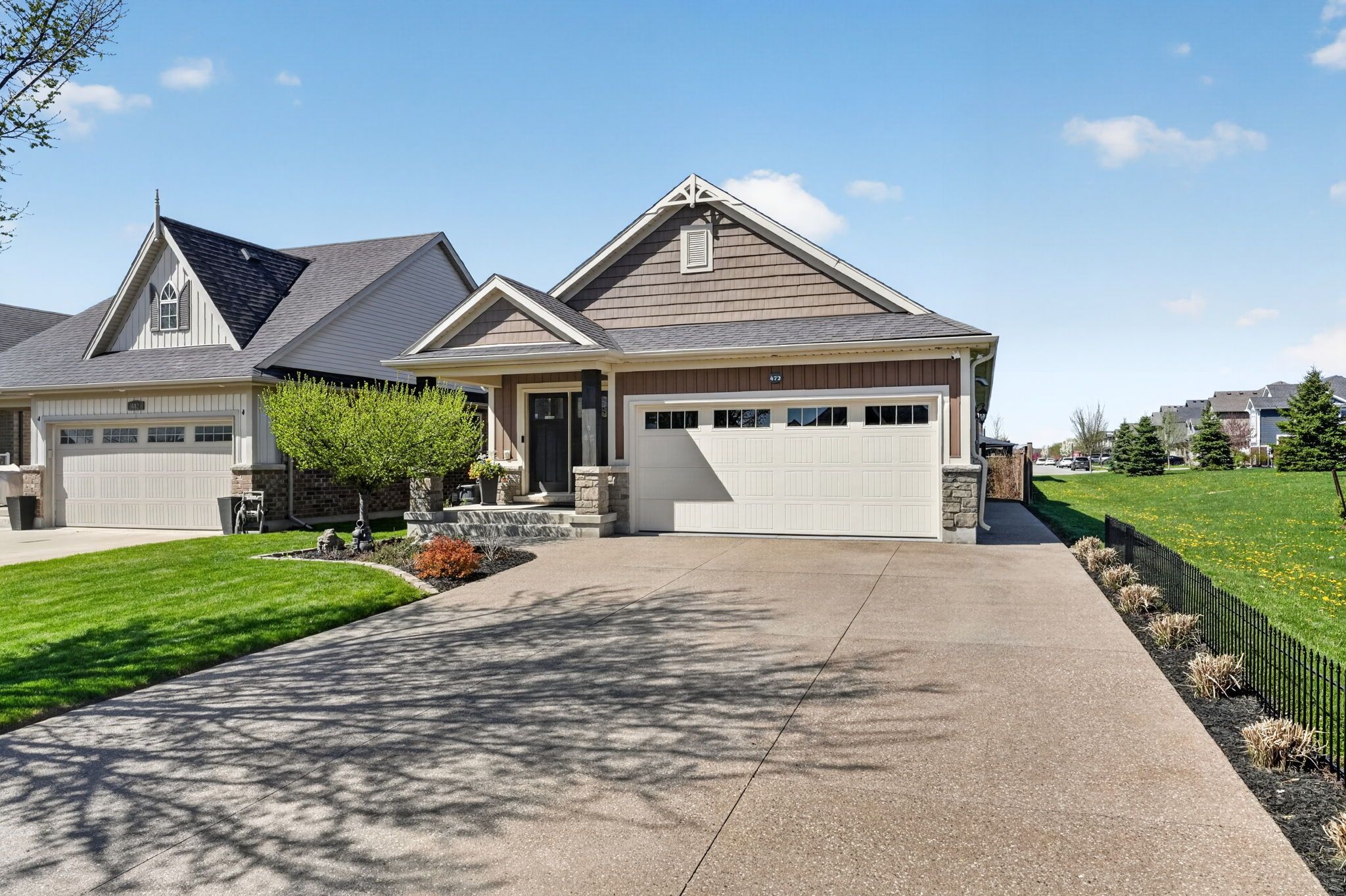 Quality built by rinaldi homes in 2012, and updated over the past 2-3 years, this 3 bedroom, 3 bathroom bungalow in sought after coyle creek will impress. Good sized front foyer. Spacious primary bedroom includes a 3 pc. Ensuite bathroom with double sink vanity and large walk in closet. Secondary bedroom, main floor 4 pc. Bathroom and laundry room, leads you to a open concept kitchen with eating island, granite counters, dining room and living room, featuring a stone wall fireplace with side built in's. From the dining room, patio doors lead out to a large deck with a 10 ft. X 14 ft gazebo, fully fenced landscaped backyard with deluxe hot tub also gazebo covered. A side gate steps you into gaiser park. The finished lower boasts a rec room with fireplace, kitchen station, the 3rd large bedroom ( egress window) with large walk in closet and 4 pc. Privilege bathroom. This home is carpet free, hardwood on the main, luxury vinyl in the lower. Concrete aggregate driveway, deluxe garage door opener are just some of the numerous upgrades made to this home. Low ut's bills and close to all amenities, don't miss out.