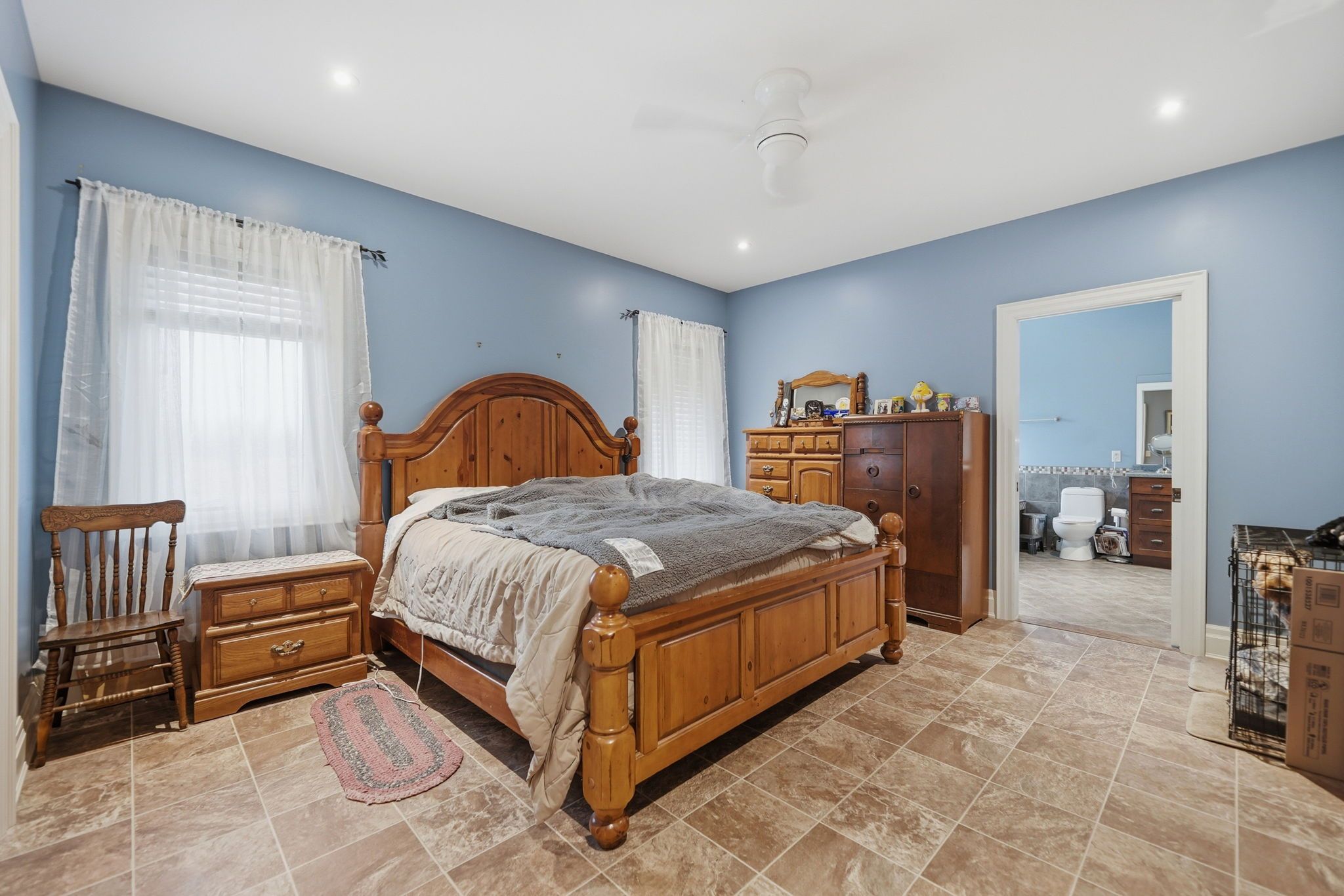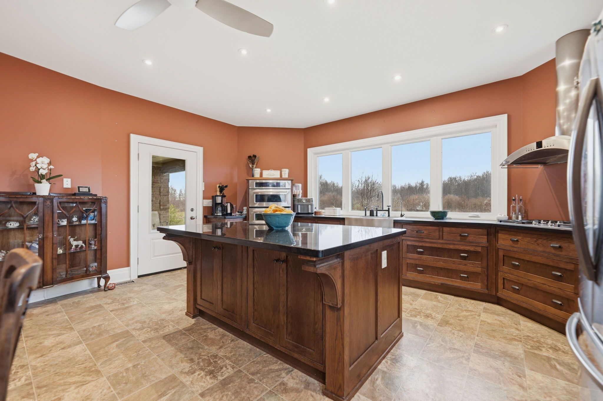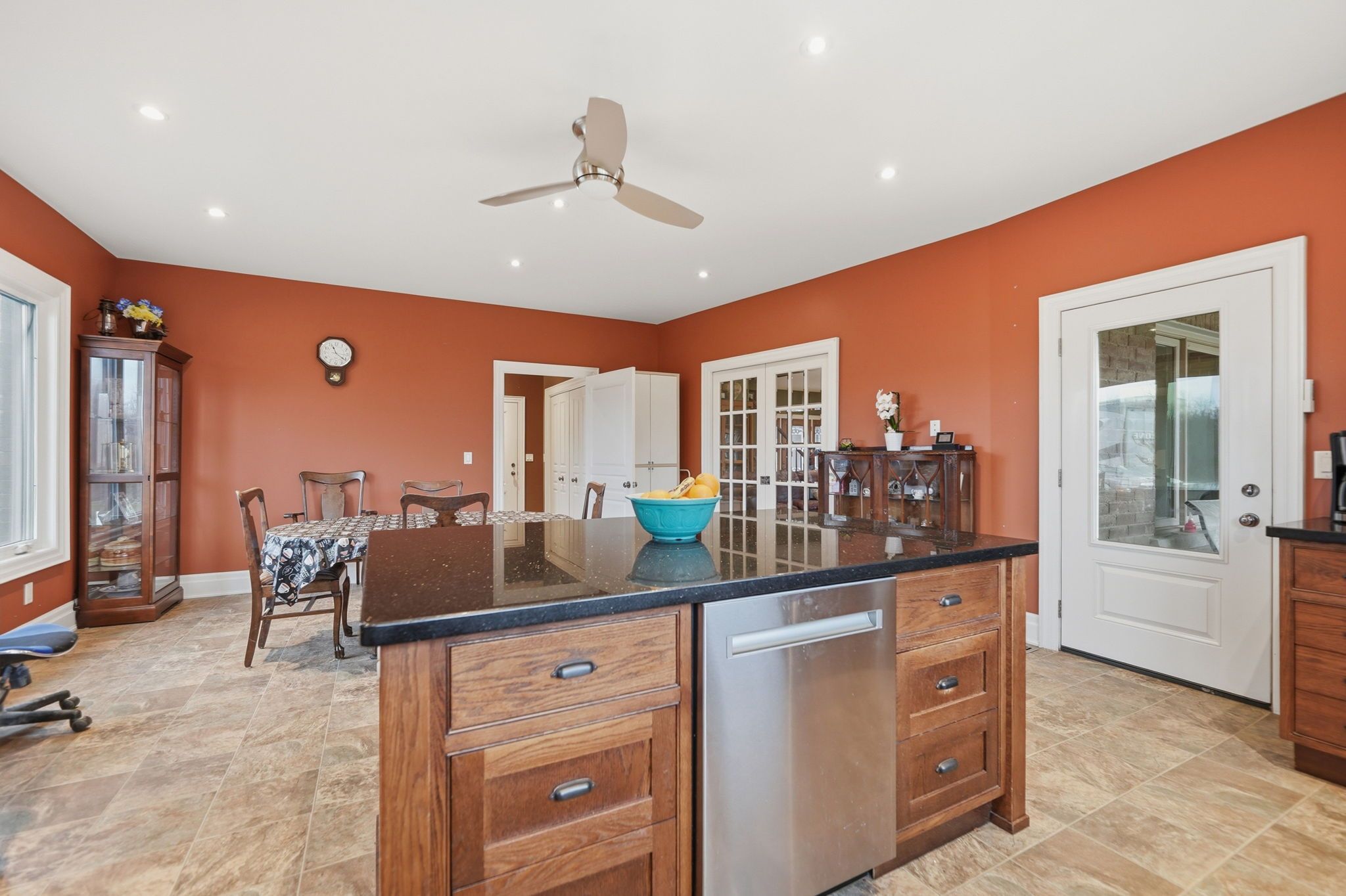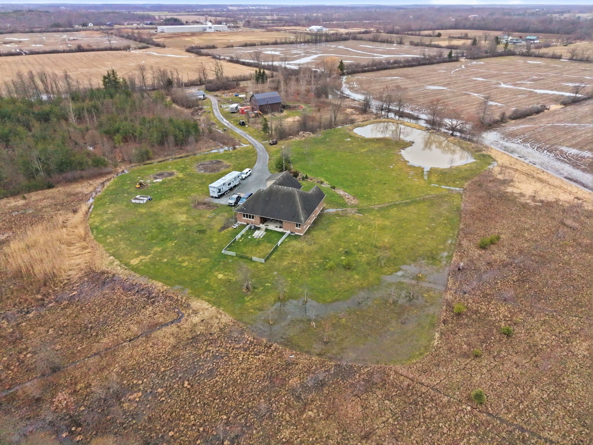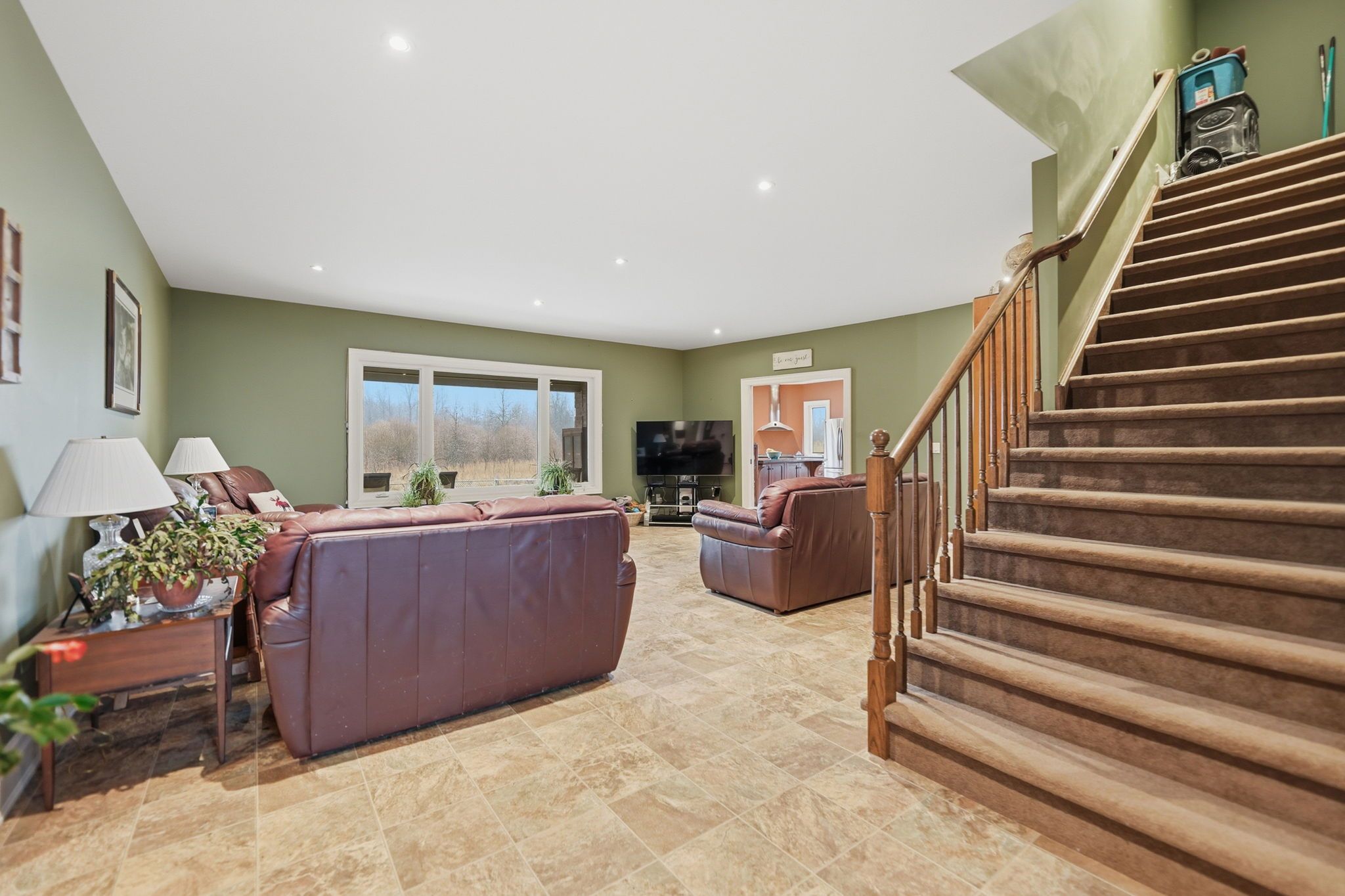 Set on over 50 acres of picturesque countryside, this expansive custom built home offers the perfect blend of space, comfort, and privacy. With 2,476 sq ft above grade and an additional 2,289 sq ft of fully finished living space below, there's room for the whole family and more. The main level features a spacious primary bedroom retreat complete with a luxurious 4-piece ensuite, including heated floors and a heated jacuzzi tub-perfect for unwinding after a long day. A second bedroom on the main floor provides added flexibility for guests, family, or a home office. The bright and inviting living room showcases serene views of the forested backyard, creating a peaceful, nature-filled backdrop. The large kitchen is designed for both everyday living and entertaining, offering granite countertops, abundant natural light, a built-in 5-burner gas cooktop with range hood, and a convenient wall oven and microwave combo. A reverse osmosis system at the kitchen sink adds an extra touch of quality. The fully finished basement expands your living space with three generously sized bedrooms, a spacious recreation room, a versatile bonus room ideal for a home office, gym, or hobby space, and a 4-piece bathroom. Additional features include a rare 2-car garage with single doors and a scenic pond on the property, enhancing the natural beauty and charm of this incredible rural setting. A truly unique opportunity to own a substantial home on a breathtaking parcel of land-ideal for those seeking space, privacy, and a connection to nature.