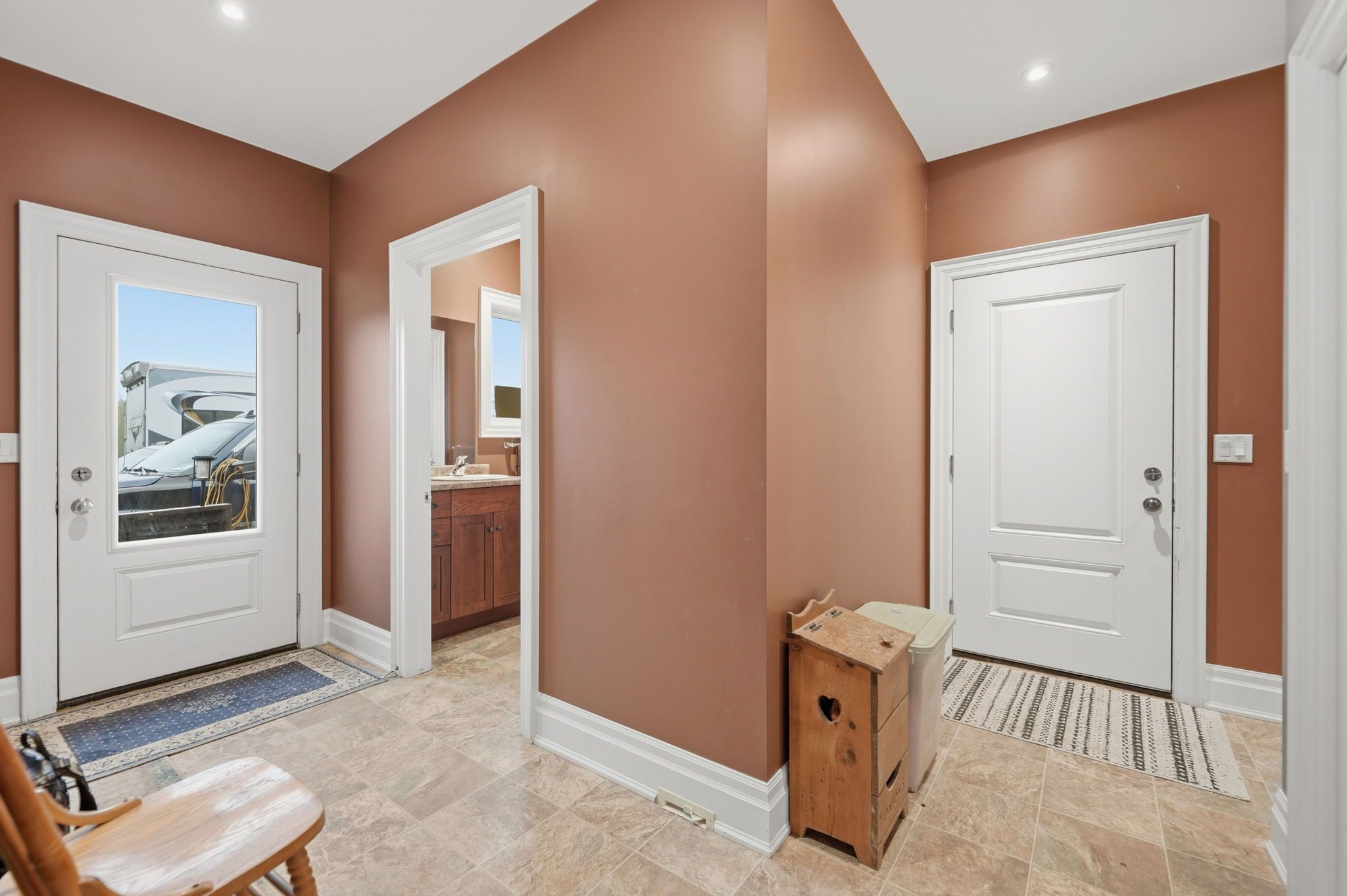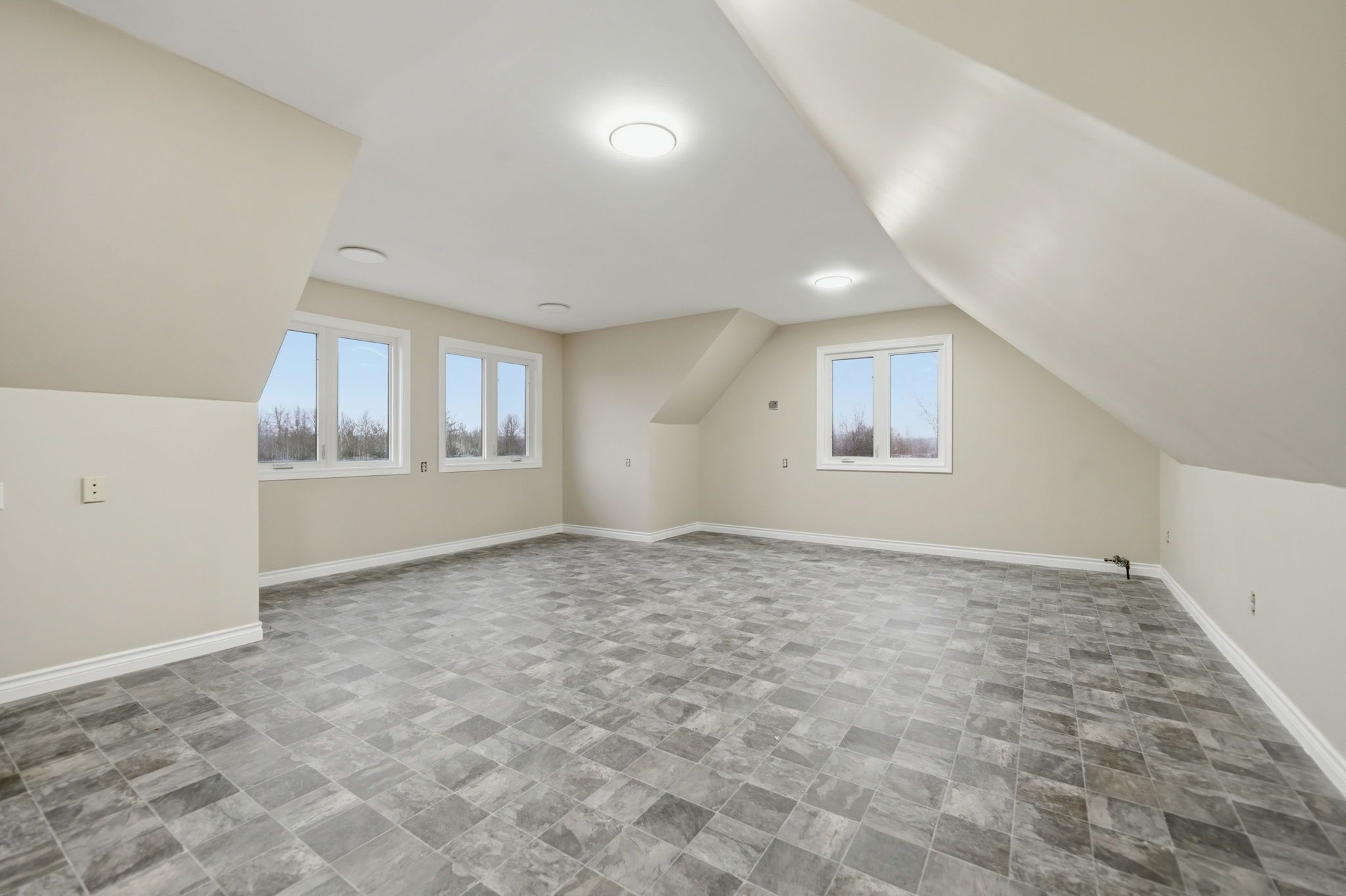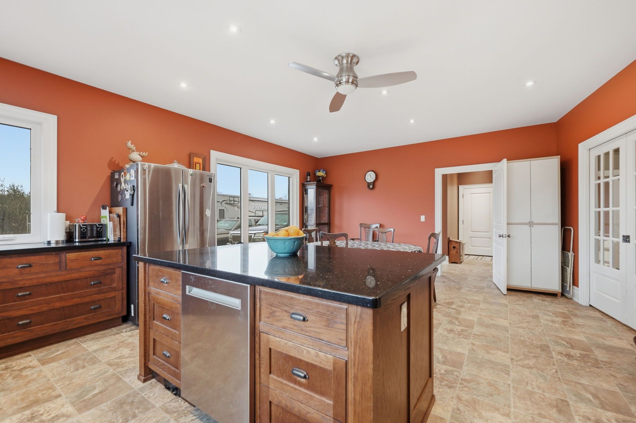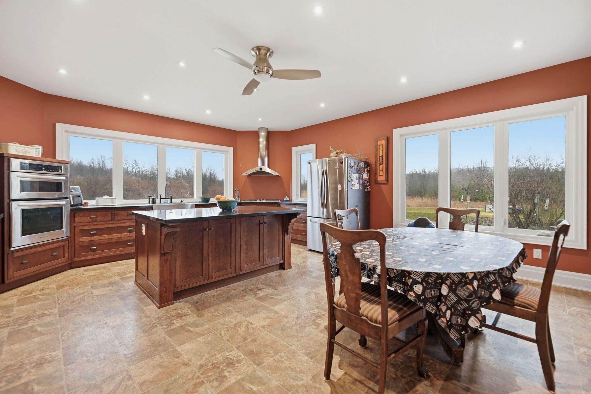 Set on over 50 acres of picturesque countryside, this expansive custom built home offers the perfect blend of space, comfort, and privacy. With 2,476 sq ft above grade and an additional 2,289 sq ft of fully finished living space below, there's room for the whole family and more. The main level features a spacious primary bedroom retreat complete with a luxurious 4-piece ensuite, including heated floors and a heated jacuzzi tub-perfect for unwinding after a long day. A second bedroom on the main floor provides added flexibility for guests, family, or a home office. The bright and inviting living room showcases serene views of the forested backyard, creating a peaceful, nature-filled backdrop. The large kitchen is designed for both everyday living and entertaining, offering granite countertops, abundant natural light, a built-in 5-burner gas cooktop with range hood, and a convenient wall oven and microwave combo. A reverse osmosis system at the kitchen sink adds an extra touch of quality. The fully finished basement expands your living space with three generously sized bedrooms, a spacious recreation room, a versatile bonus room ideal for a home office, gym, or hobby space, and a 4-piece bathroom. Additional features include a rare 2-car garage with single doors and a scenic pond on the property, enhancing the natural beauty and charm of this incredible rural setting. A truly unique opportunity to own a substantial home on a breathtaking parcel of land-ideal for those seeking space, privacy, and a connection to nature.