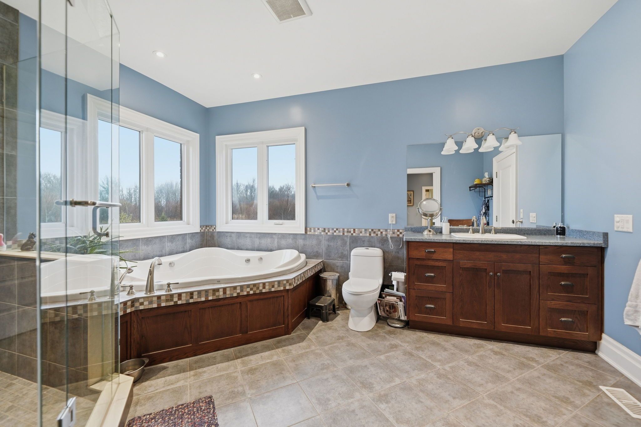 • Luxurious primary bedroom with heated floors and jacuzzi tub.