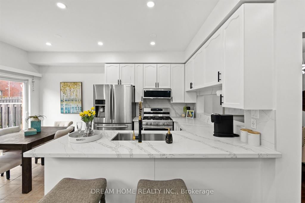 • Modern kitchen featuring quartz countertops and stylish backsplash.