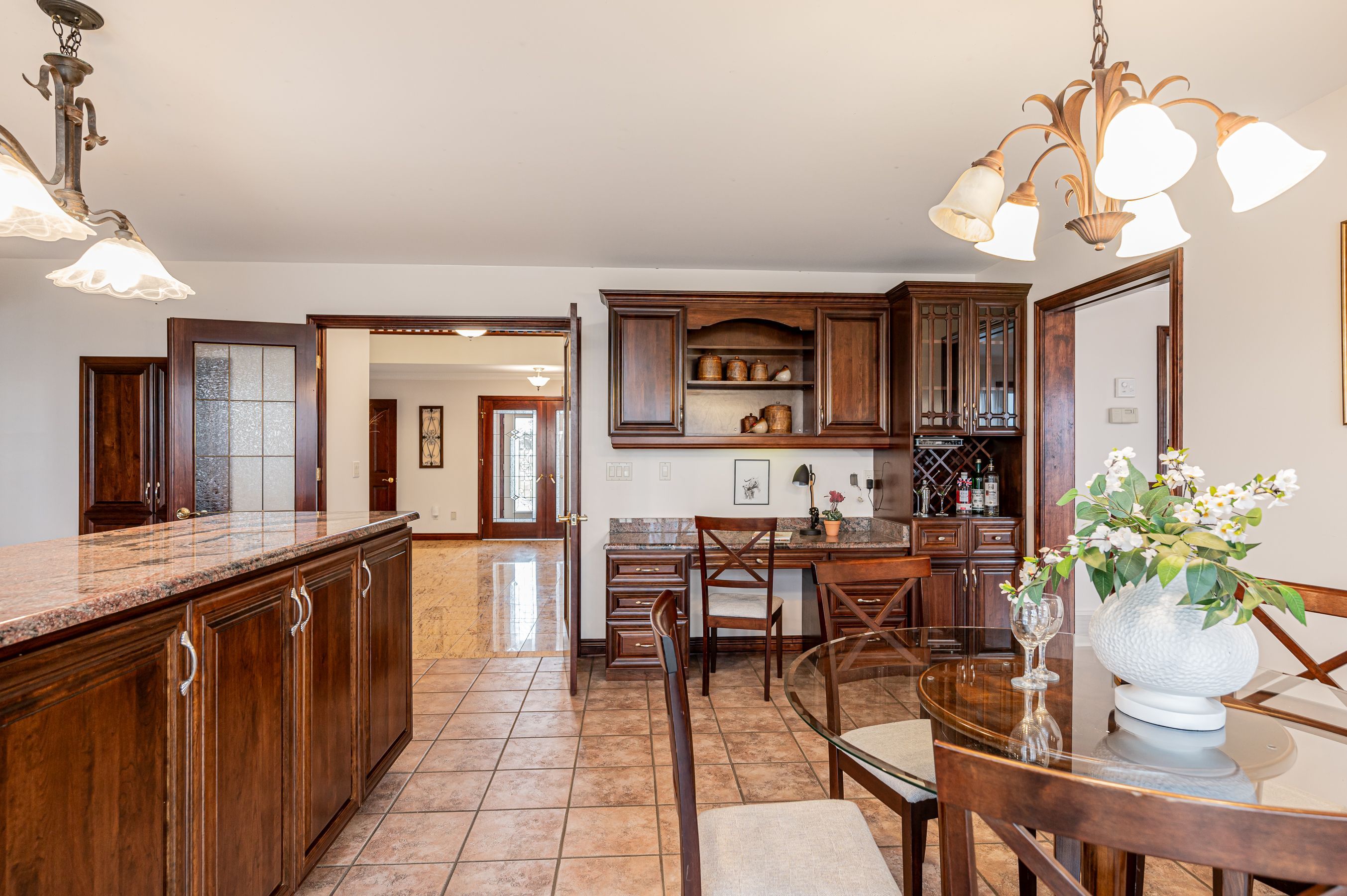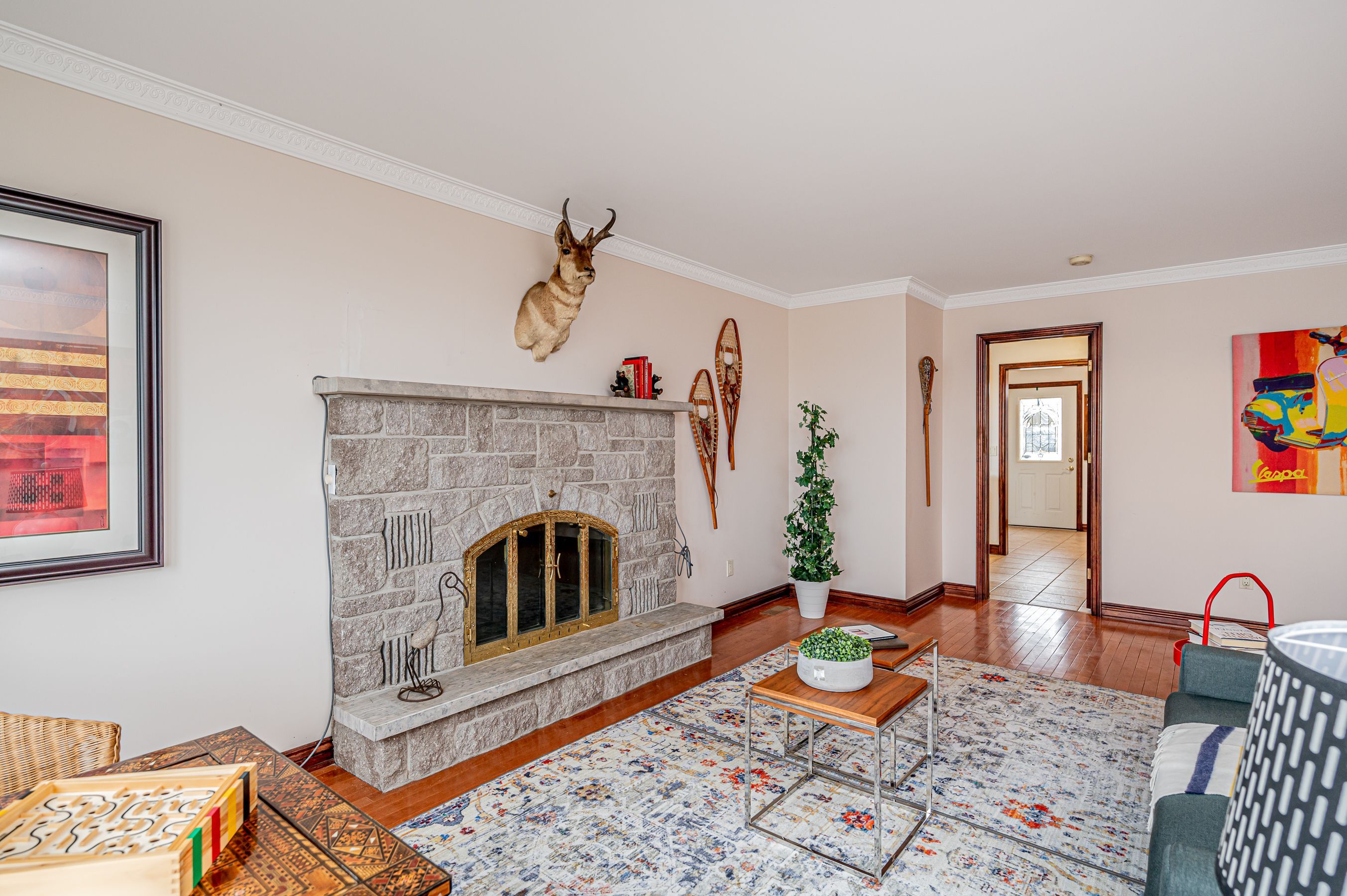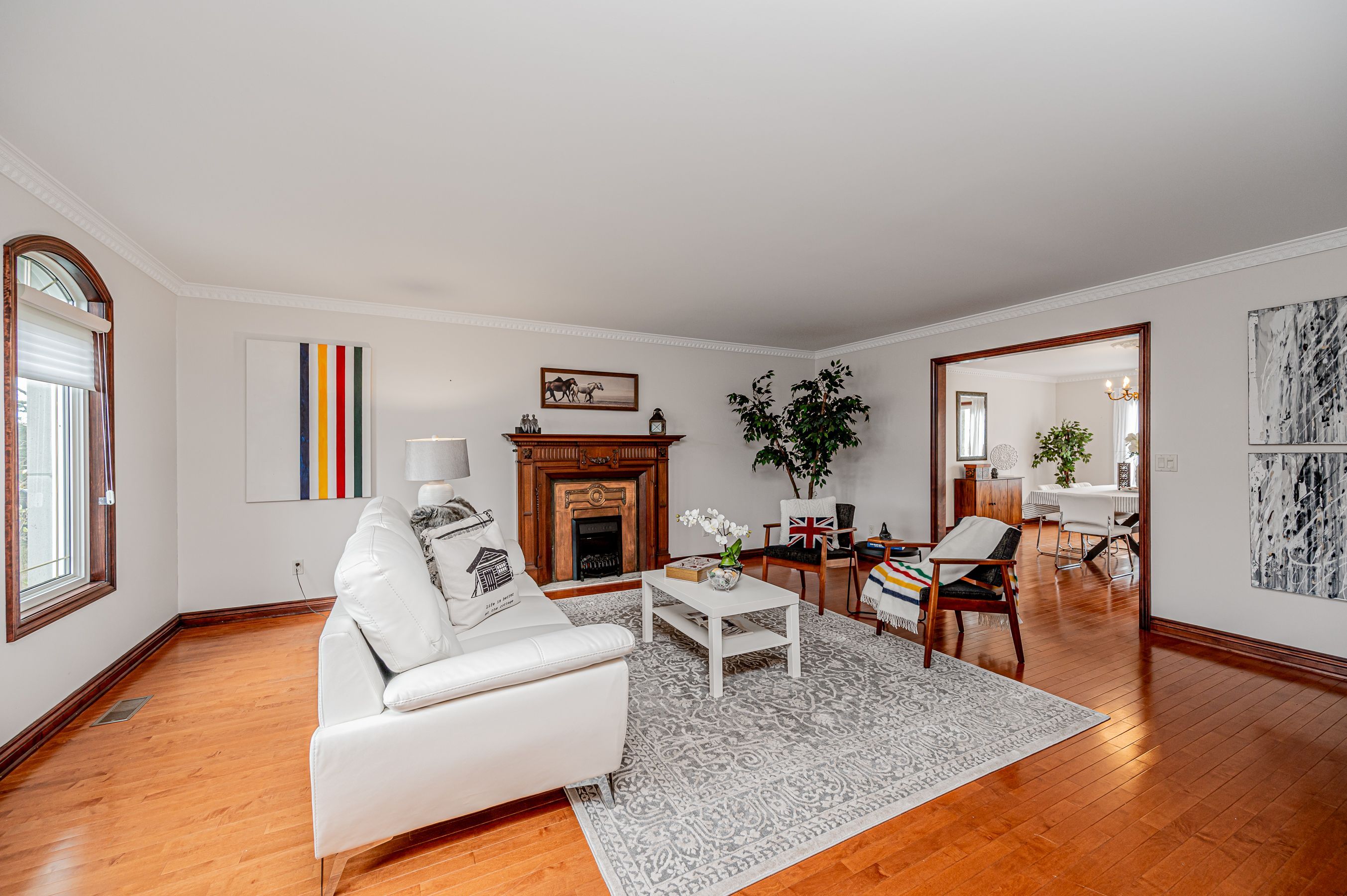 • Elegant living and dining spaces with two fireplaces and plenty of natural light.
