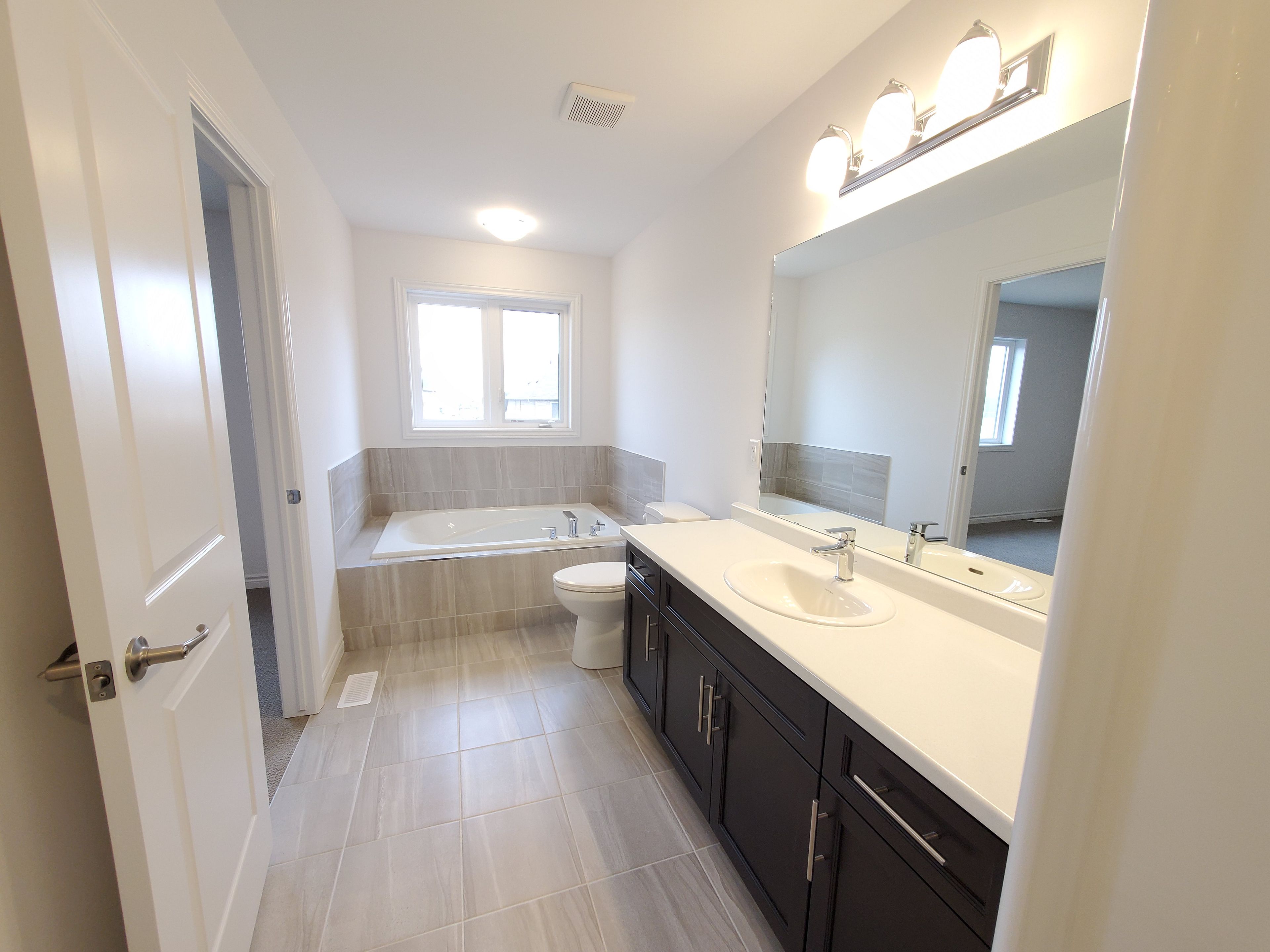 Beautiful 4 bed + 2. 5 bath (2 full bathrooms upstairs). 2 storey house over 2049 square feet and have an entry to double car garage. The main level features a large great room, kitchen & breakfast, hardwood on main. The second level showcases 4 generously sized bedrooms and laundry. The master bedroom with w/i closet & 4pc ensuite. This gorgeous property has numerous upgrades. Surrounded by parks, trails and popular community of west brant.
