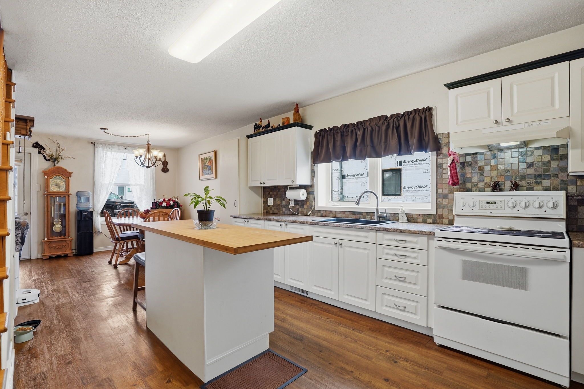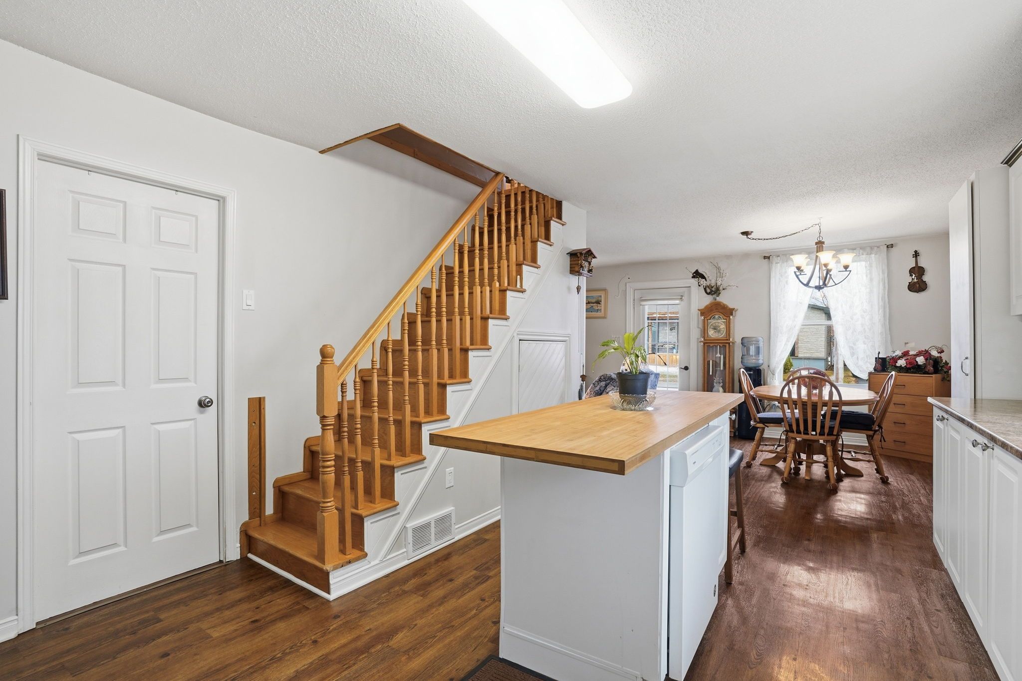 • Bright main floor with living room, dining area, and functional kitchen.