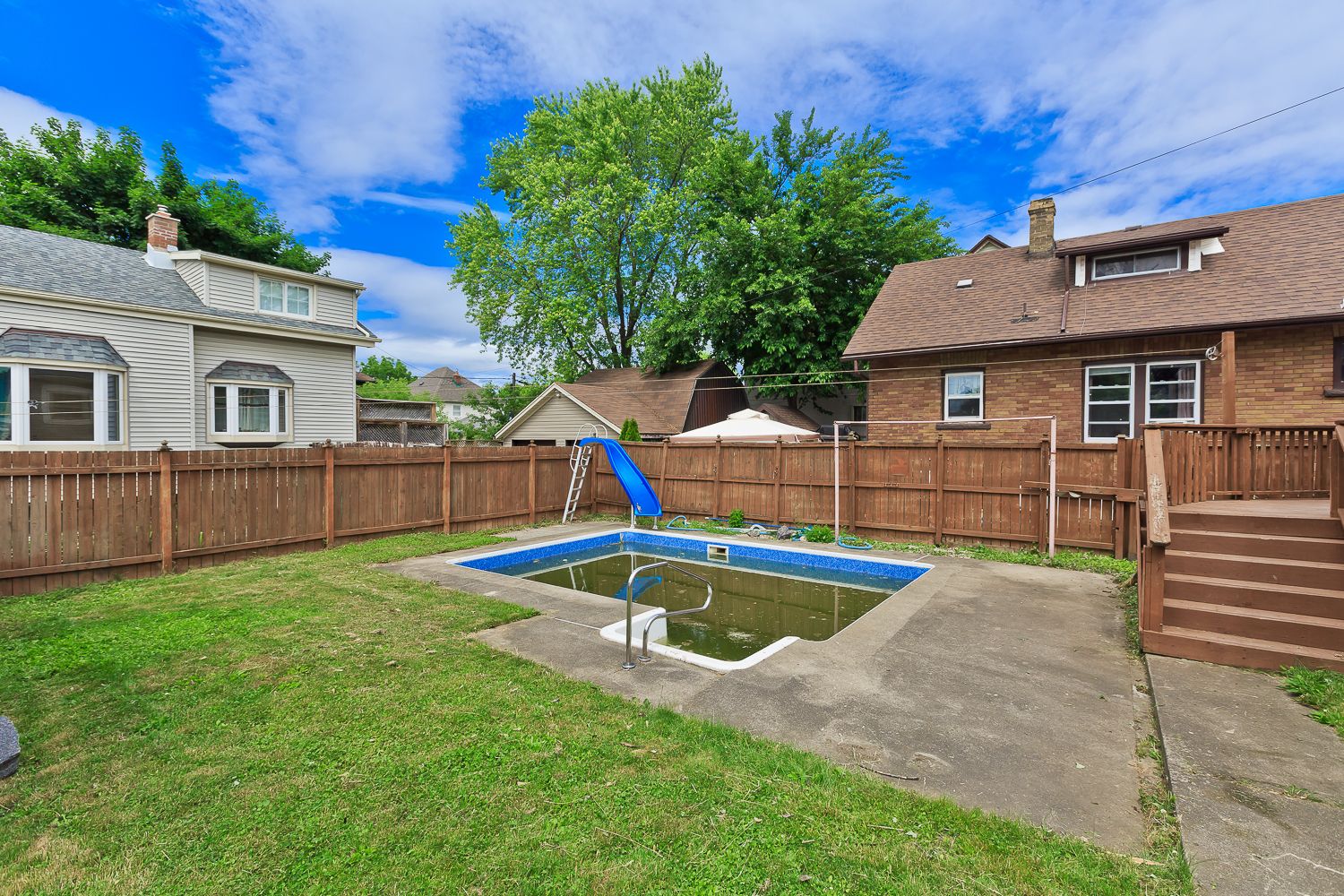• Large deck, new pool features, and ample parking for convenience.