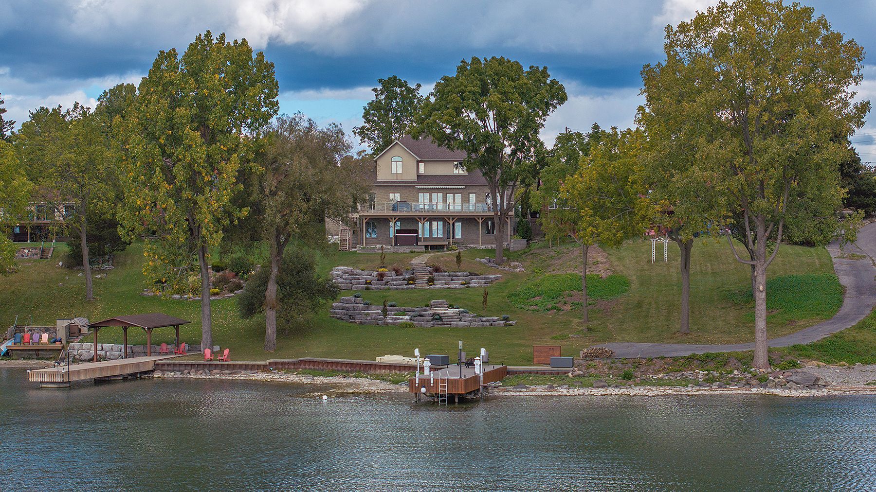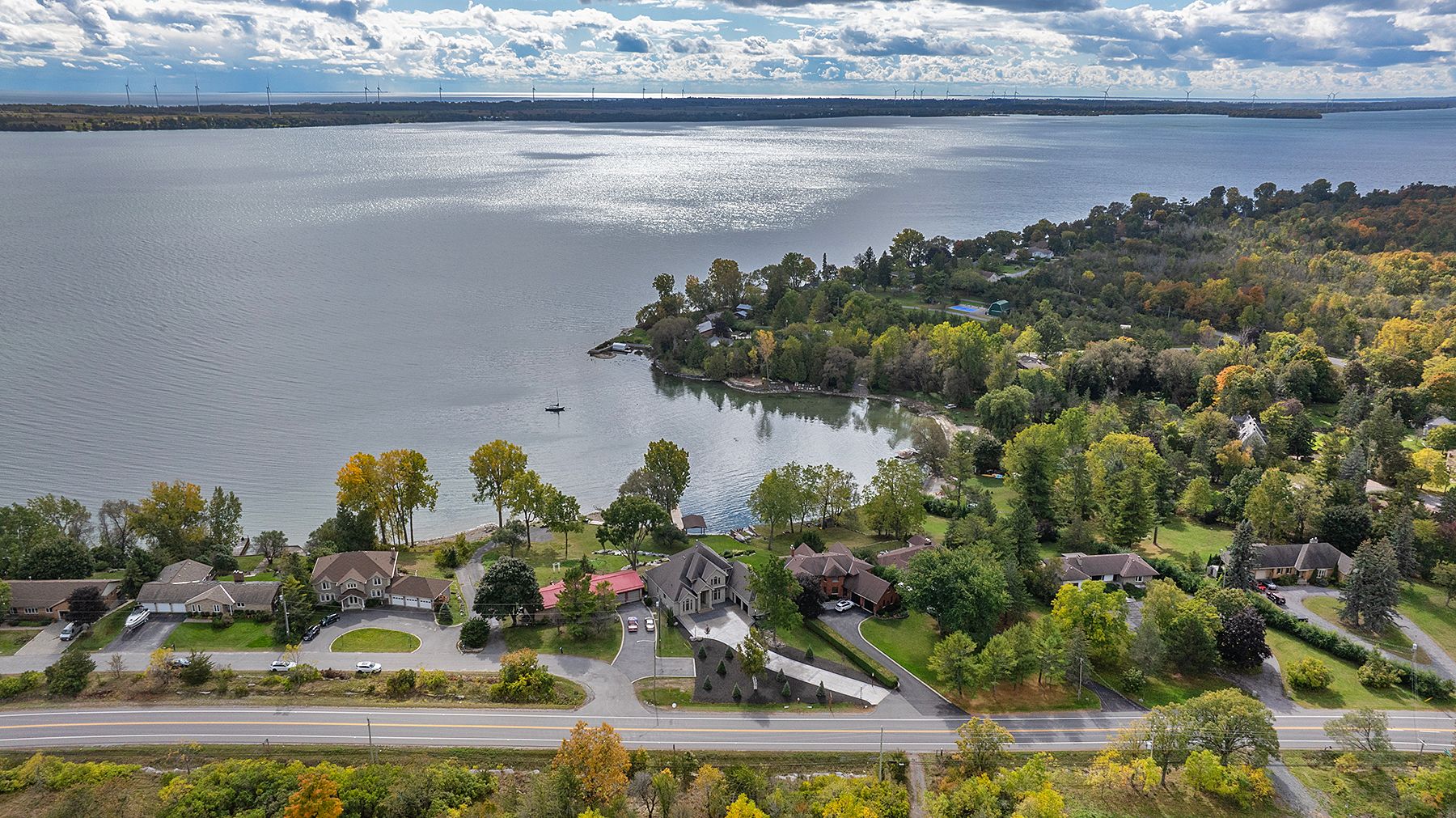 Experience unrivaled luxury on the shores of lake ontario. Welcome to your private lakeside retreat - a breathtaking 5,778 sq. Ft. Masterpiece built by garofalo homes, designed to capture panoramic water views and timeless elegance at every turn. Step through the grand foyer with its 18-foot ceilings and immediately feel the sophistication and warmth of this meticulously cared-for home. The main level offers a spacious great room with sweeping lake views, a primary bedroom suite with an ensuite bath, a chef's kitchen, and beautiful hardwood flooring throughout. Ascend the elegant open staircase to find three additional bedrooms, each with generous closet space, and a serene guest bath. The fully finished lower level is ideal for entertaining or relaxation, featuring two more bedrooms, a full bathroom, a private gym, and a heated patio with a 14-foot swim spa-perfect for unwinding while taking in the stunning sunsets. The backyard oasis is a true showstopper, boasting professionally designed landscaping that leads to the private 50' x 12' concrete dock with lighting, power, 2 sea-doo lifts, and a 7,000-lb boat lift-expertly crafted by kehoe marine for the ultimate waterfront lifestyle. Recent upgrades elevate the home even further: a patterned concrete driveway, smart lutron lighting system, infrared camera system, 2 new carrier furnaces, cold-climate heat pumps, and nest thermostats. The heated 3-car garage includes a gas heater and an external gas generator for peace of mind year-round. Perfectly situated near amherstview, parrotts bay conservation area, and just minutes from downtown kingston's shops and restaurants, this home blends serenity with convenience. With its generous layout and unmatched location, it's an exceptional opportunity for a luxury residence, bed & breakfast, or even a professional home office. Take the first step toward your dream waterfront lifestyle - schedule your private tour and experience lake ontario living at its finest.