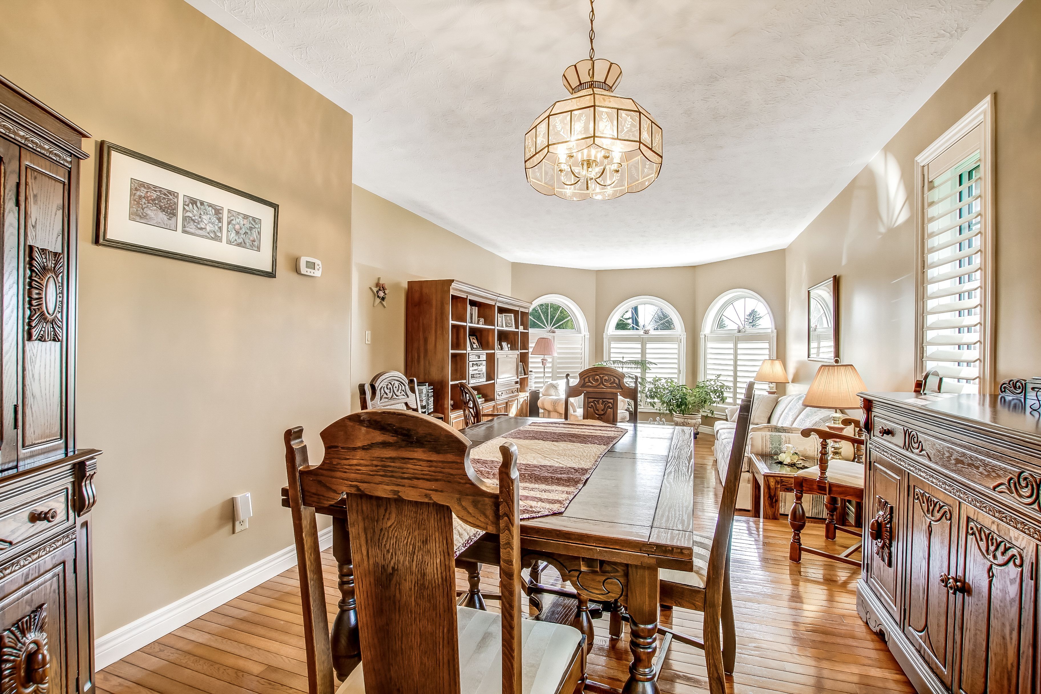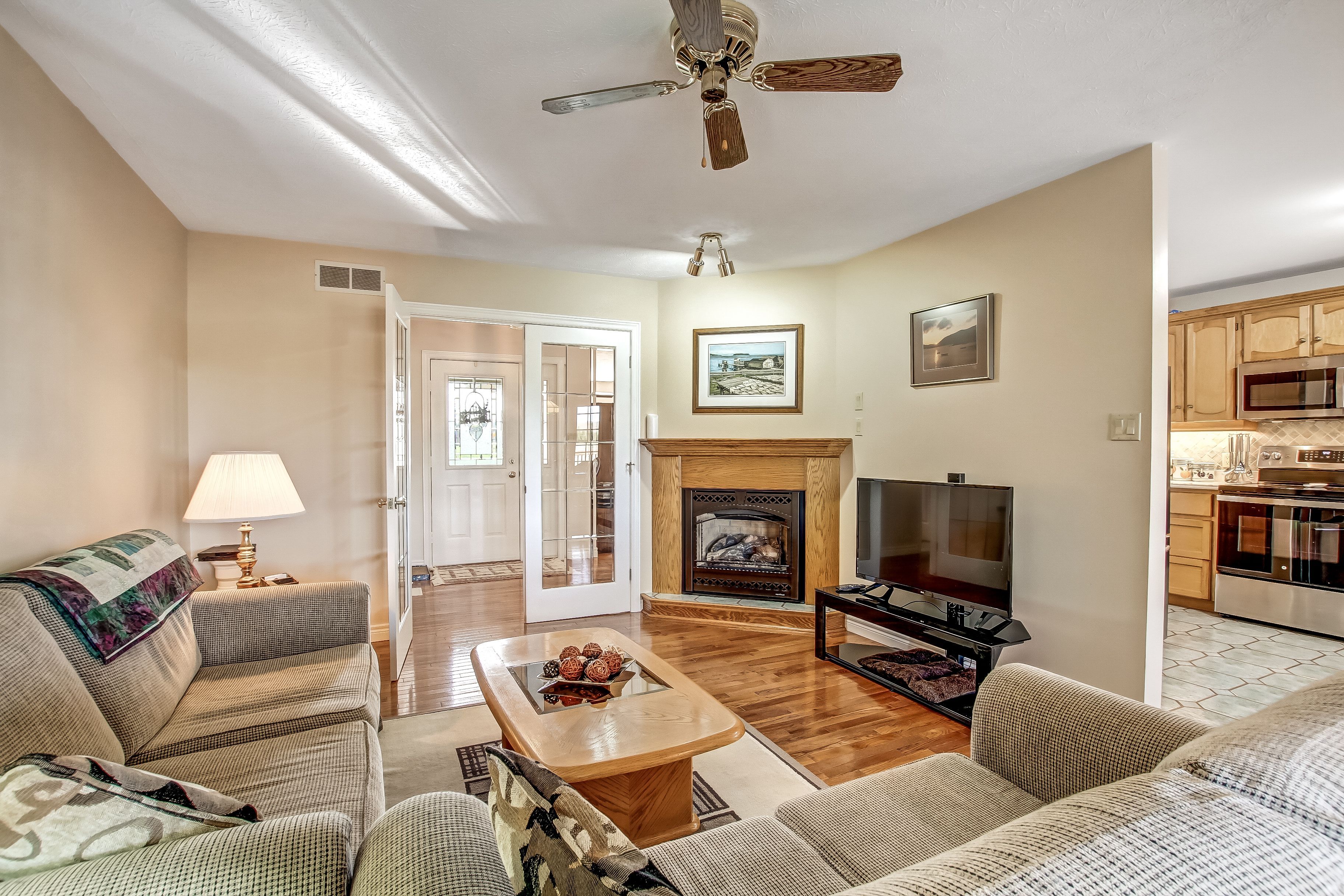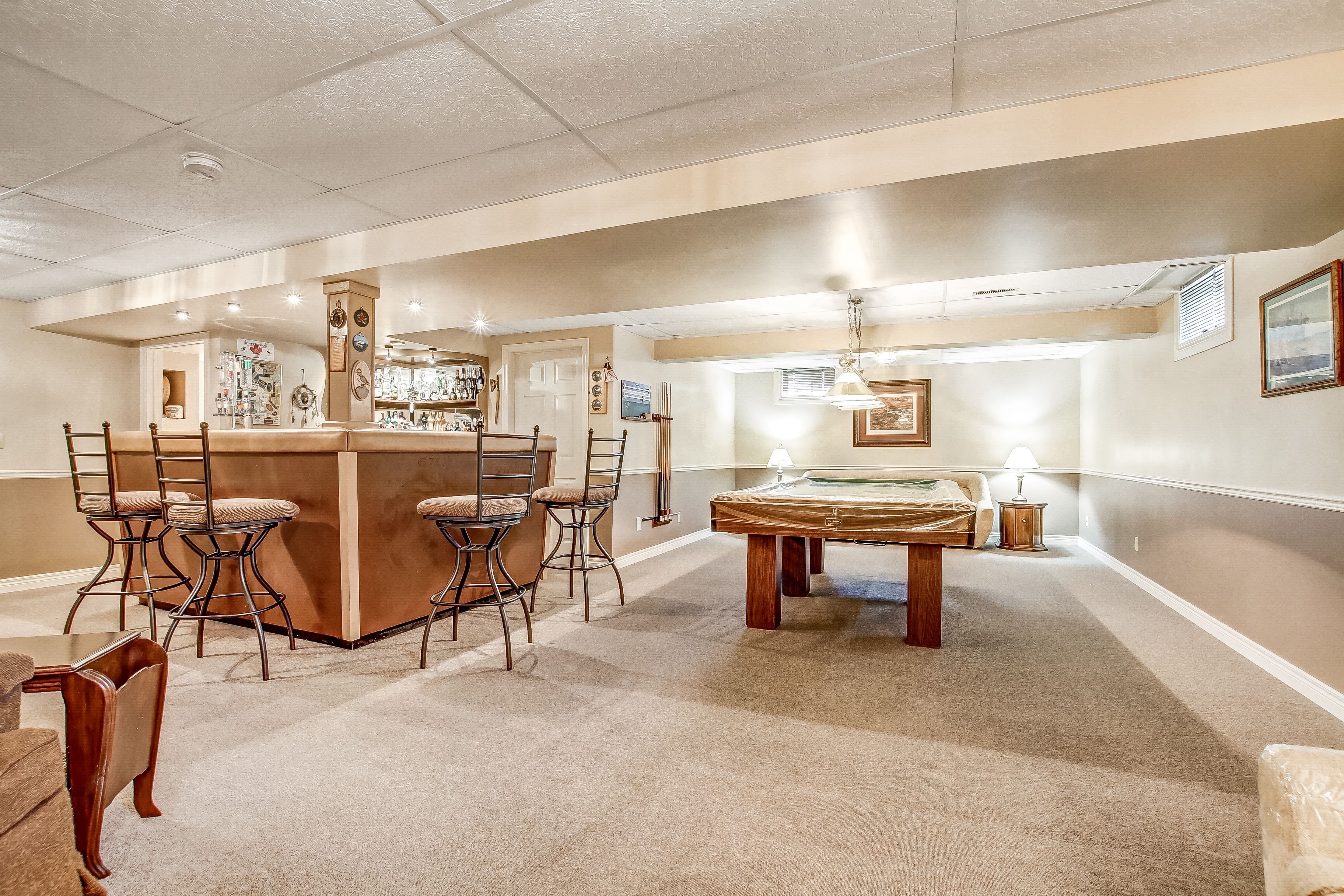 This unique custom built home is ready for a new family. Hardwood floors in the main living area and ceramic in the kitchen. Beautiful maple cabinetry. 3 spacious bedrooms and a main floor family room with a gas fireplace. Beveled glass french doors for added privacy in the family room. Corion countertops in the kitchen and baths. 3 full baths with a beautiful new shower in the ensuite. Most of the lower level is finished. It features a built in bar with a wet sink. The pool table is optional. Two car garage with opener & remote. Wait until you see the yard! Patio doors to a large deck overlooking a farm field and a view that seems to run forever.