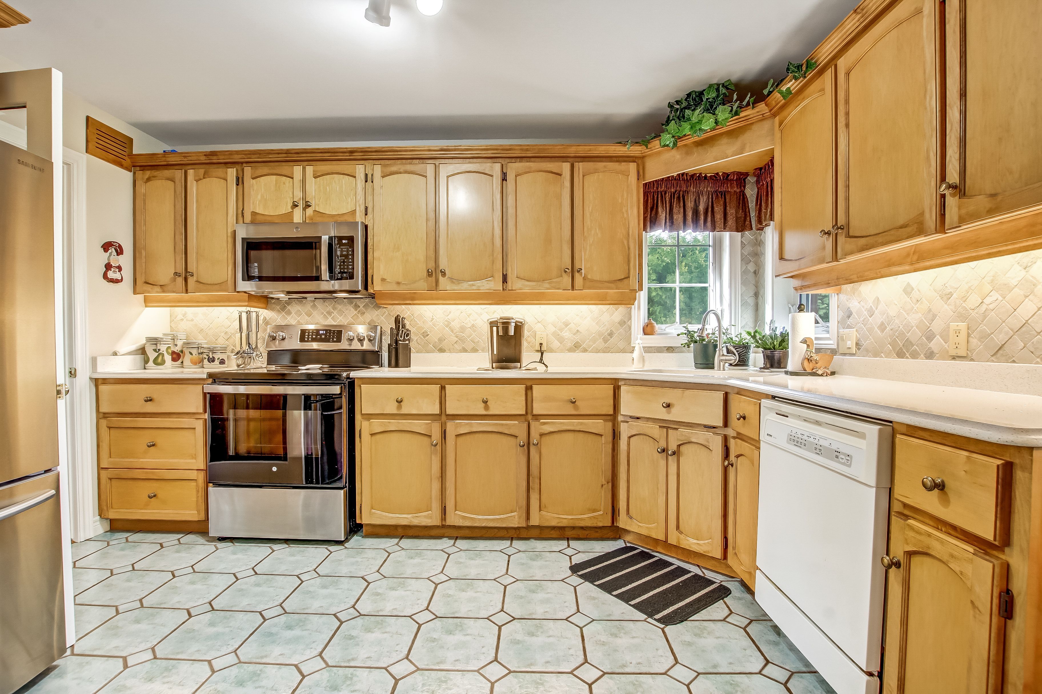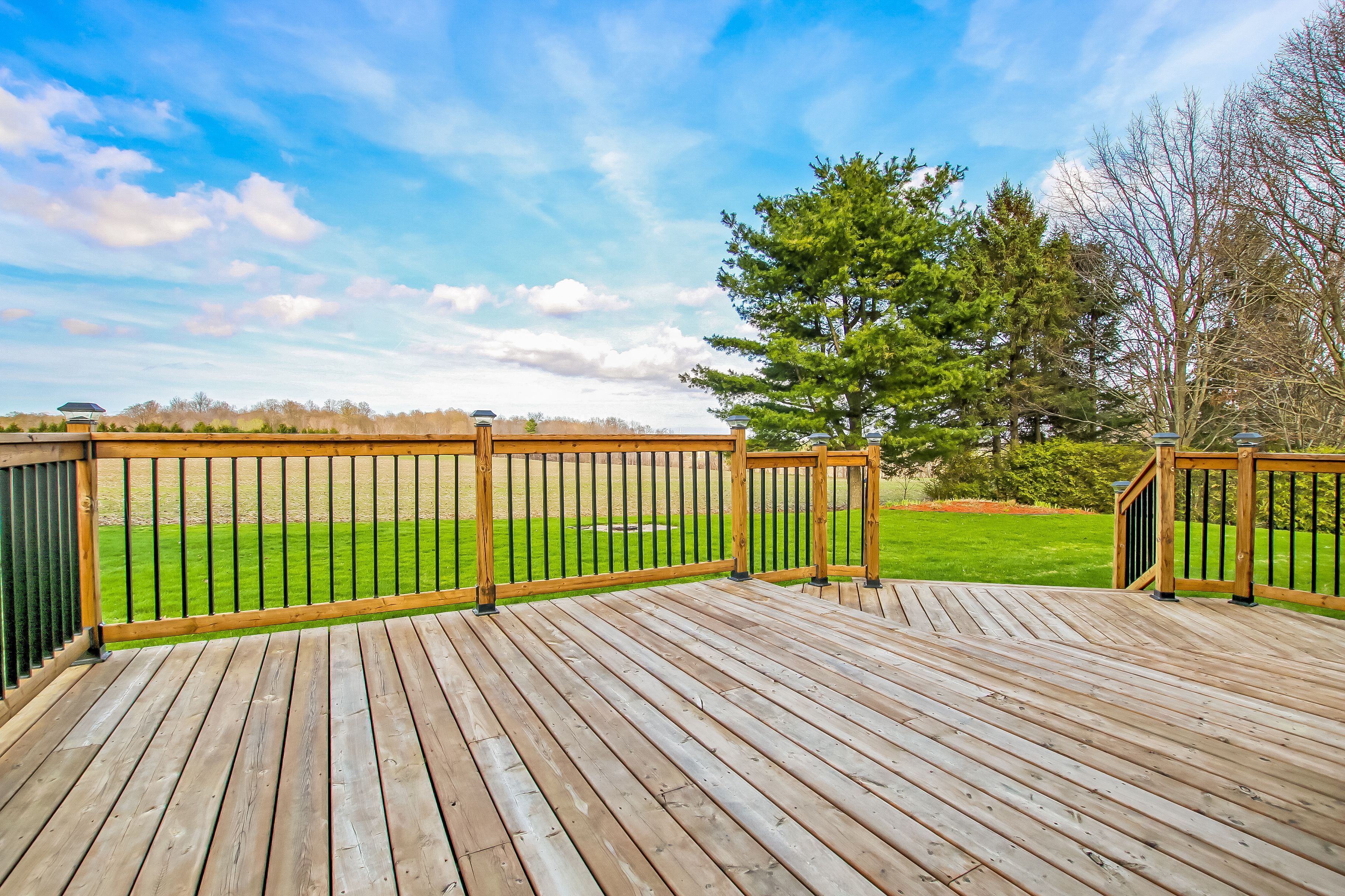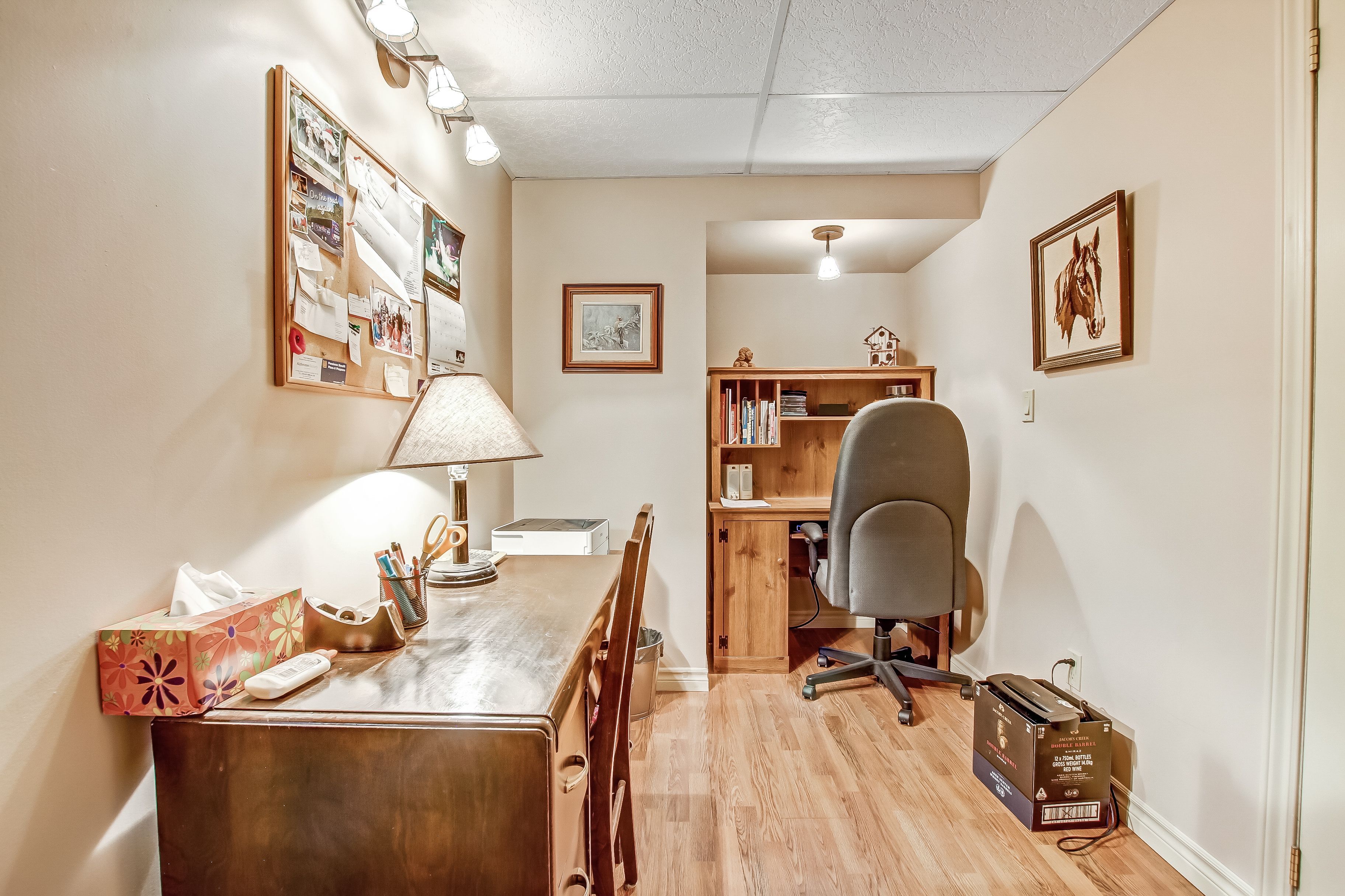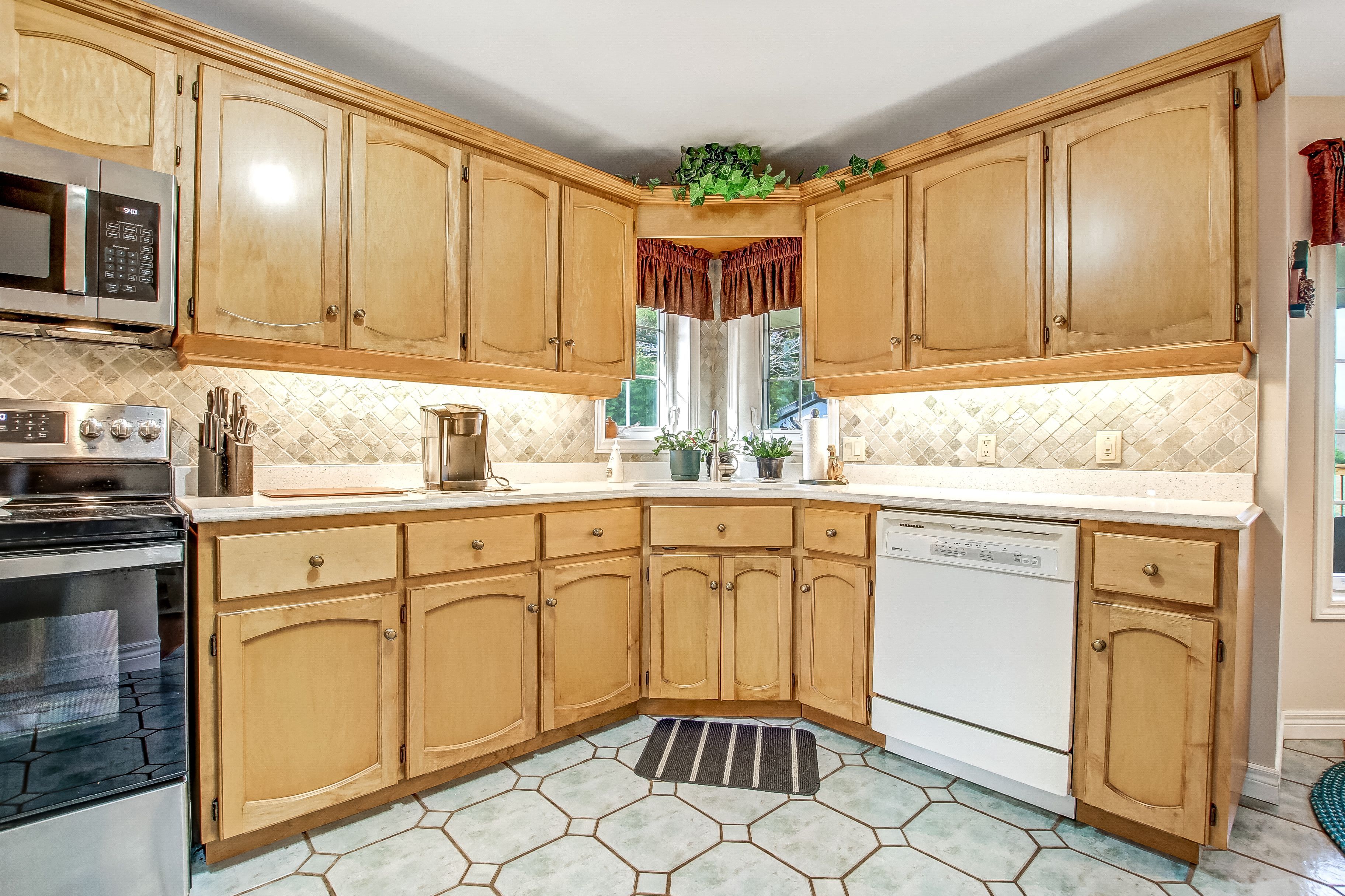 This unique custom built home is ready for a new family. Hardwood floors in the main living area and ceramic in the kitchen. Beautiful maple cabinetry. 3 spacious bedrooms and a main floor family room with a gas fireplace. Beveled glass french doors for added privacy in the family room. Corion countertops in the kitchen and baths. 3 full baths with a beautiful new shower in the ensuite. Most of the lower level is finished. It features a built in bar with a wet sink. The pool table is optional. Two car garage with opener & remote. Wait until you see the yard! Patio doors to a large deck overlooking a farm field and a view that seems to run forever.