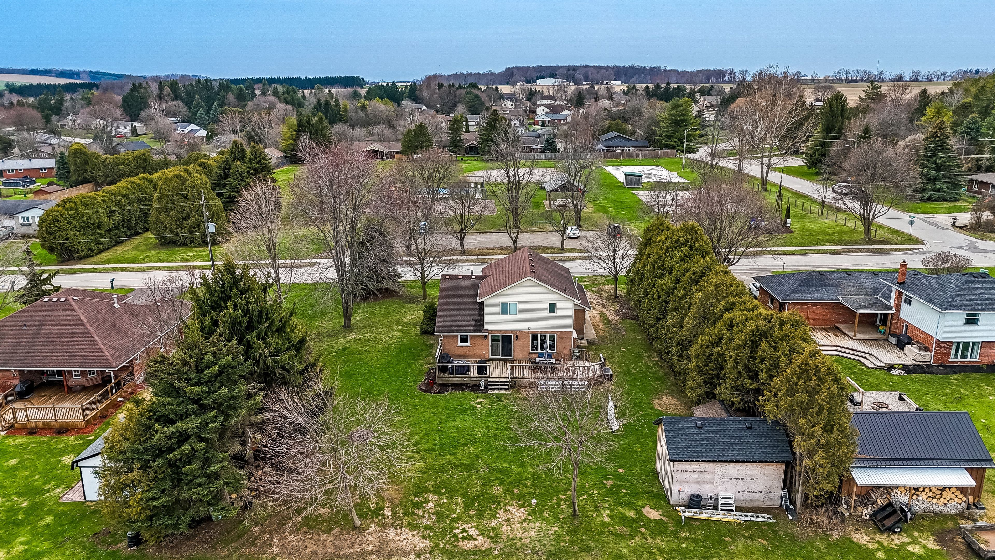Superb village property located south of 401 and city of woodstock. This home is located directly across from tom williams park which features children's playgrounds, a ball diamond, gazebo and pickleball courts. The rear of the house has a large triple deck with tremendous country views including deer and wildlife woods and distance view of the city. The house is a 3+1 & 3 bath home with many recent updates. Main floor vinyl plank flooring, neutral decor, quartz kitchen counters, new lighting, main floor family room with gas fireplace and patio doors to the large pressure treated deck. Three upstairs bedrooms include three-piece ensuite bath and a four-piece bath. Lower level is partly finished with an extra bedroom and recreation room, plus an extra area ready to finish as a family room. Gas fireplace has been installed. Other features of property is a two-car garage used as a man cave with gas heater, invisible fencing, new 12x19 shed with loft, large front porch to relax and watch the kids playing in the park. Sweaburg is centrally located for easy commute to tillsonburg, ingersoll, london, woodstock with 401/403 nearby. Woodstock hospitals area, shopping all within 5 minutes. Make this home and location your dream!
