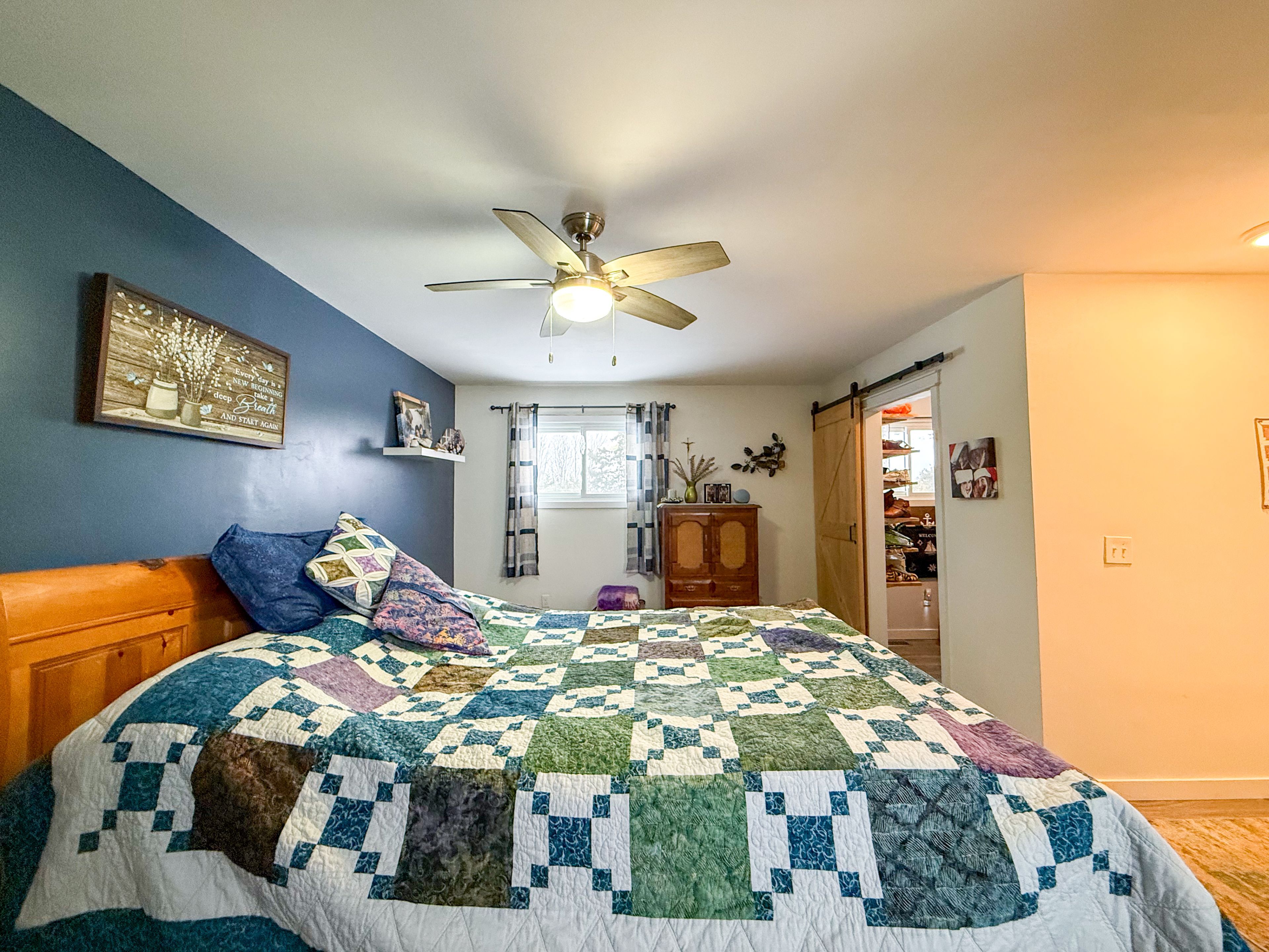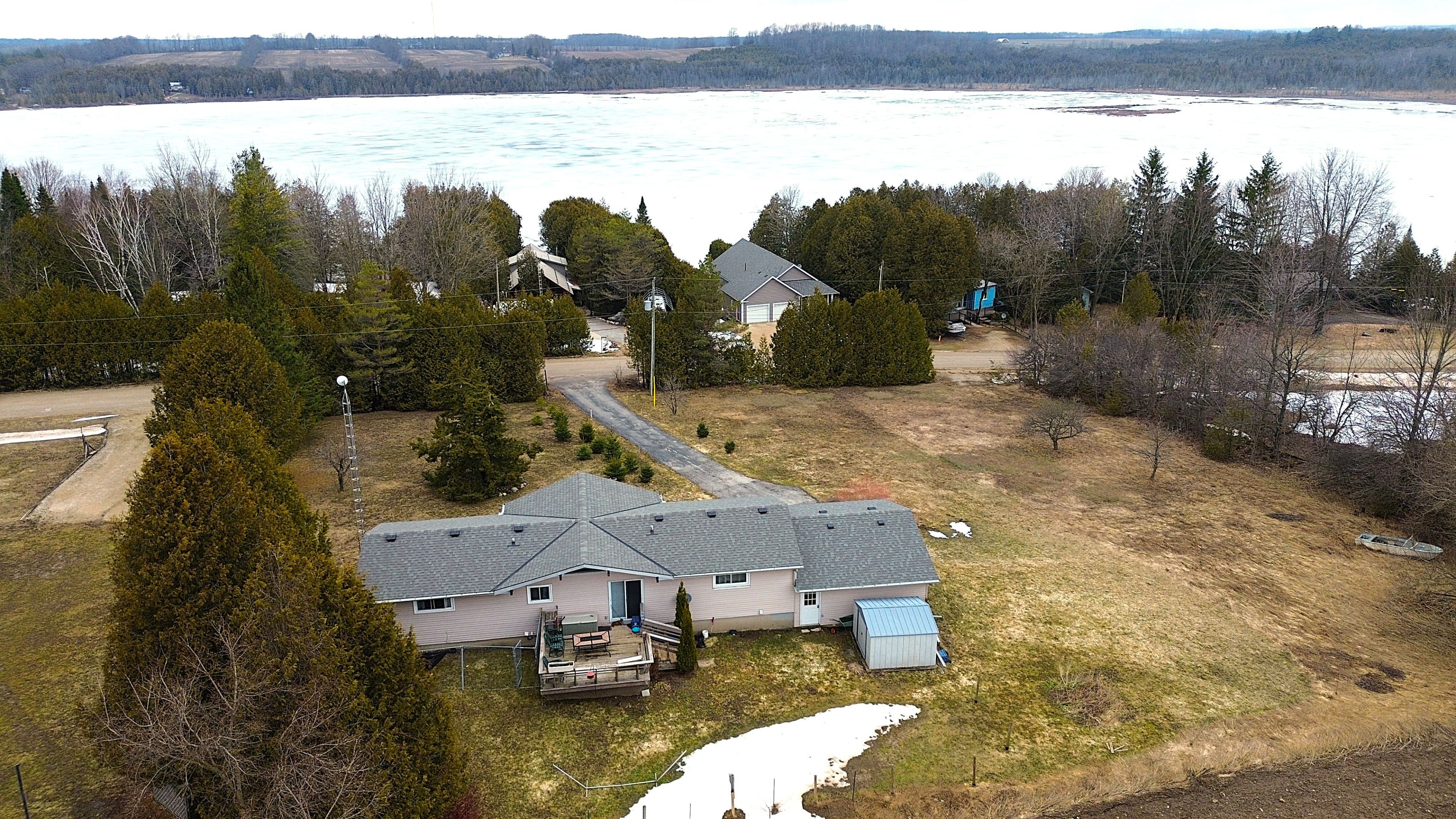 Set high on a gentle rise and surrounded by mature trees, this private retreat offers serene water views of townsend lake and a peaceful country atmosphere. Thoughtfully laid out, this move-in-ready 3-bedroom, 2-bath home is ideal as a full-time residence or a four-season getaway. The bright, open-concept main level is enhanced by vaulted ceilings and expansive windows that frame the lake beyond. A beautifully designed kitchen anchors the space, featuring stainless steel appliances, a spacious island, and a distinctive etched-glass pantry door. Step out to the private rear deck to enjoy quiet mornings overlooking the open land, or relax on the front deck while taking in the lake views, both ideal spaces for entertaining. The massive primary bedroom includes a walk-in closet and a 4-piece ensuite, while two additional bedrooms share a well-appointed main bath. The walk-out lower level provides direct access to the spacious garage and offers a generous family room, bonus room, laundry facilities, and ample storage. An asphalt driveway leads to the home, offering easy access and plenty of parking. With privacy created by surrounding trees and natural landscaping, this property delivers a true sense of seclusion while remaining close to recreation. Just a short walk to public access at townsend lake and a short drive to bell's lake, with nearby golf courses, atv and snowmobile trails, and cross-country skiing, this is an exceptional opportunity to enjoy relaxed lakeside living year-round.