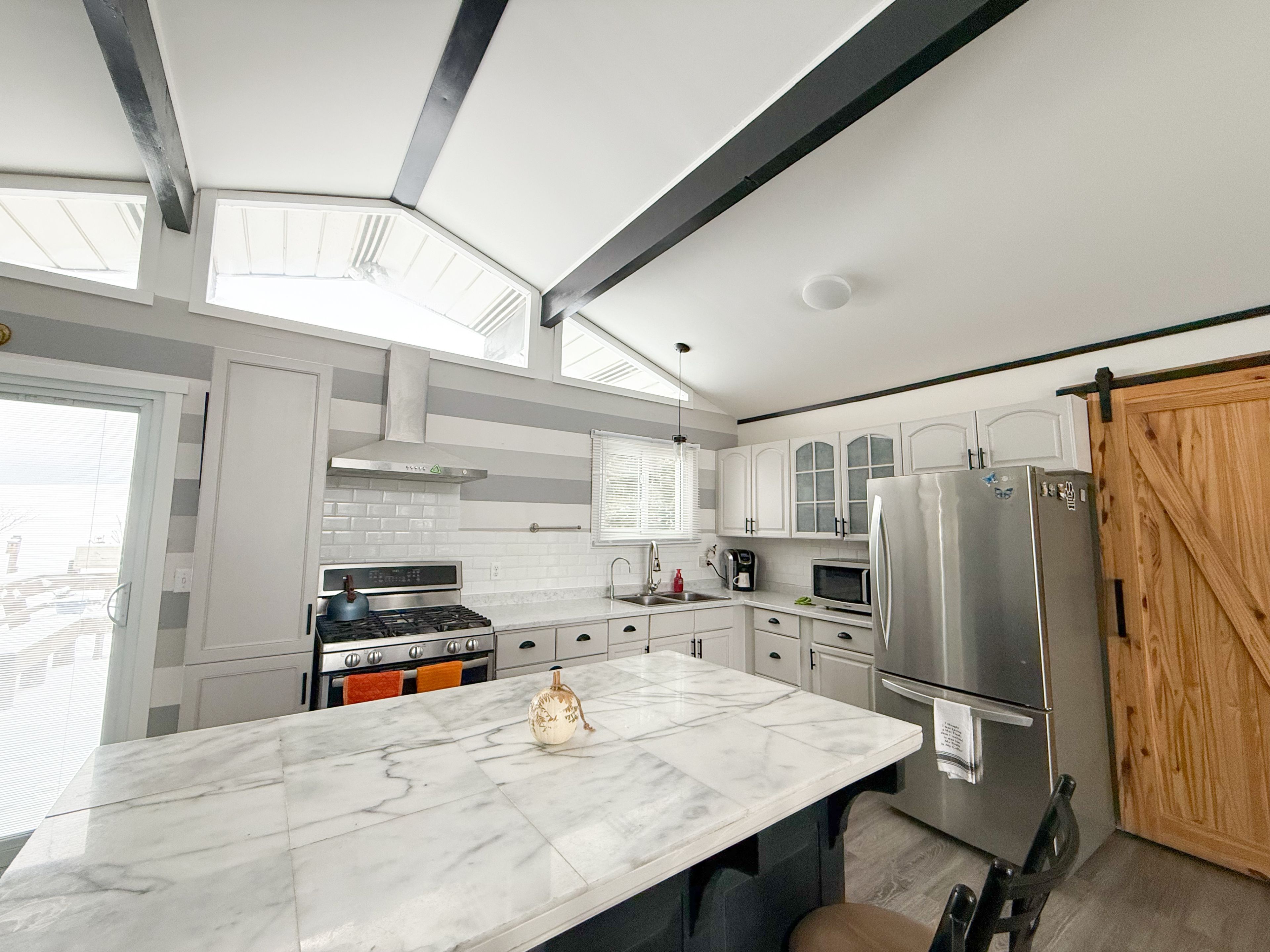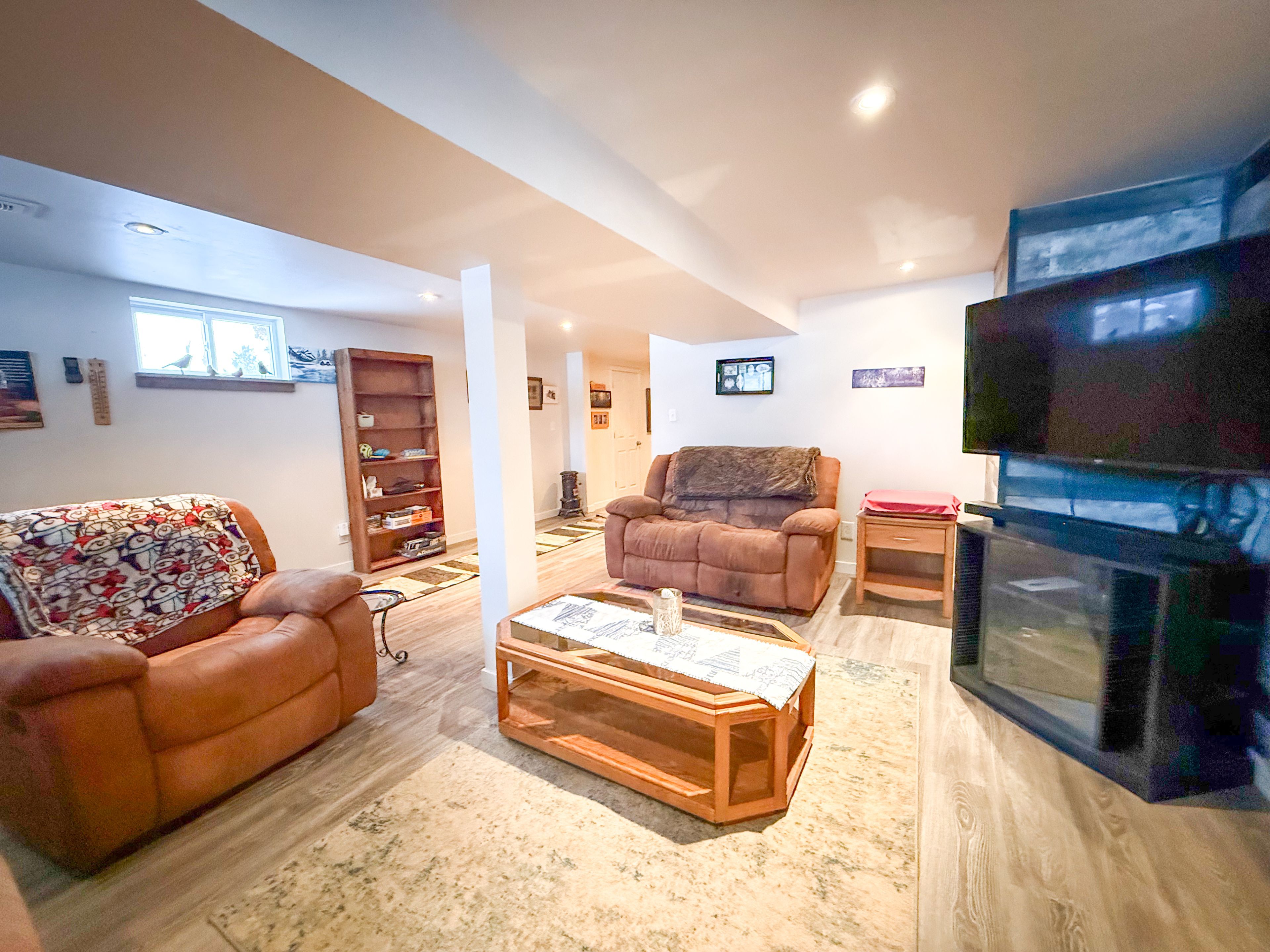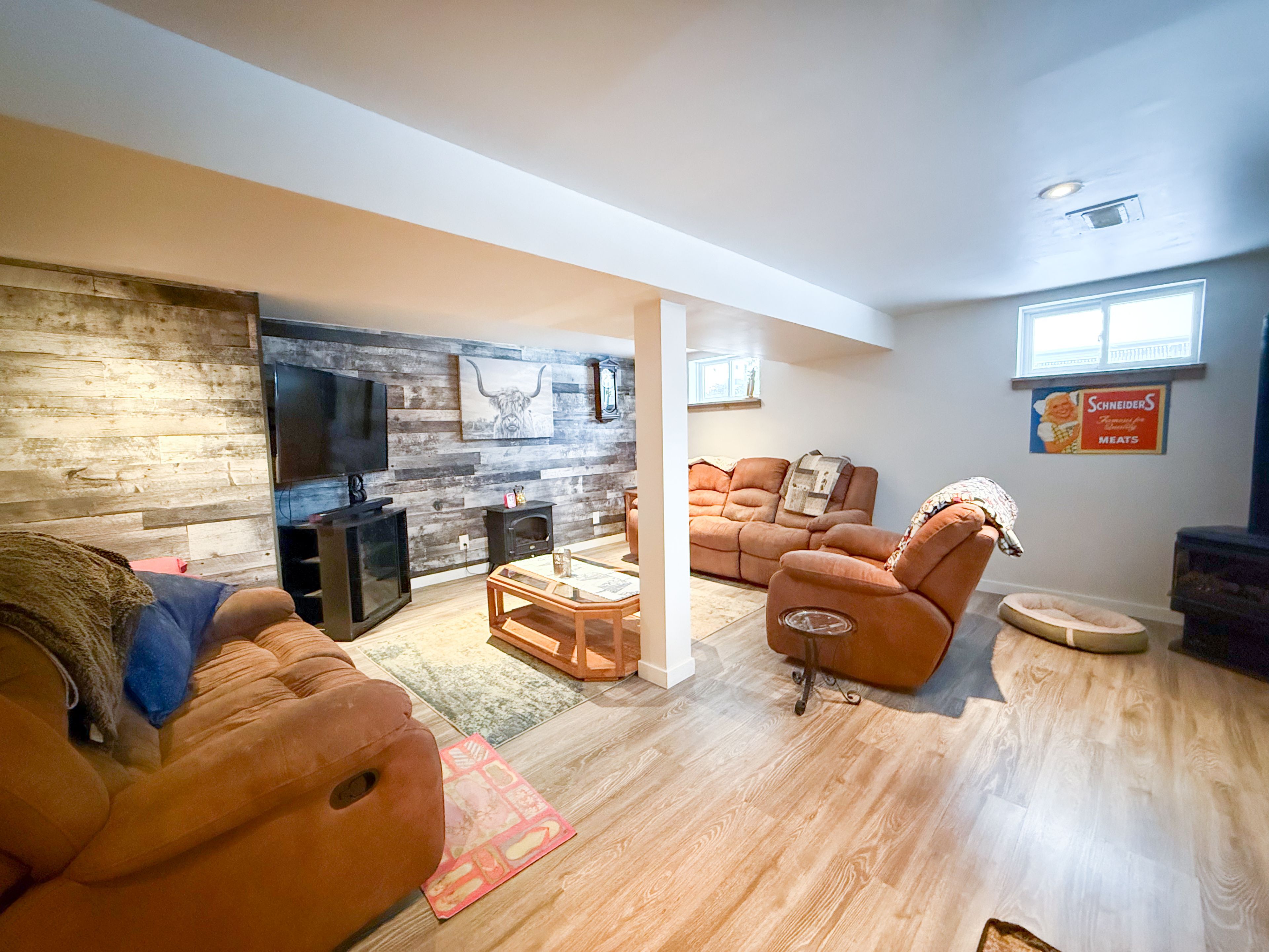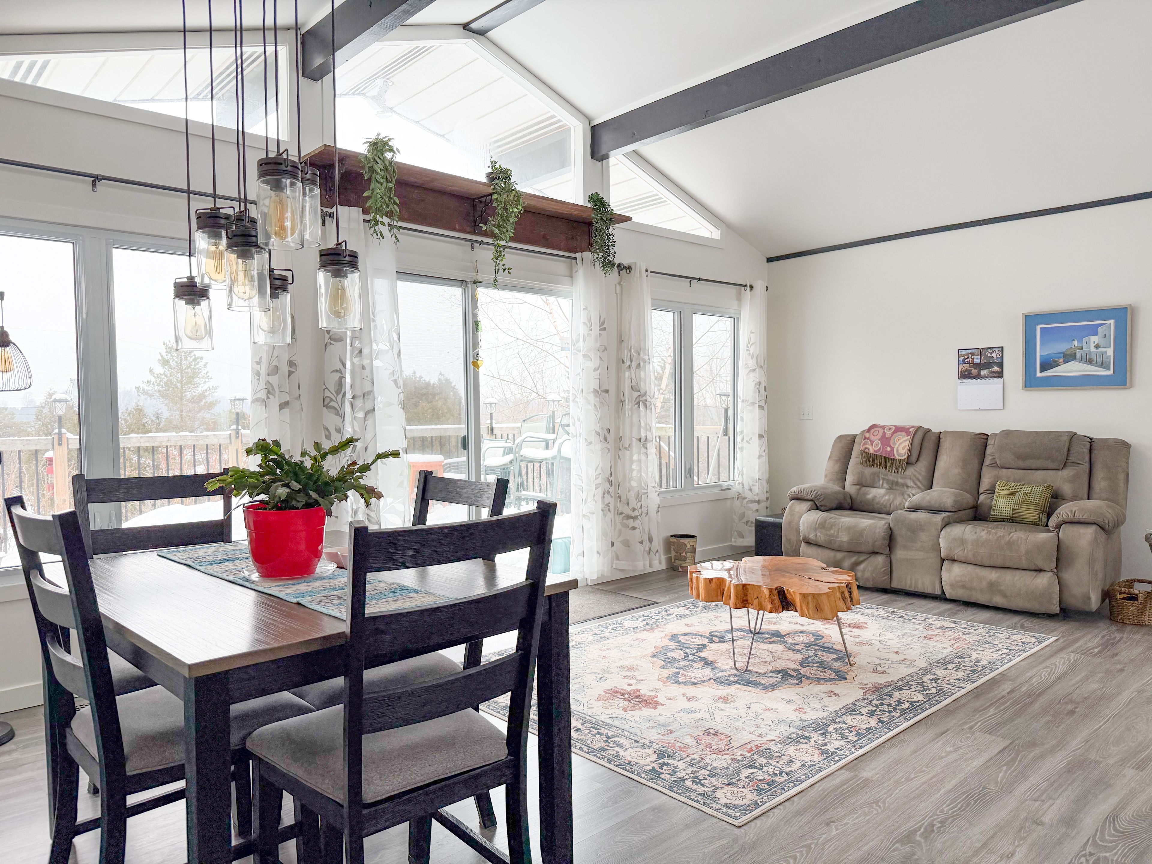 • Bright open-concept main level with vaulted ceilings and large windows.