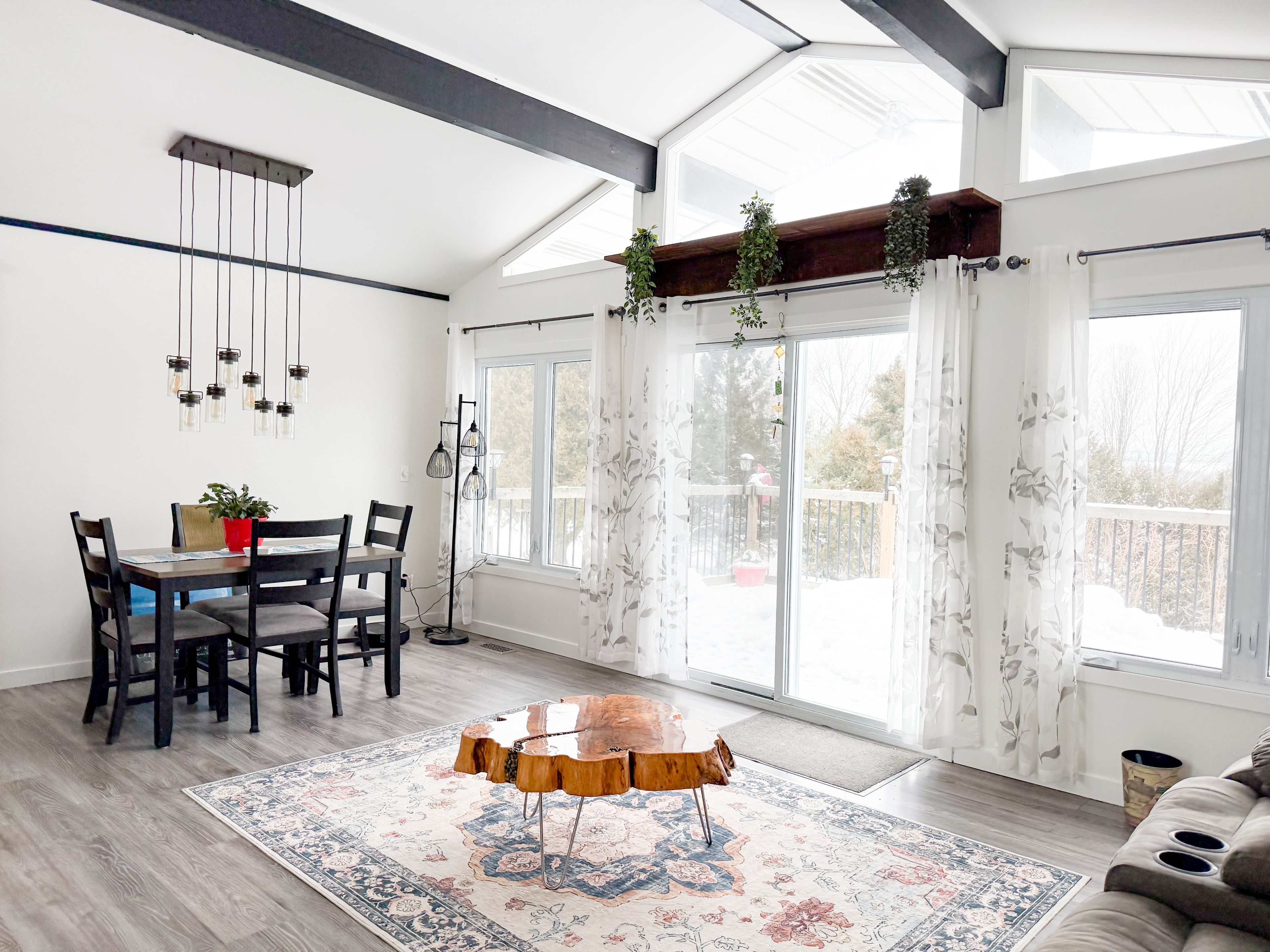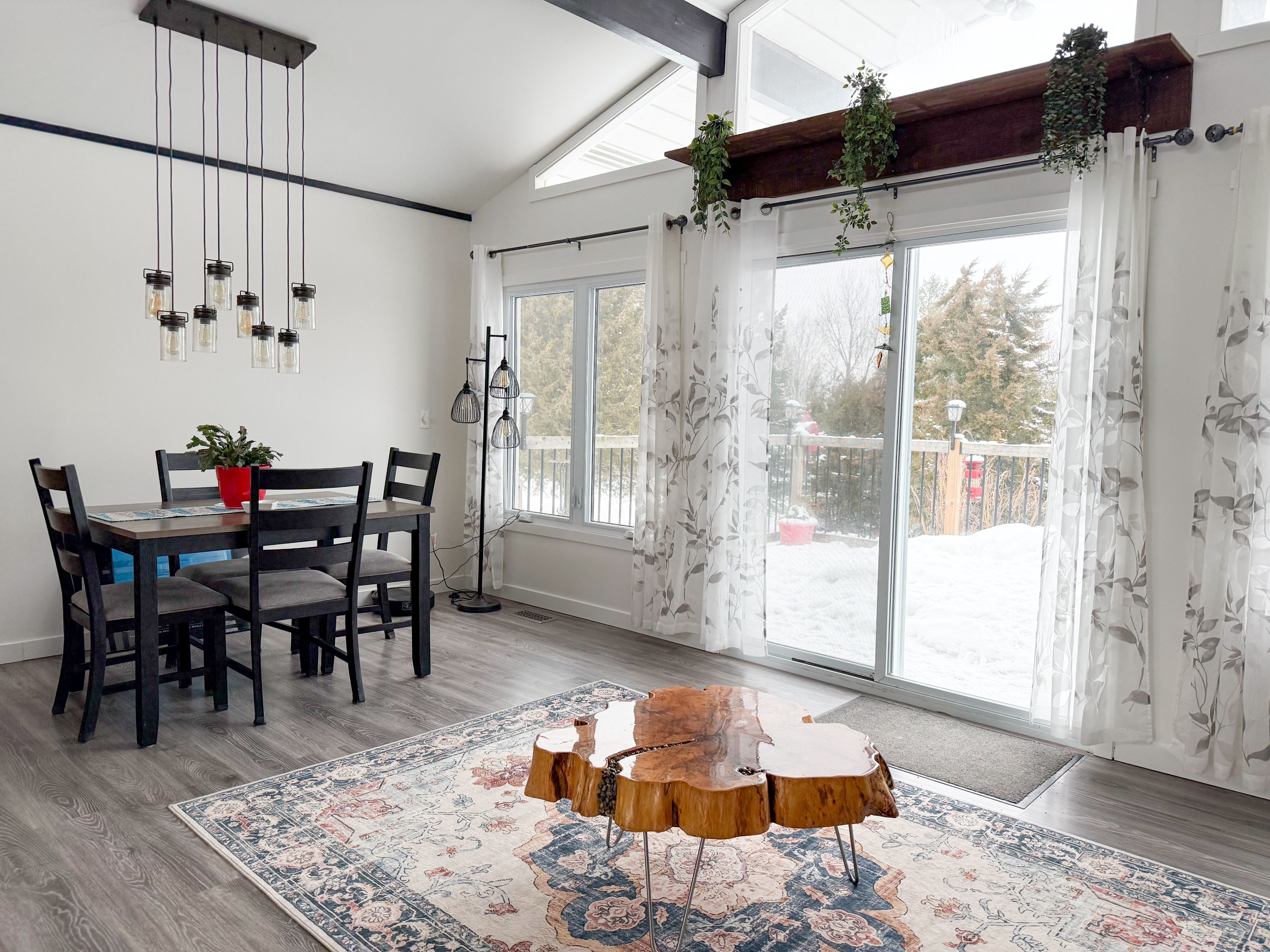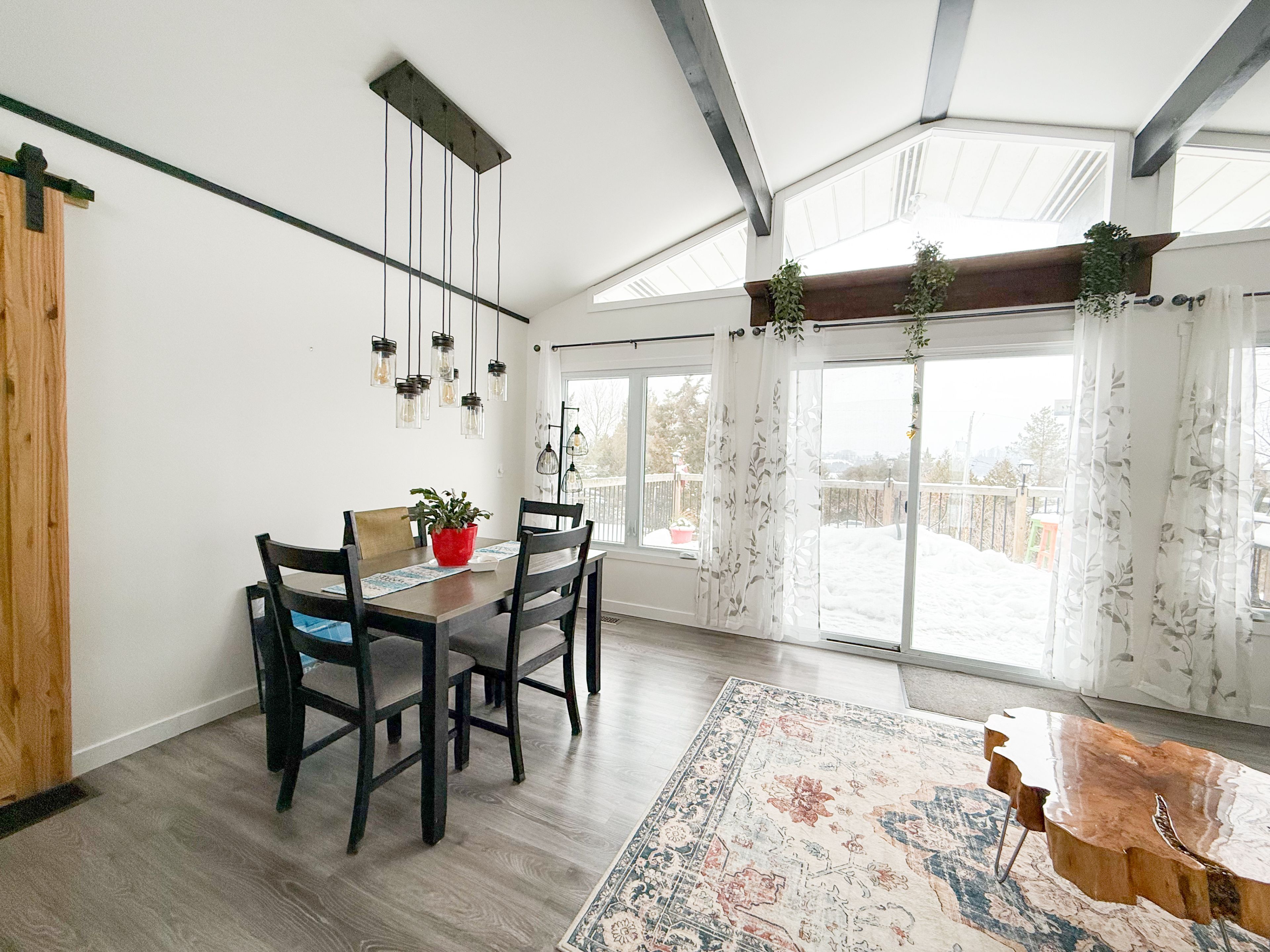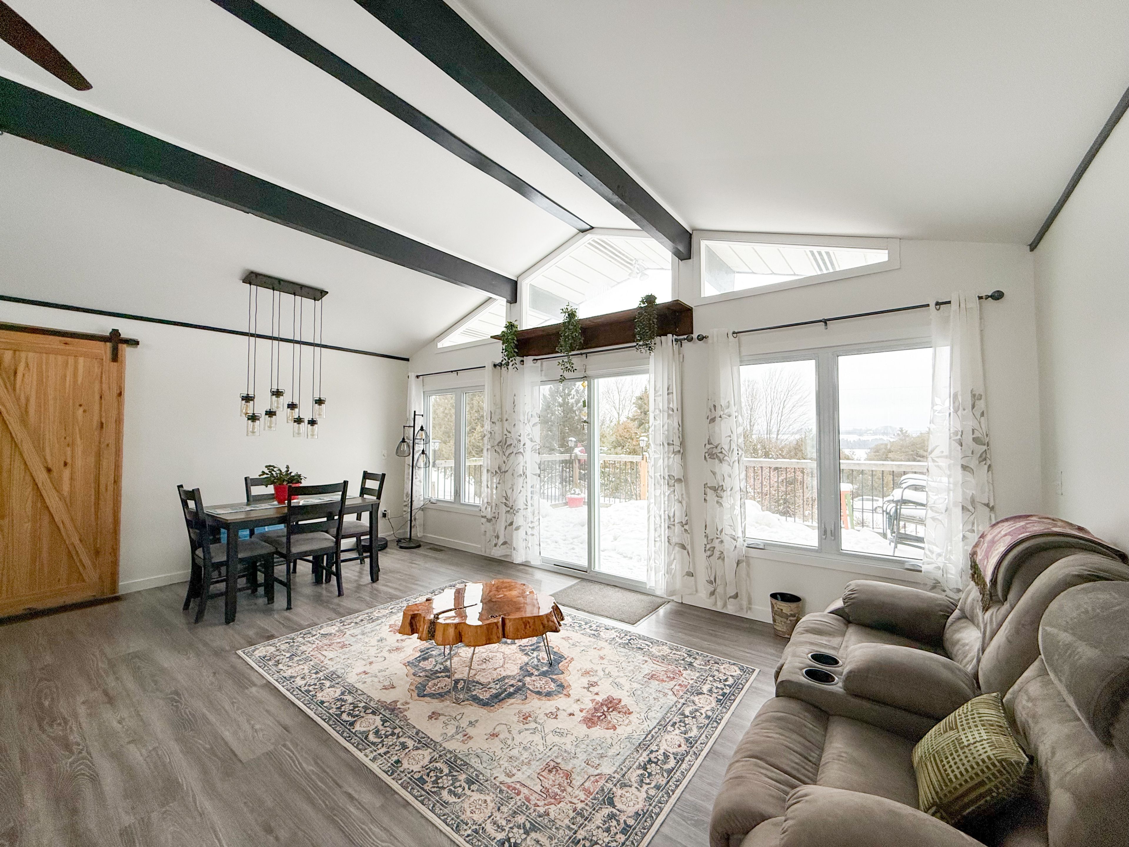 • Bright open-concept main level with vaulted ceilings and lake-framed windows.