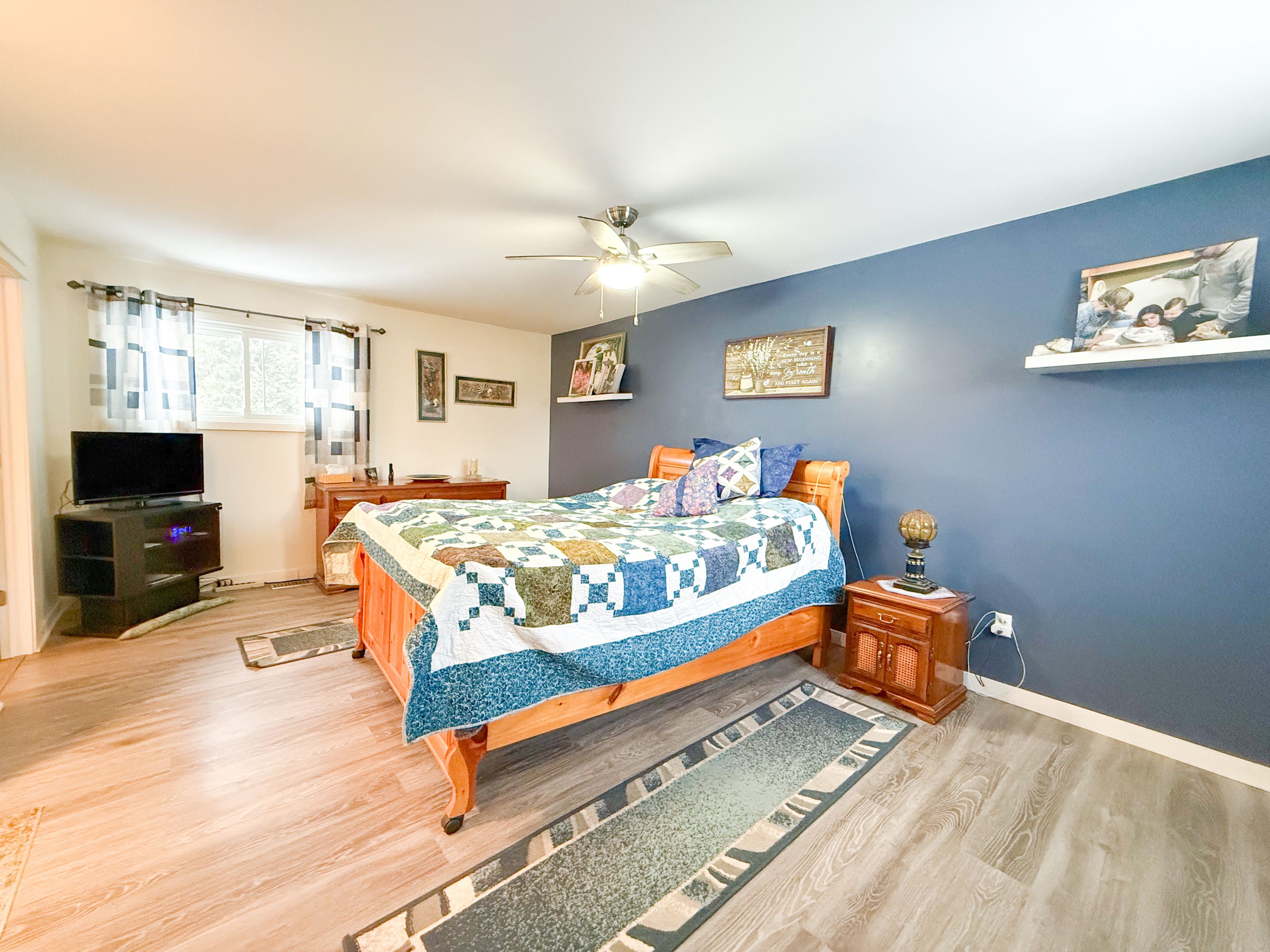 Set high on a gentle rise and surrounded by mature trees, this private retreat offers serene water views of townsend lake and a peaceful country atmosphere. Thoughtfully laid out, this move-in-ready 3-bedroom, 2-bath home is ideal as a full-time residence or a four-season getaway. The bright, open-concept main level is enhanced by vaulted ceilings and expansive windows that frame the lake beyond. A beautifully designed kitchen anchors the space, featuring stainless steel appliances, a spacious island, and a distinctive etched-glass pantry door. Step out to the private rear deck to enjoy quiet mornings overlooking the open land, or relax on the front deck while taking in the lake views, both ideal spaces for entertaining. The massive primary bedroom includes a walk-in closet and a 4-piece ensuite, while two additional bedrooms share a well-appointed main bath. The walk-out lower level provides direct access to the spacious garage and offers a generous family room, bonus room, laundry facilities, and ample storage. An asphalt driveway leads to the home, offering easy access and plenty of parking. With privacy created by surrounding trees and natural landscaping, this property delivers a true sense of seclusion while remaining close to recreation. Just a short walk to public access at townsend lake and a short drive to bell's lake, with nearby golf courses, atv and snowmobile trails, and cross-country skiing, this is an exceptional opportunity to enjoy relaxed lakeside living year-round.