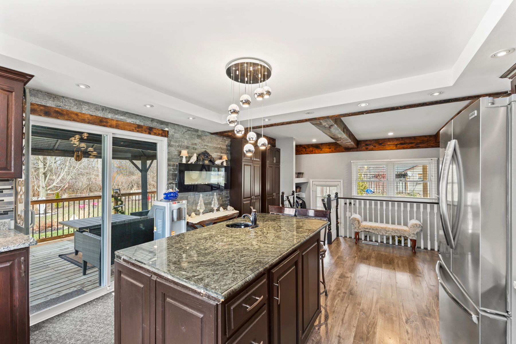 • Spacious kitchen with granite countertops and a cozy eat-in area.