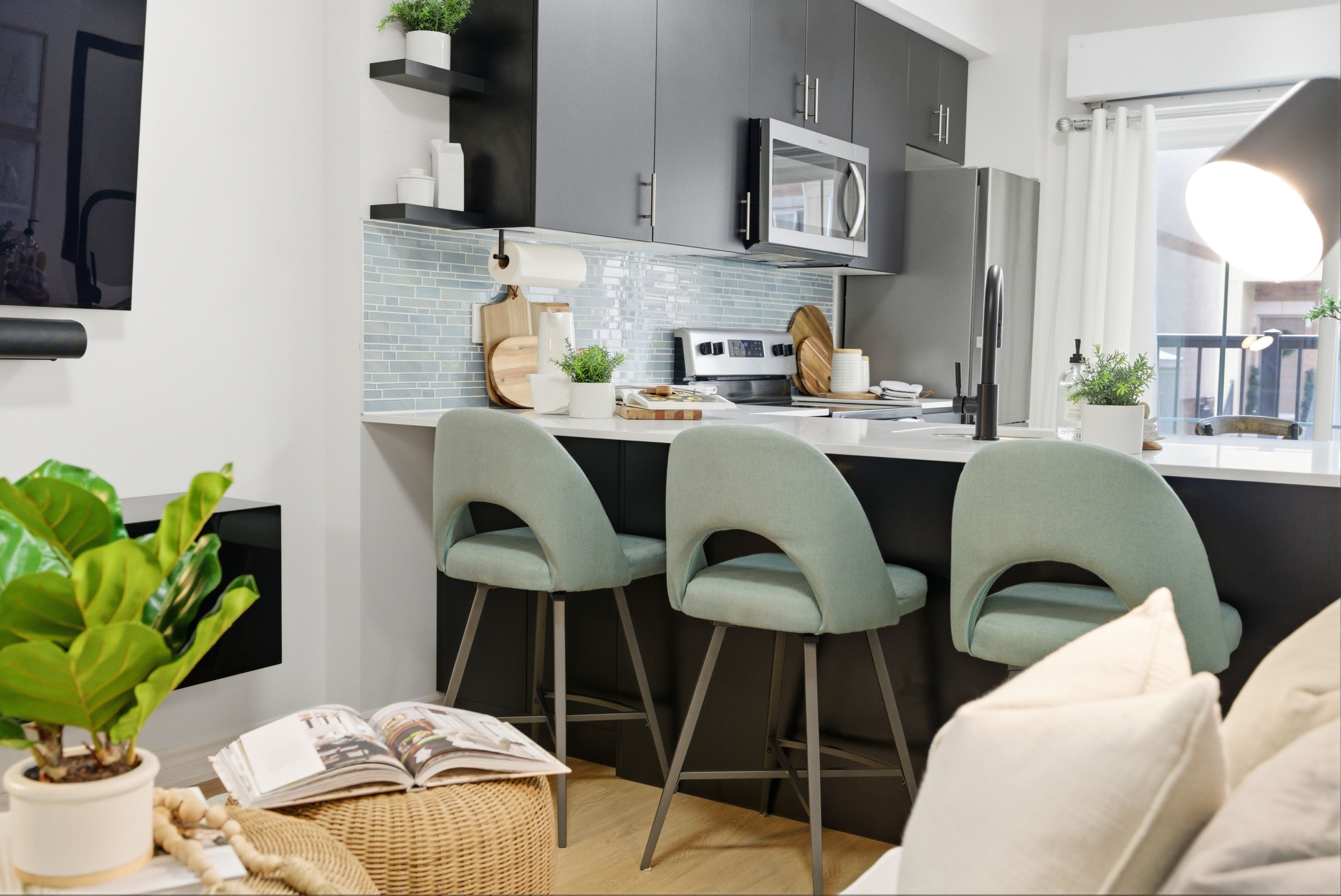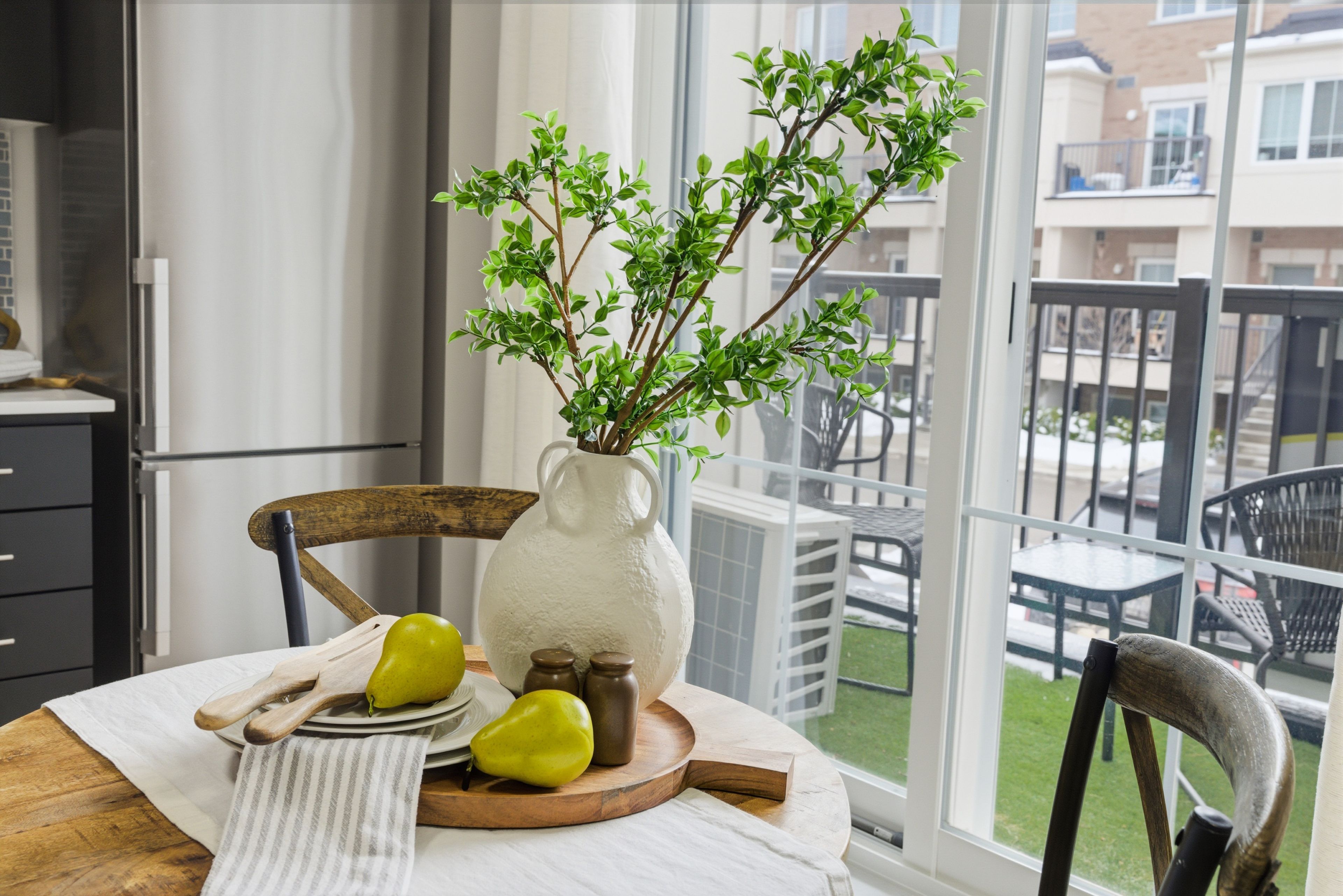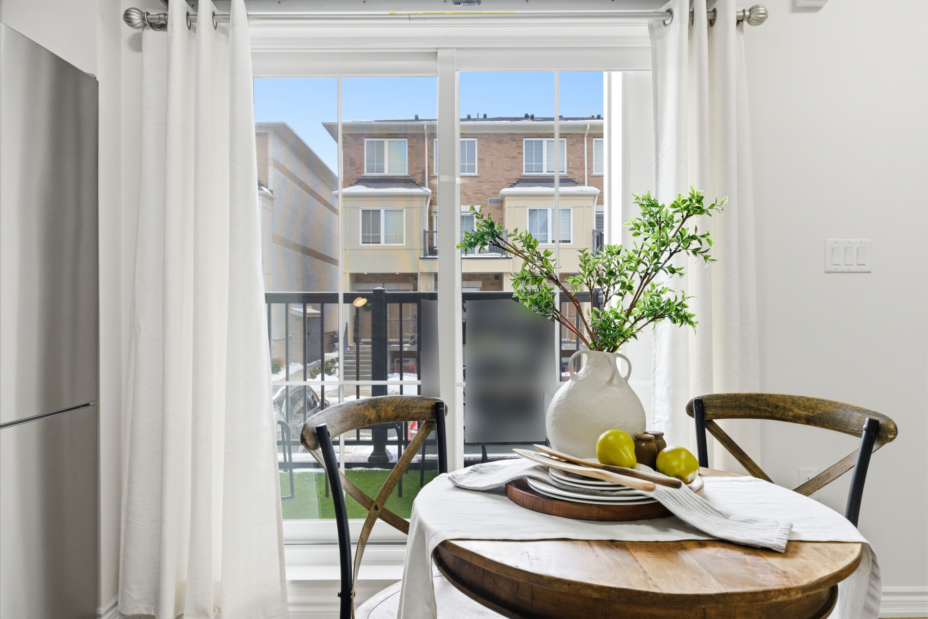 • Cozy private balcony off the kitchen, perfect for morning coffee.