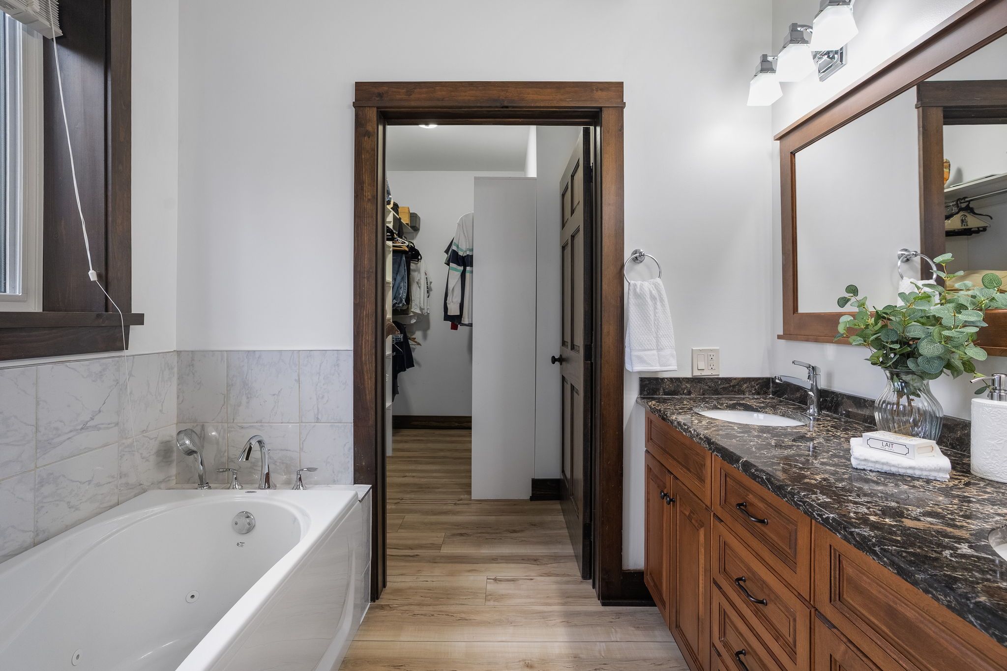 • Bright living areas with a main floor primary suite and ensuite whirlpool tub.