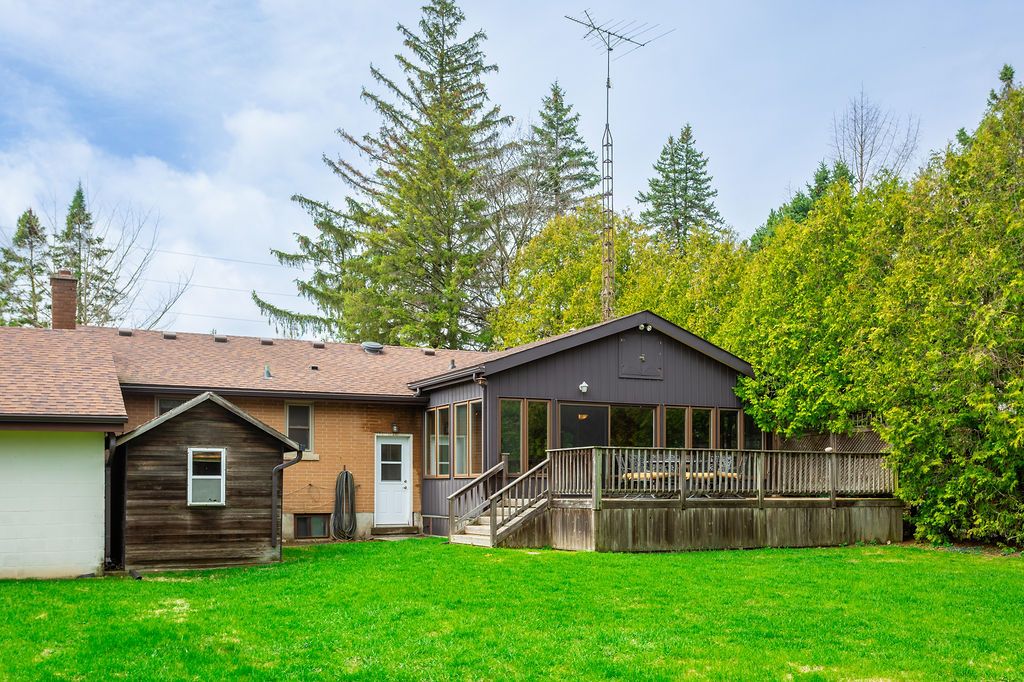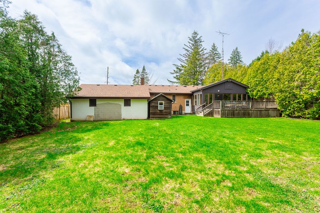 Endless potential on this 83' x 200' private treed lot in the meadowlands. Are you looking for a convenient location all while enjoying a private mature lot? This is your chance to secure one of the last remaining large lots on the street. Live in this well-maintained bungalow as is, renovate it / add on, or look into the potential for development. Many updates include furnace/ac 2018, washer/dryer 2018, water heater 2023, roof 2018, and landscaping approximately 10 years ago. Lovely layout with a formal family room/dining room, bright kitchen and oversized rear sunroom opening up to a nice wood deck. The home has been converted into 2 bedrooms with the opportunity to easily convert back to 3. Updated main floor bath with walk-in shower. Large 2 car garage and existing driveway with parking for 6+ cars. The options here are endless with this home fitting so many different needs. This type of property is increasingly hard to find in this location. Minutes to hwy access, the meadowlands shopping centre. Hamilton airport, redeemer college and schools. Property sold in as-is condition with no representation or warranties.