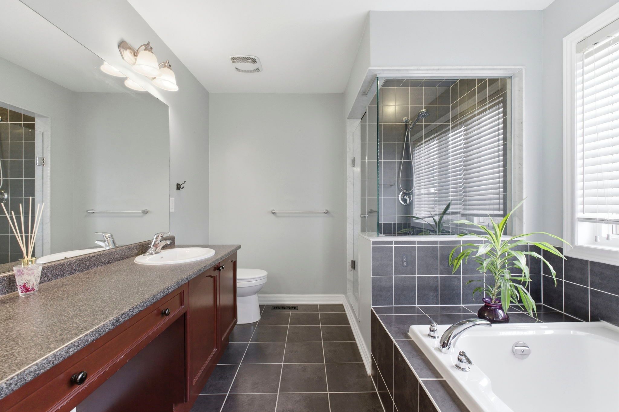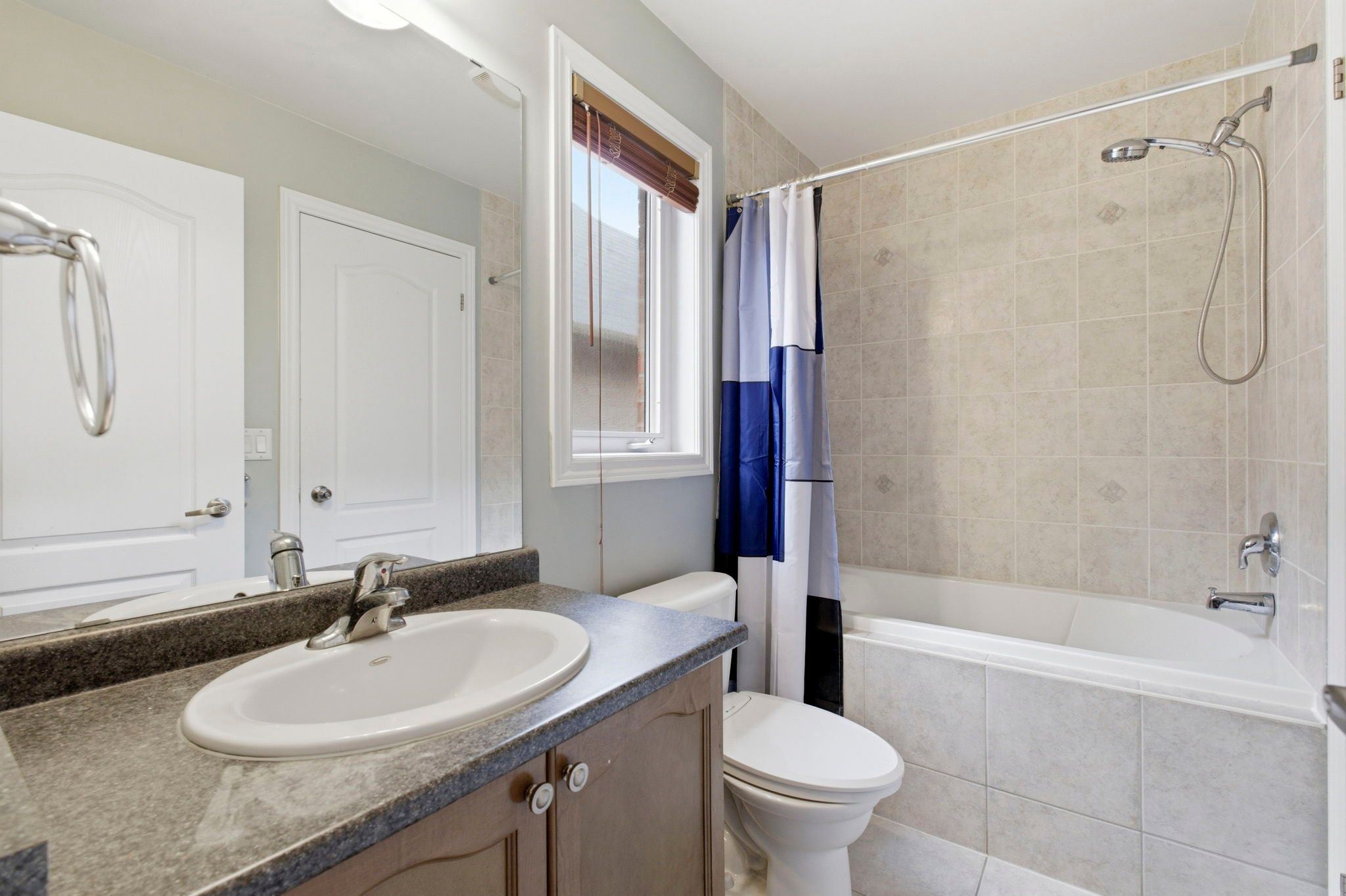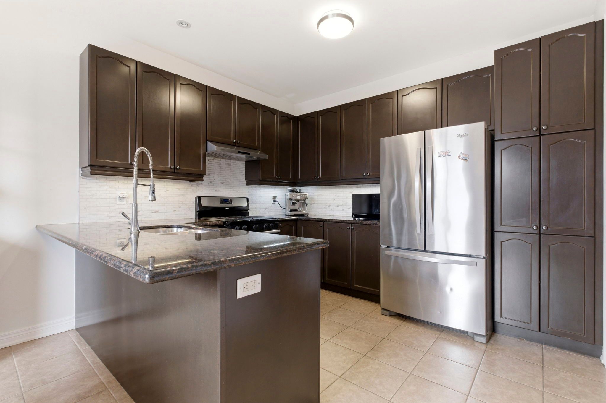 • Spacious eat-in kitchen with granite counters and access to a deck for gatherings.