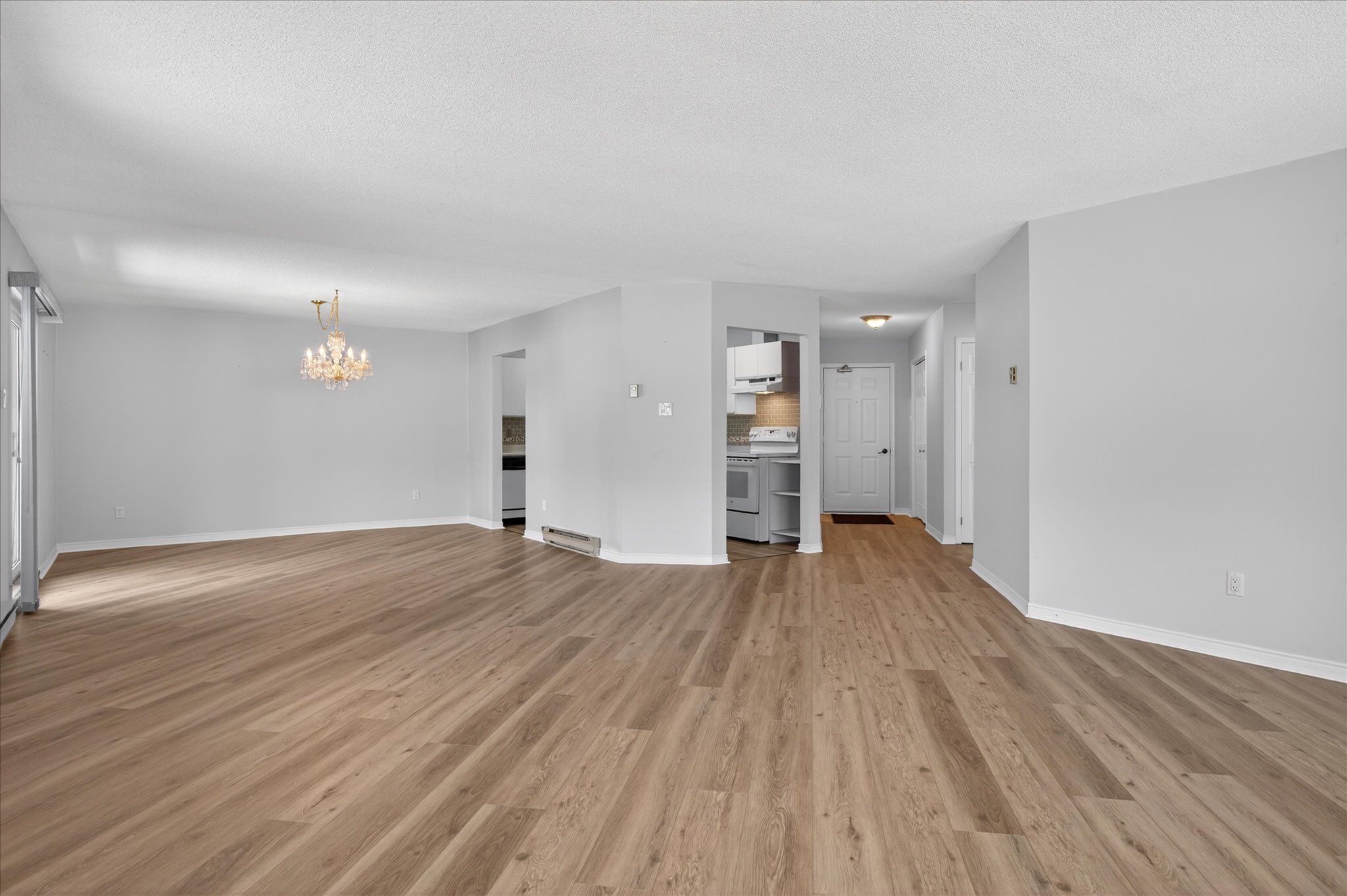 Large corner unit with 2 balconies! Bright, condo offering modern comfort and prime convenience! Lots of ample light throughout, new laminate flooring throughout, two balconies to relax outdoors, perfect for your morning coffee. This spacious second-level unit features an updated backsplash in the kitchen and a relatively new fridge, fresh paint, large closets, updated bathroom and private laundry room within the suite. Ample storage, private locker, visitor parking and access to a building games room. Community room for owners to use for functions. Located in a smoke-free, adult-only building, close to parks, trails, amenities, and public transit. Condo has new roof in 2025, new windows 2022, newer washer and dryer, fridge, and stove.