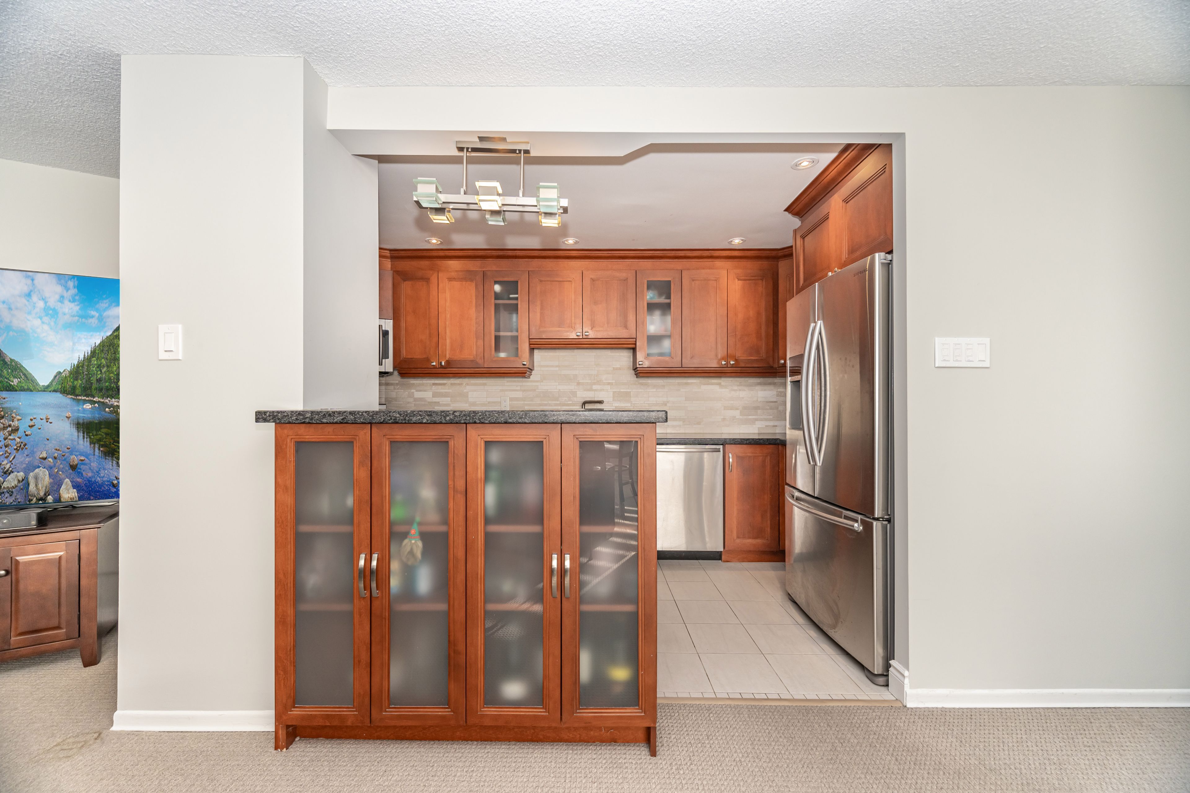 • New kitchen features quartz countertops and stainless steel appliances.